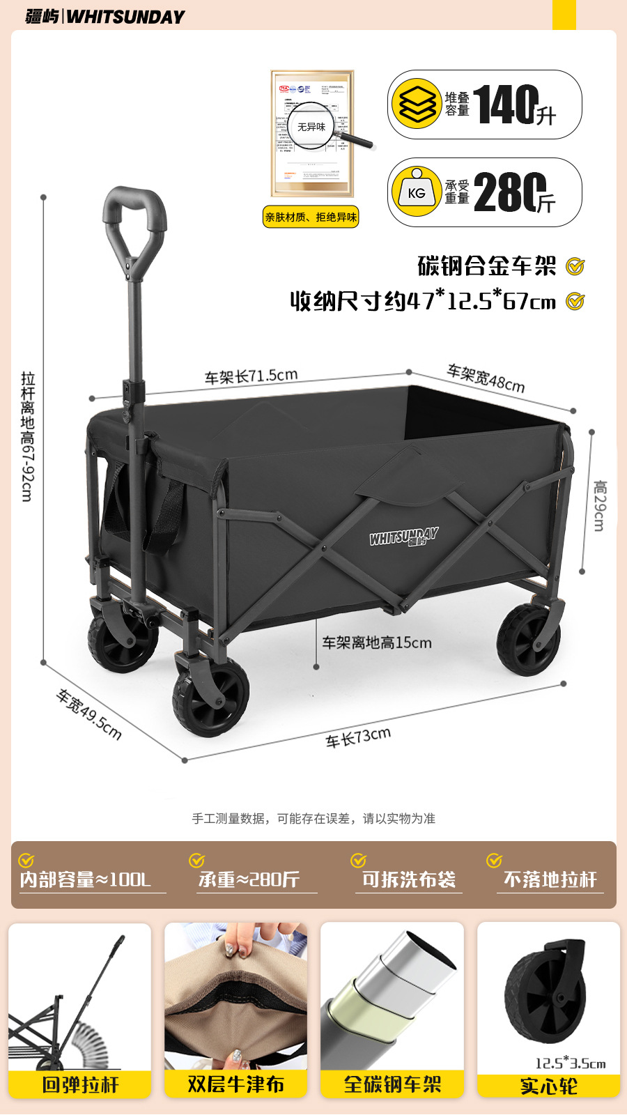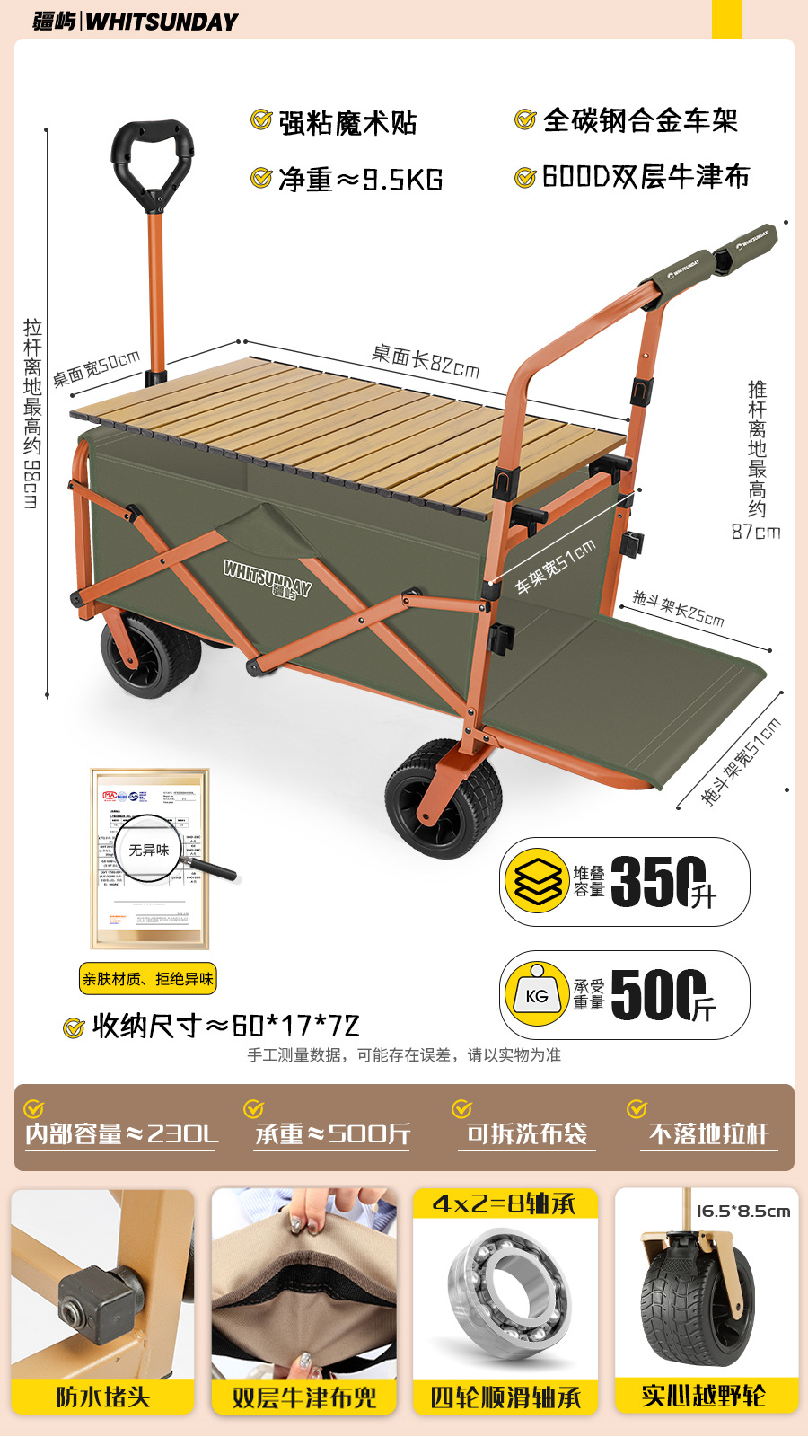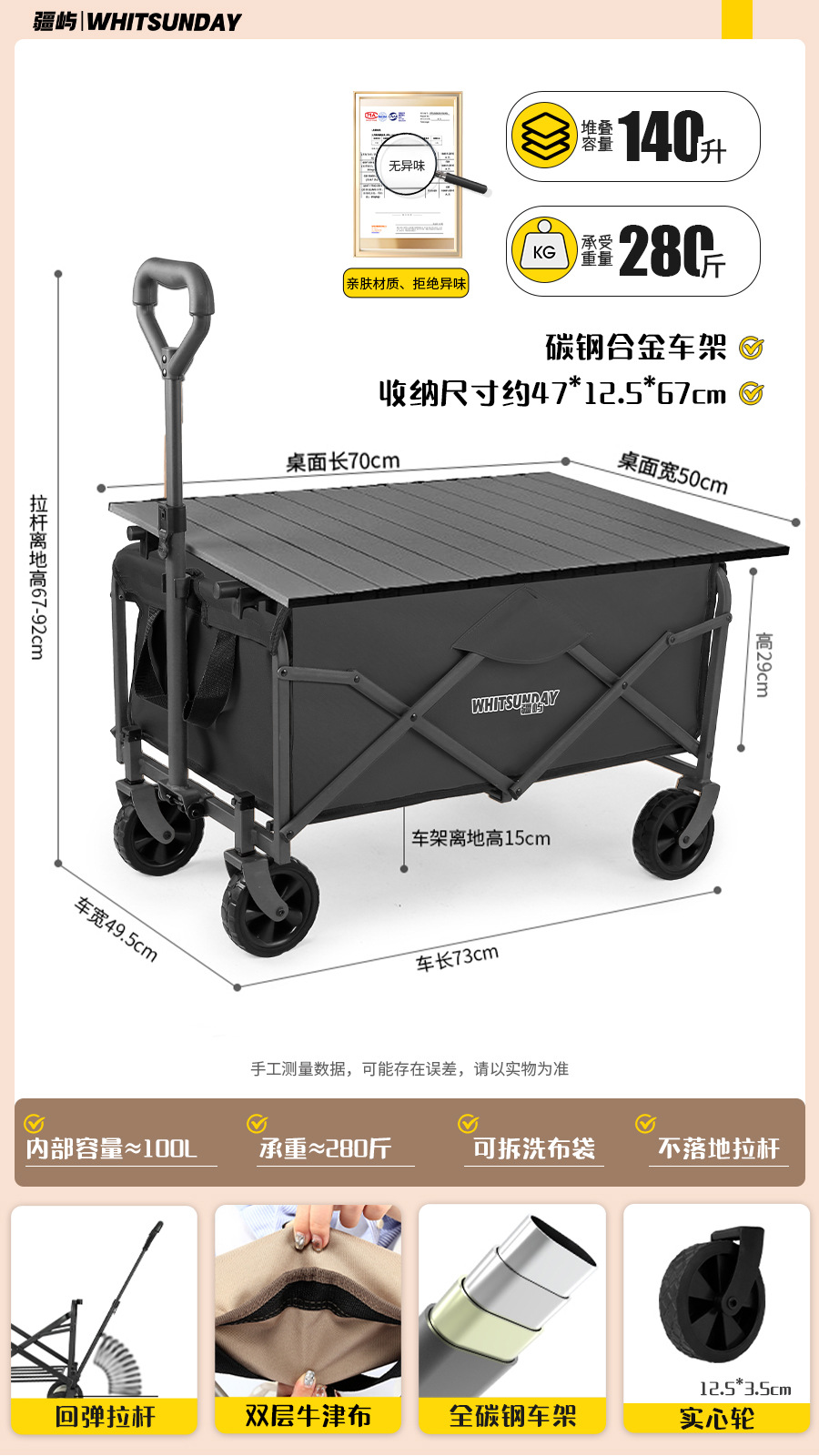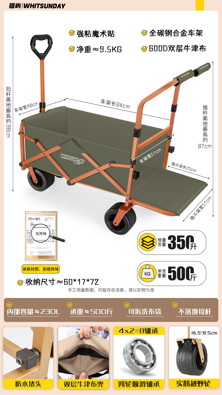 • [프로 블랙] 전지형 견인 버킷 + 에그롤 데스크탑 + 파라솔 두꺼운 5CM 타이로드 더블 척 디스크 브레이크 전면 및 후면 강화 크로스바