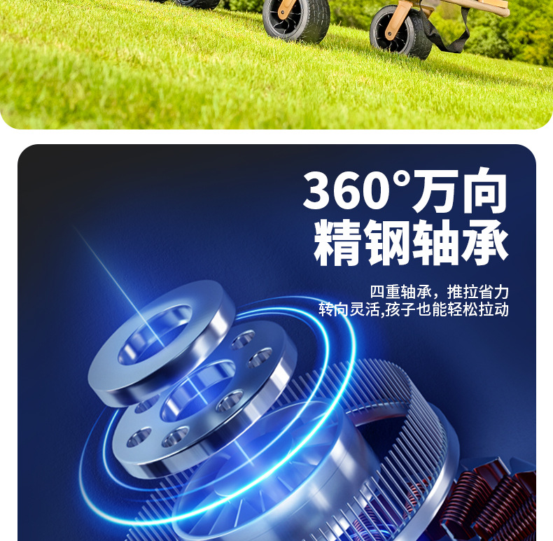 • 대형 푸시로드 모델 [그래스 그린] 항공기 휠 + 더블 브레이크 오프로드 휠 [트레일러 후면 개방형 - 올 스틸 프레임]