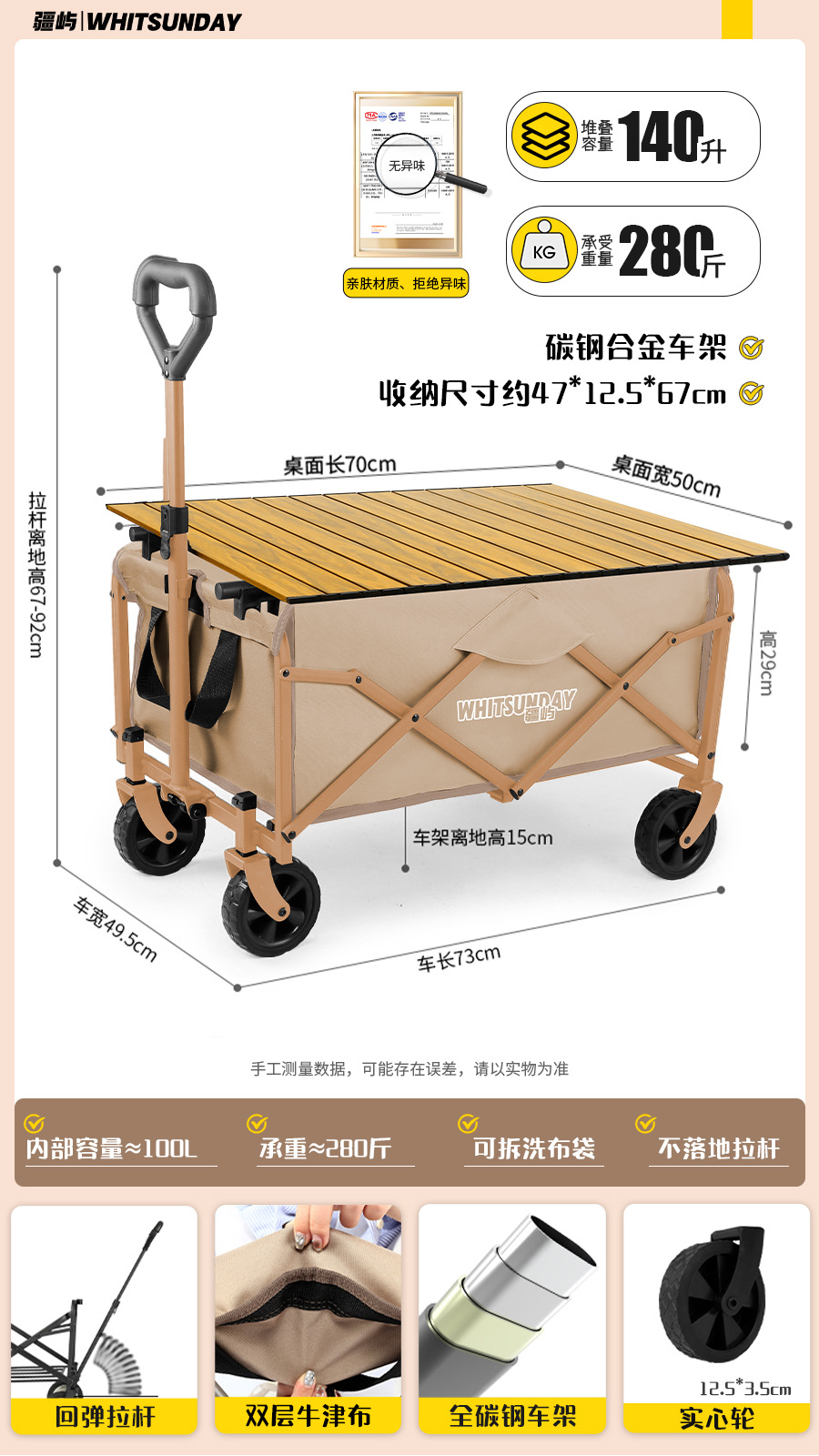 JIanyu 야외 캠핑 트롤리 캠프 카 스톨 폴딩 캠핑 트레일러 피크닉 자동차 어린이 리콜 스테이션 왜건