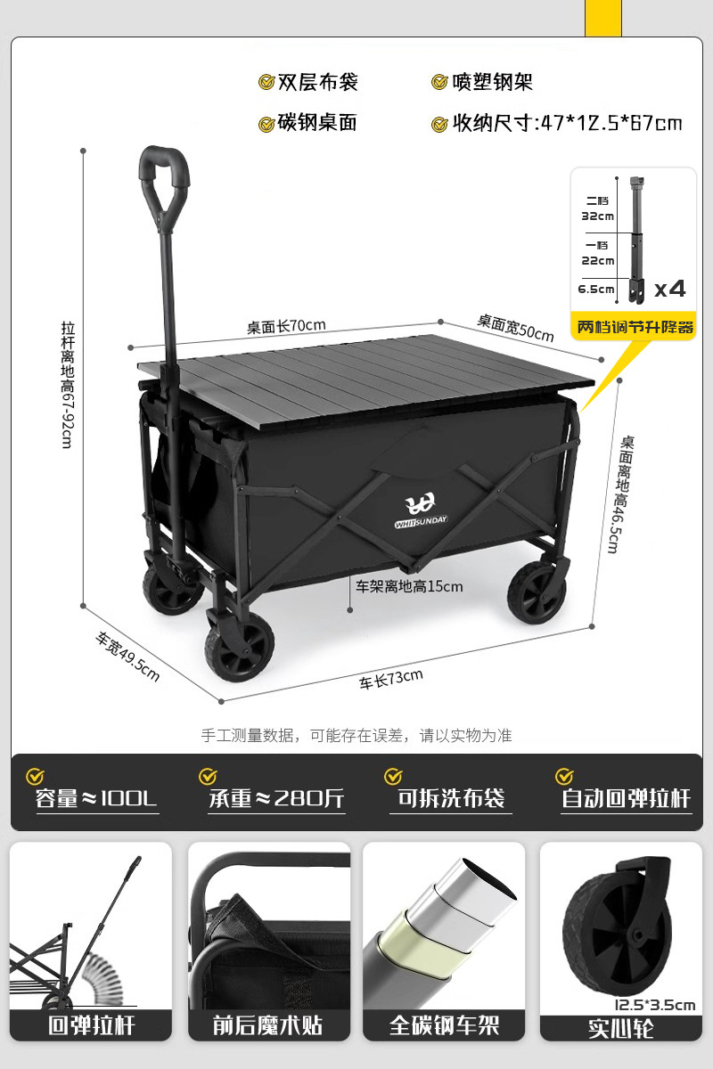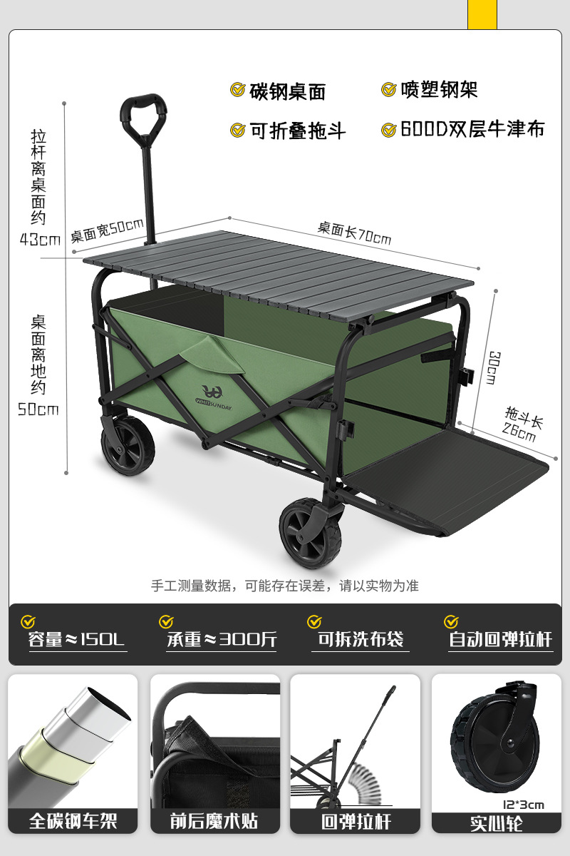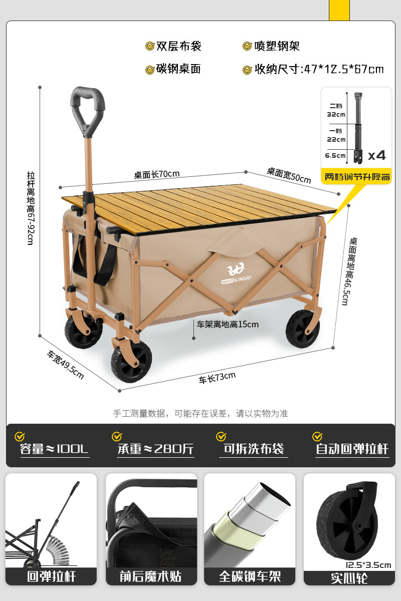JIanyu 야외 캠핑 트롤리 캠프 카 스톨 폴딩 캠핑 트레일러 피크닉 자동차 어린이 리콜 스테이션 왜건스토어 가기