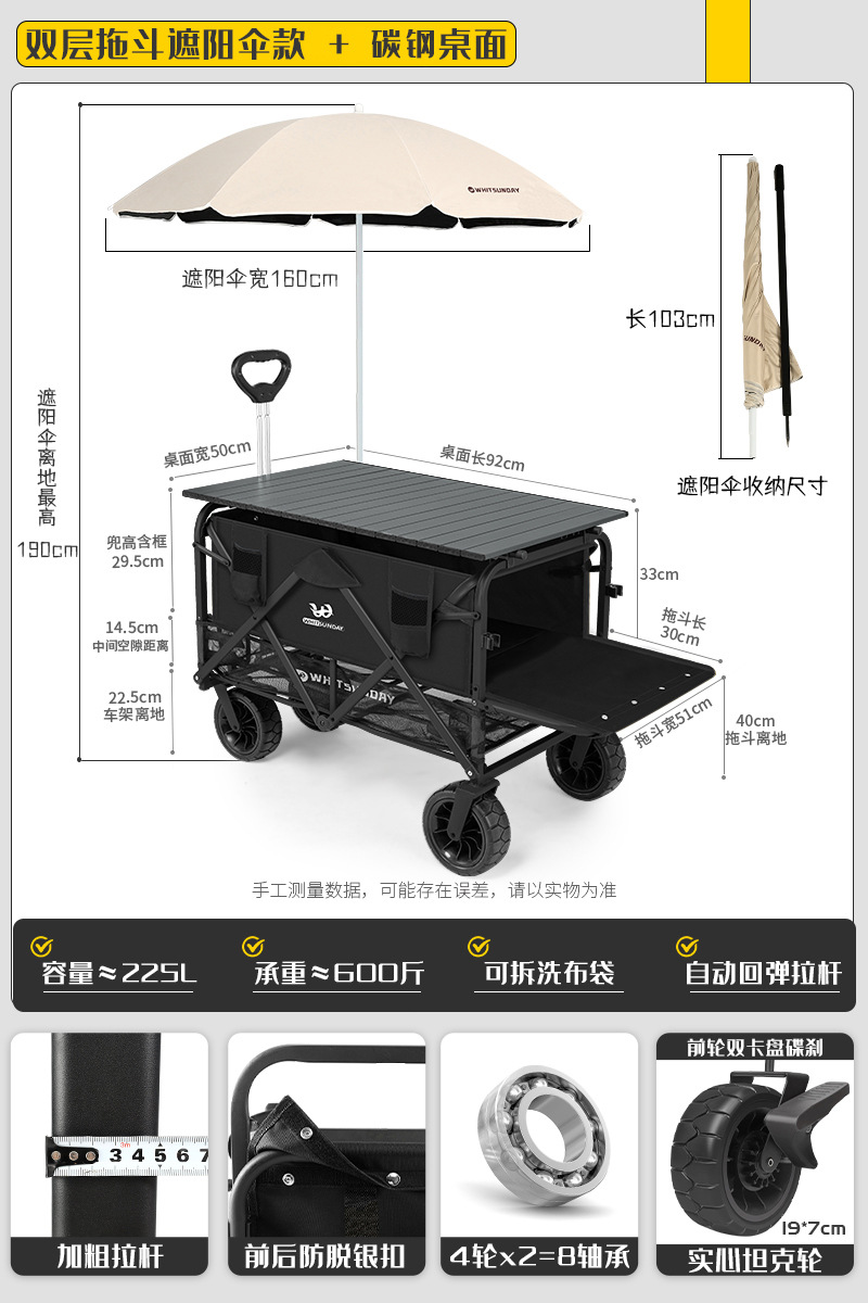 • [프로 블랙 스톨 더블 레이어] 전지형 트레일러 + 에그롤 데스크탑 + 파라솔 솔리드 탱크 휠 두꺼운 5CM 타이로드 더블 척 디스크 브레이크