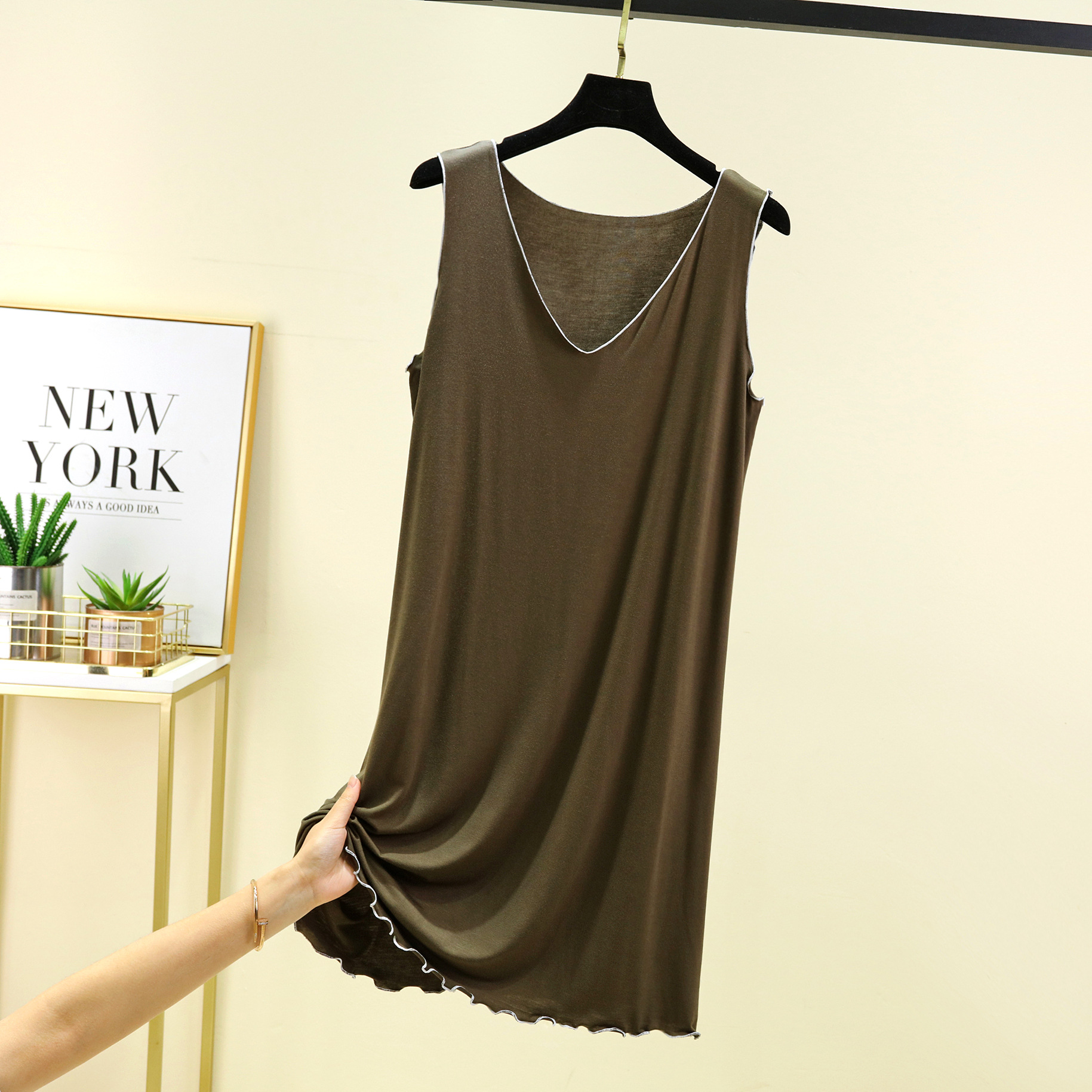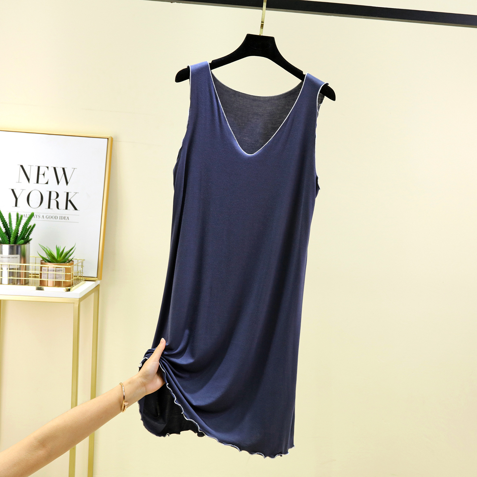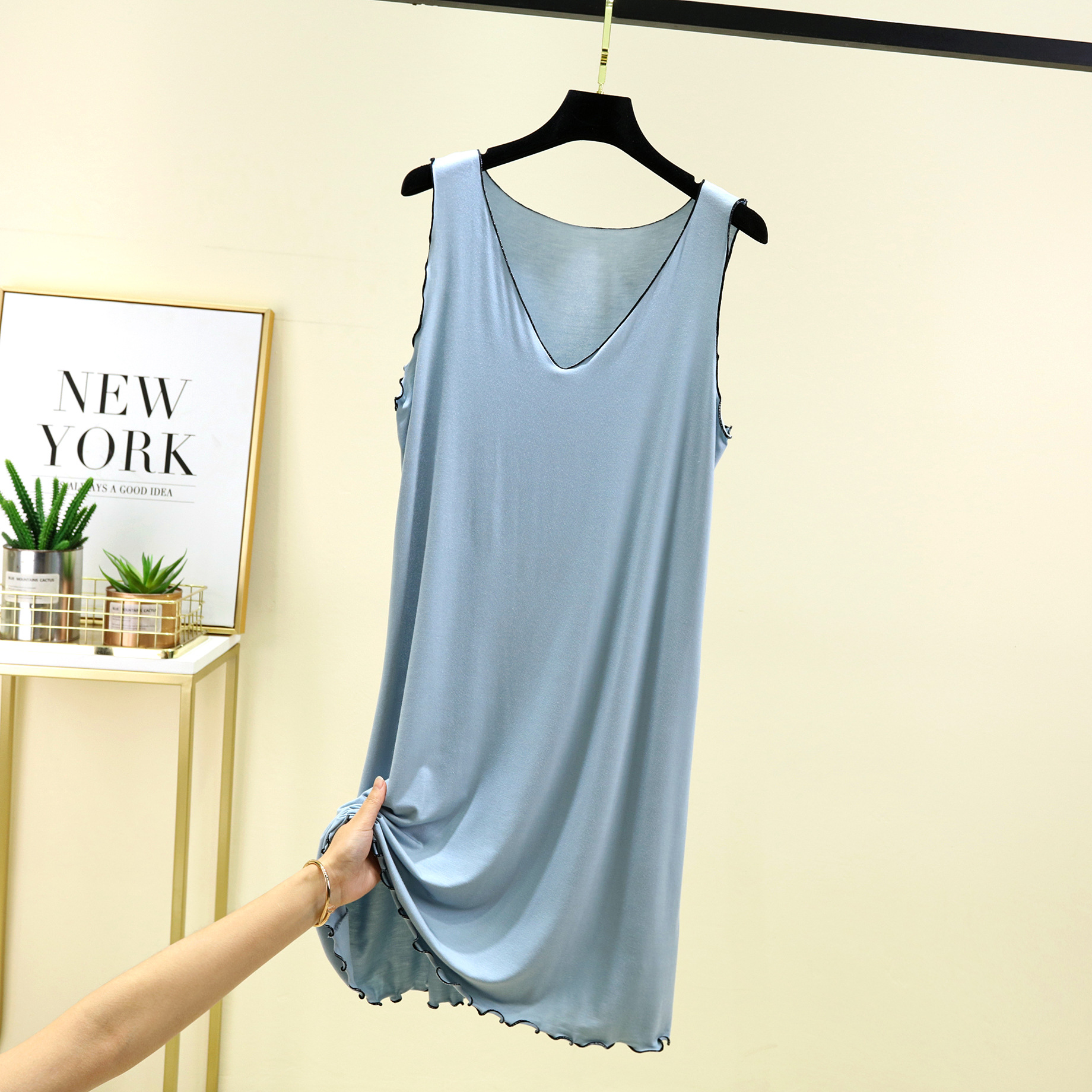 모달 V 넥 잠옷 여성 여름 플러스 사이즈 느슨한 민소매 조끼 스커트 원피스 얇은 플래시 헤지 중간 길이 스커트스토어 가기