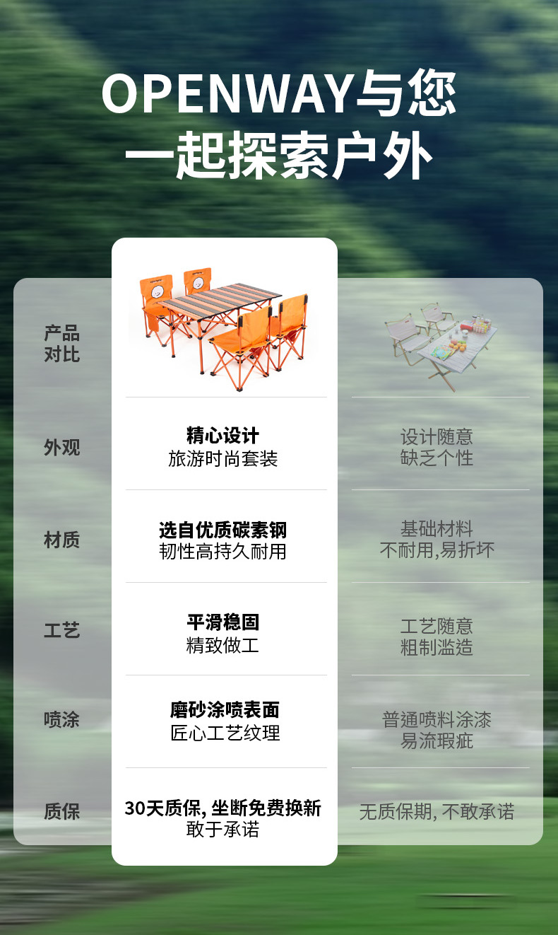 오픈 웨이 야외 캠핑 접이식 테이블과 의자 세트 캠핑 피크닉 달걀 롤 테이블 휴대용 국경 도매 세대스토어 가기