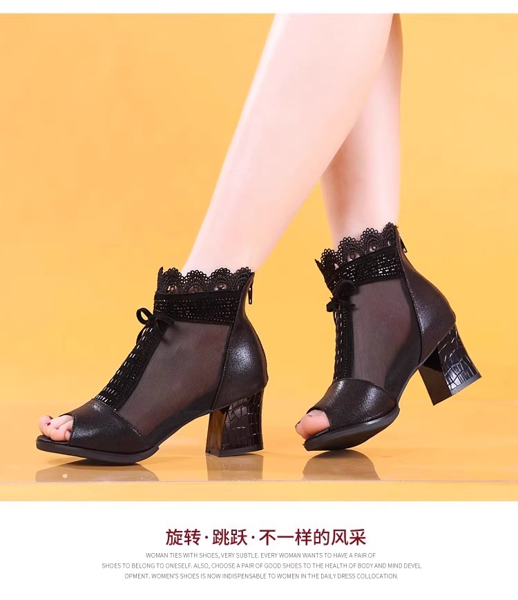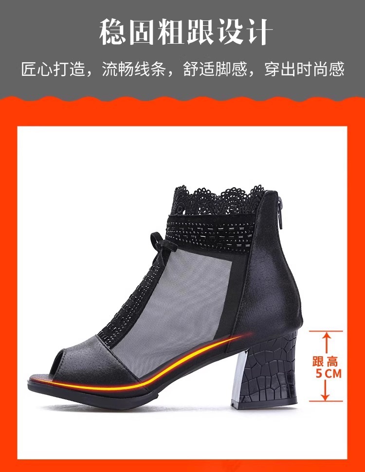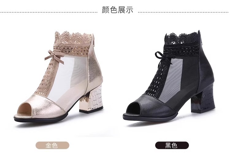 대외 무역 국경 여름 새로운 스타일 댄스 슈즈 메쉬 댄스 슈즈 피쉬 토트 샌들 두꺼운 힐 어머니 하이힐 여성용 샌들