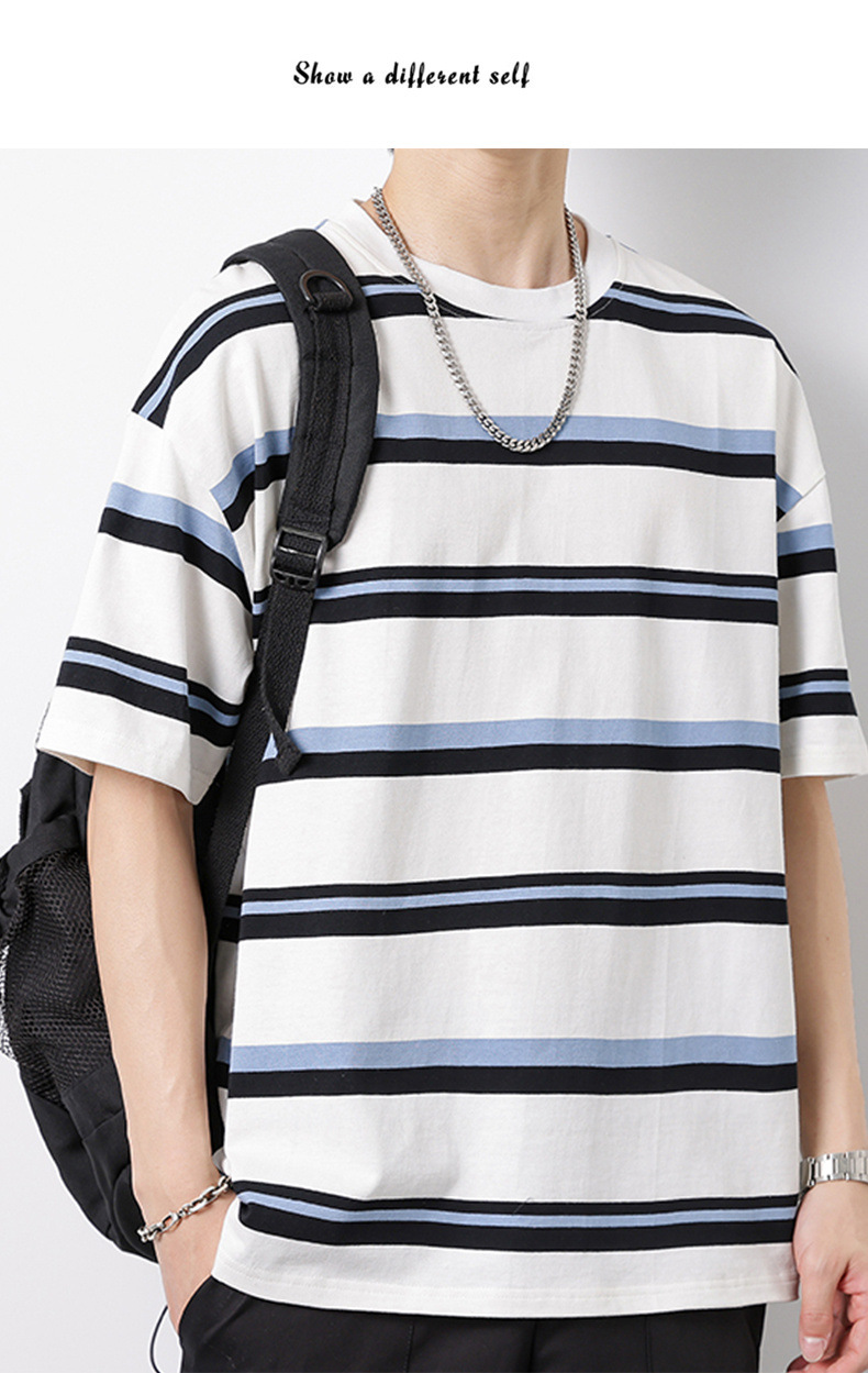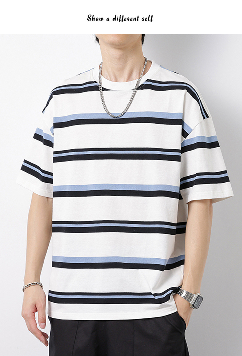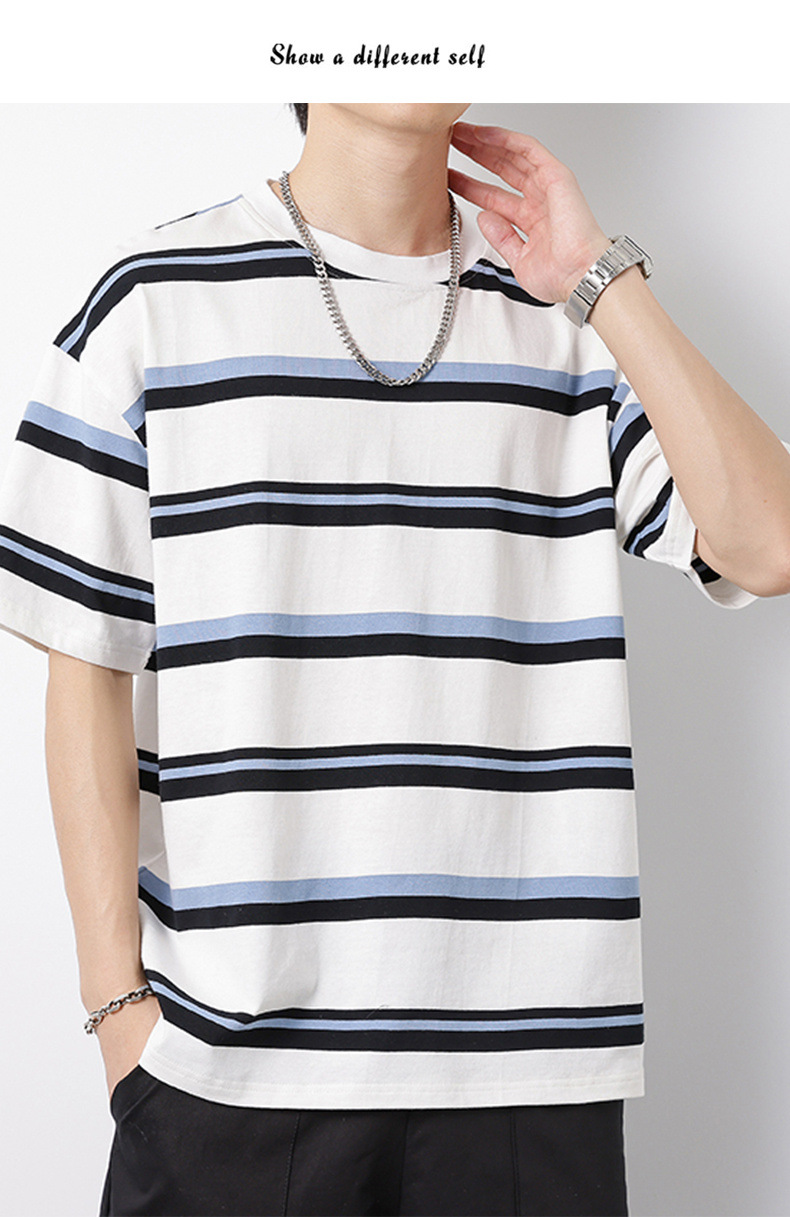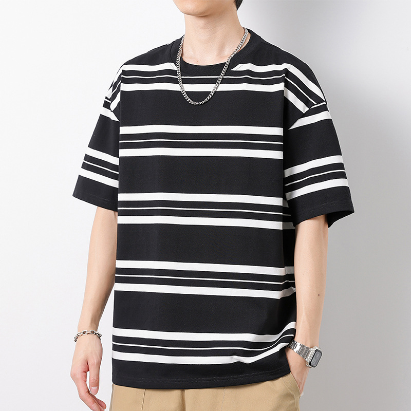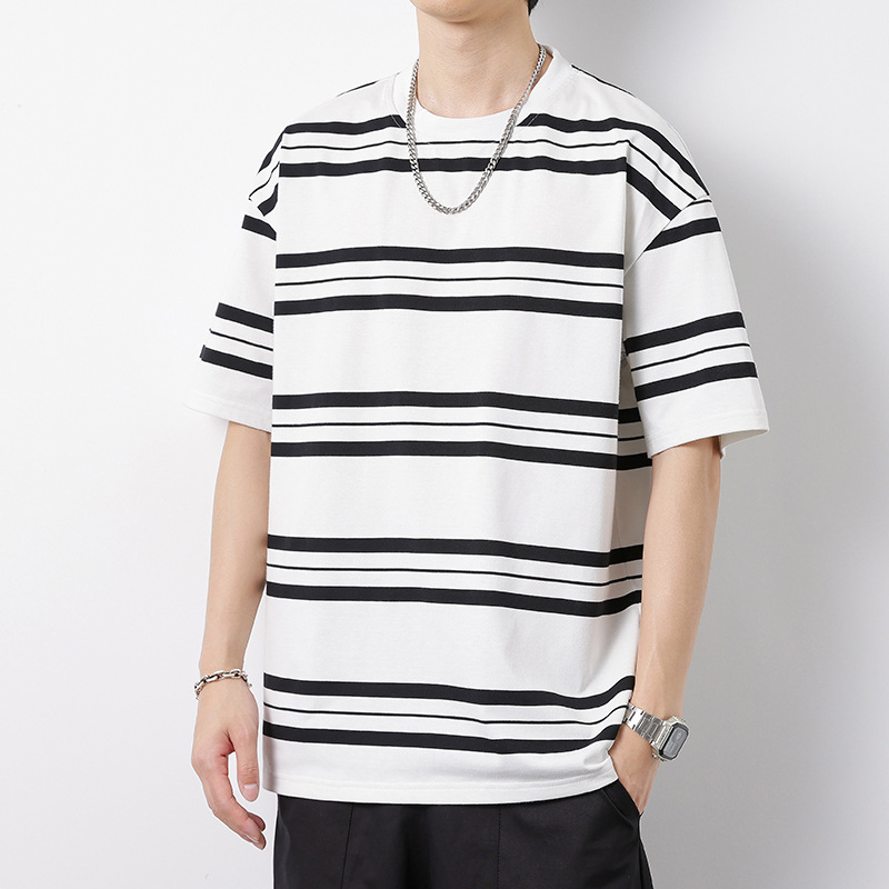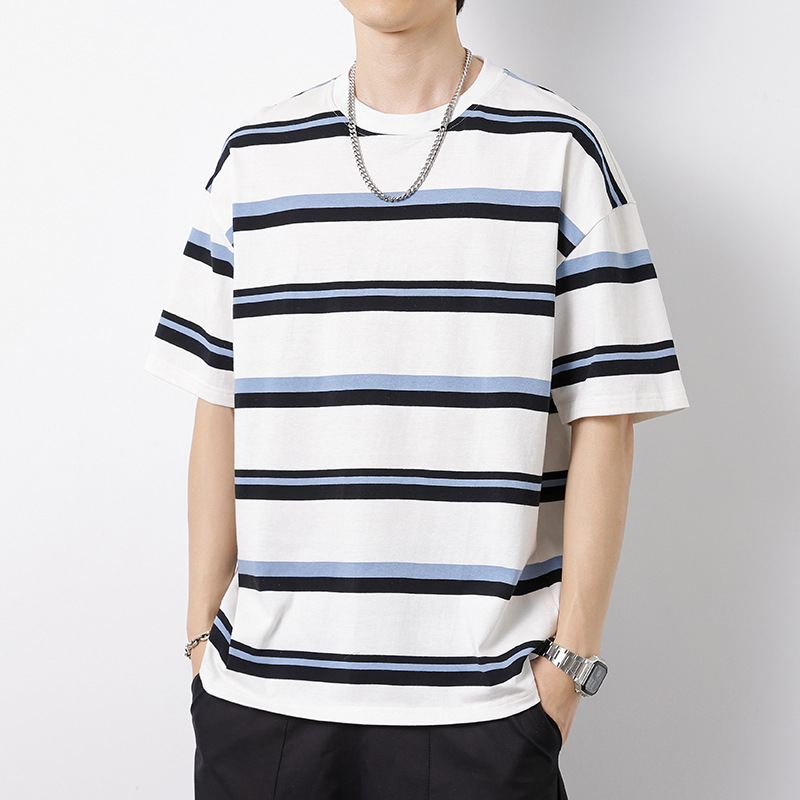 반팔 남성 여름 트렌디 남성 의류 캐주얼 의류 루즈 의류 코튼 스트라이프 티셔츠 다용도 남성 티셔츠