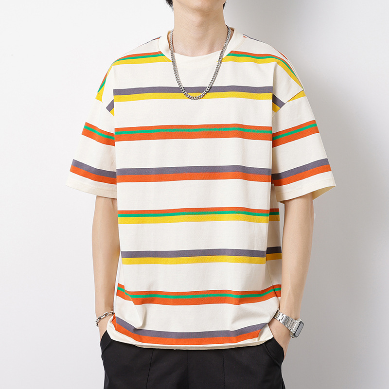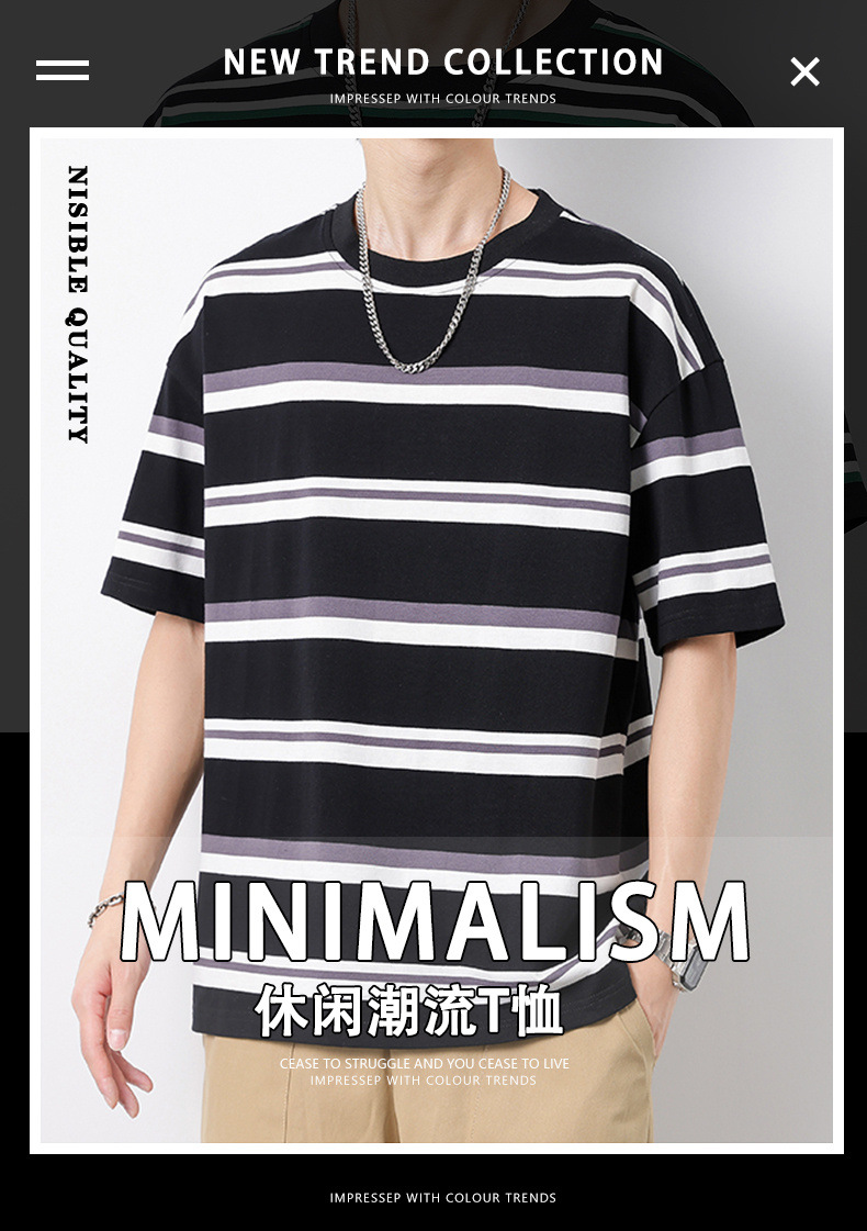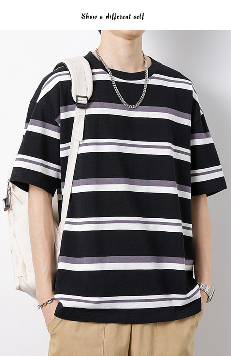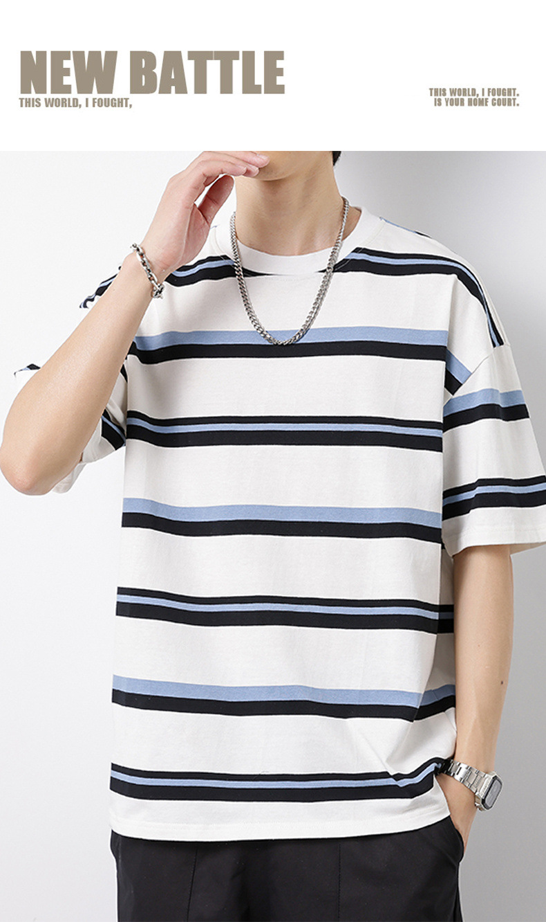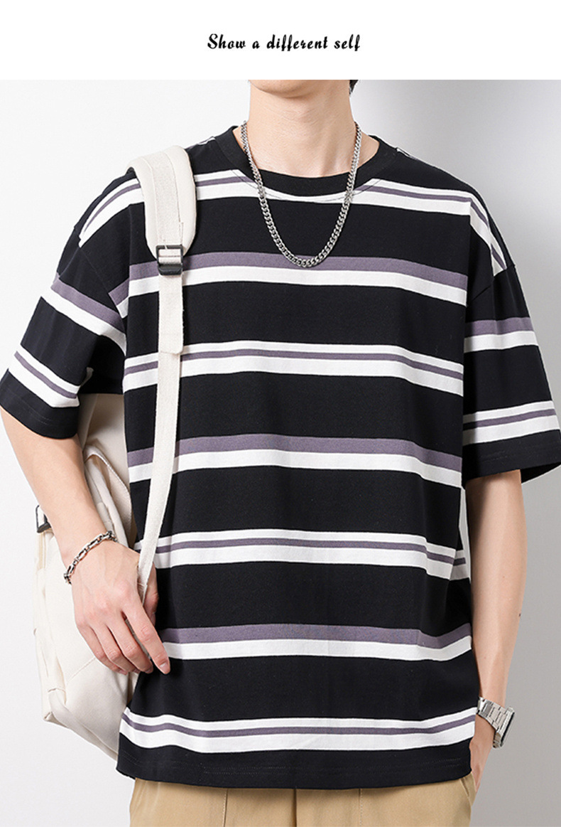 반팔 남성 여름 트렌디 남성 의류 캐주얼 의류 루즈 의류 코튼 스트라이프 티셔츠 다용도 남성 티셔츠