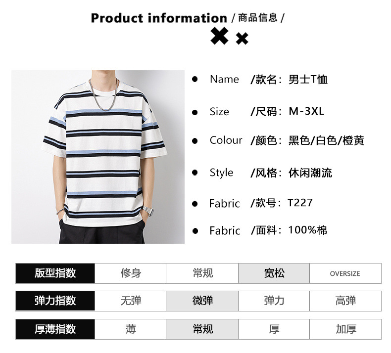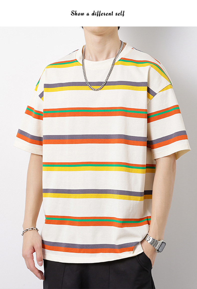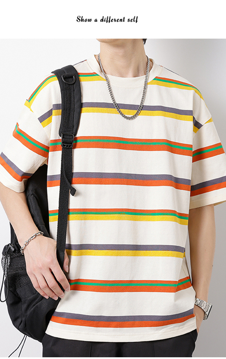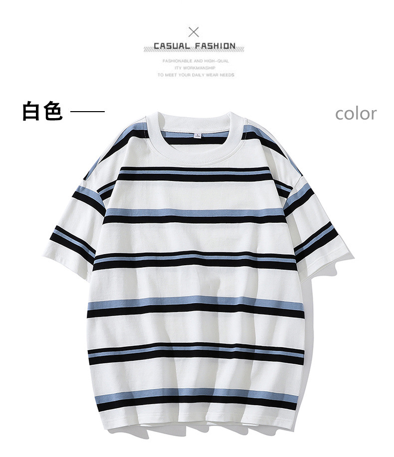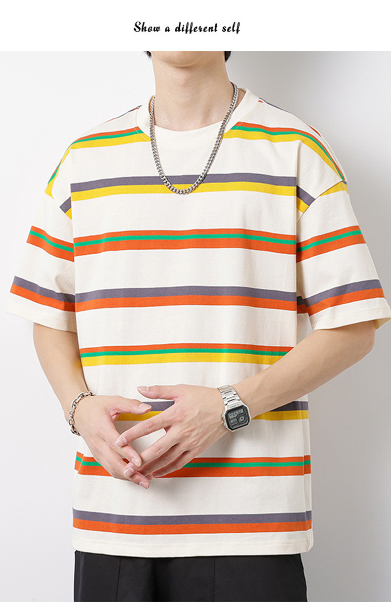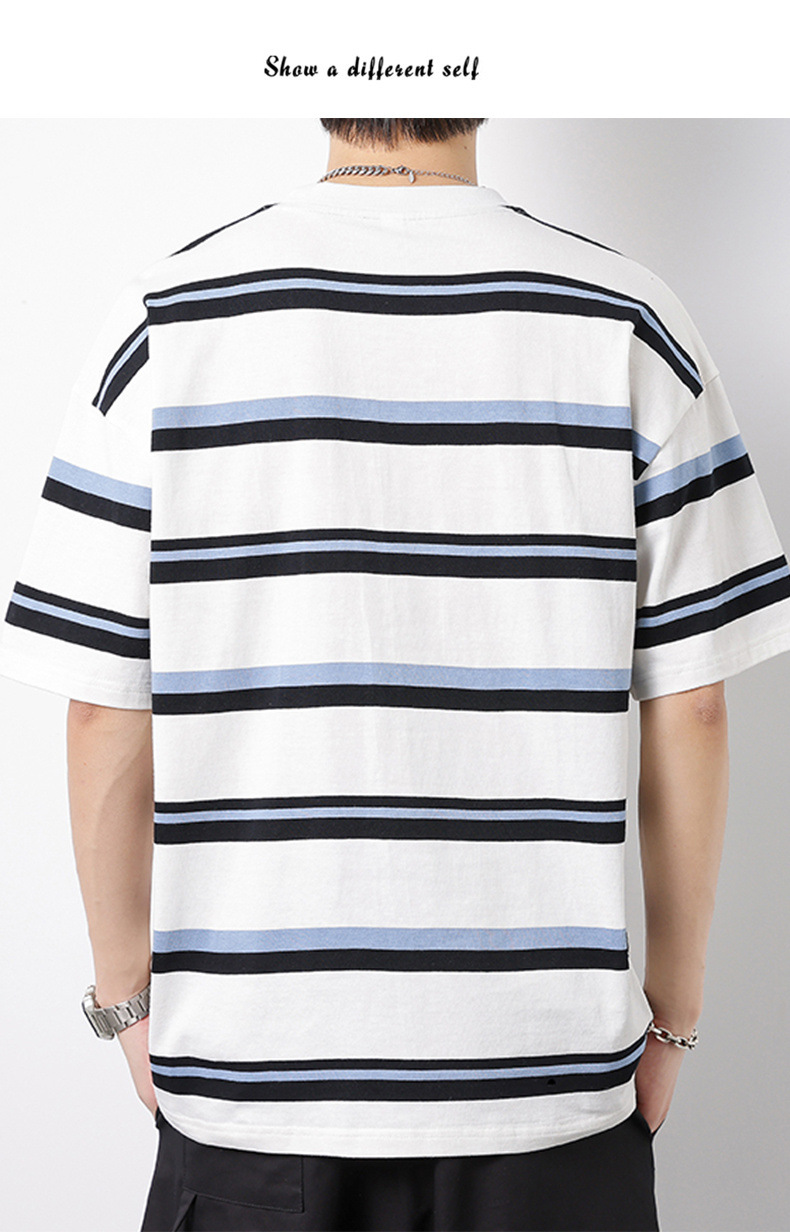 반팔 남성 여름 트렌디 남성 의류 캐주얼 의류 루즈 의류 코튼 스트라이프 티셔츠 다용도 남성 티셔츠
