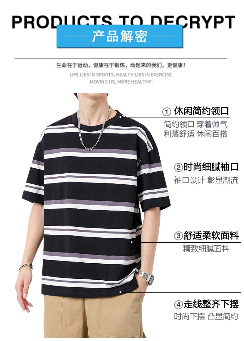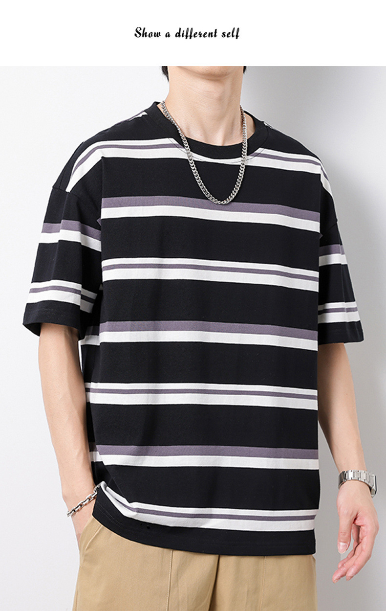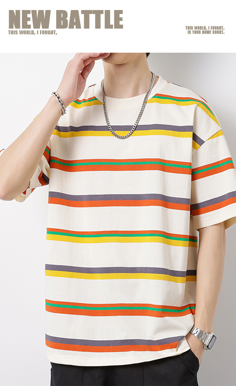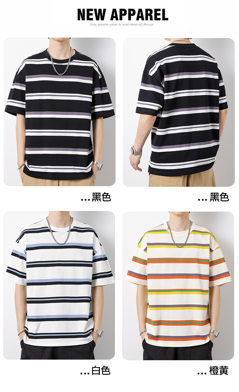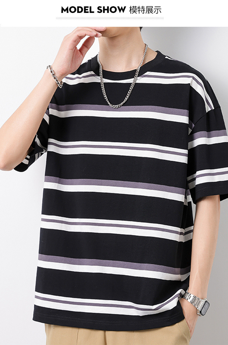 반팔 남성 여름 트렌디 남성 의류 캐주얼 의류 루즈 의류 코튼 스트라이프 티셔츠 다용도 남성 티셔츠스토어 가기