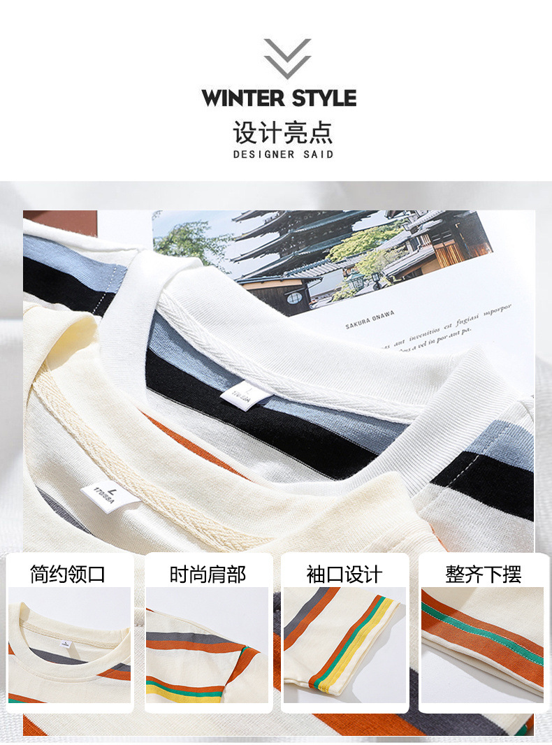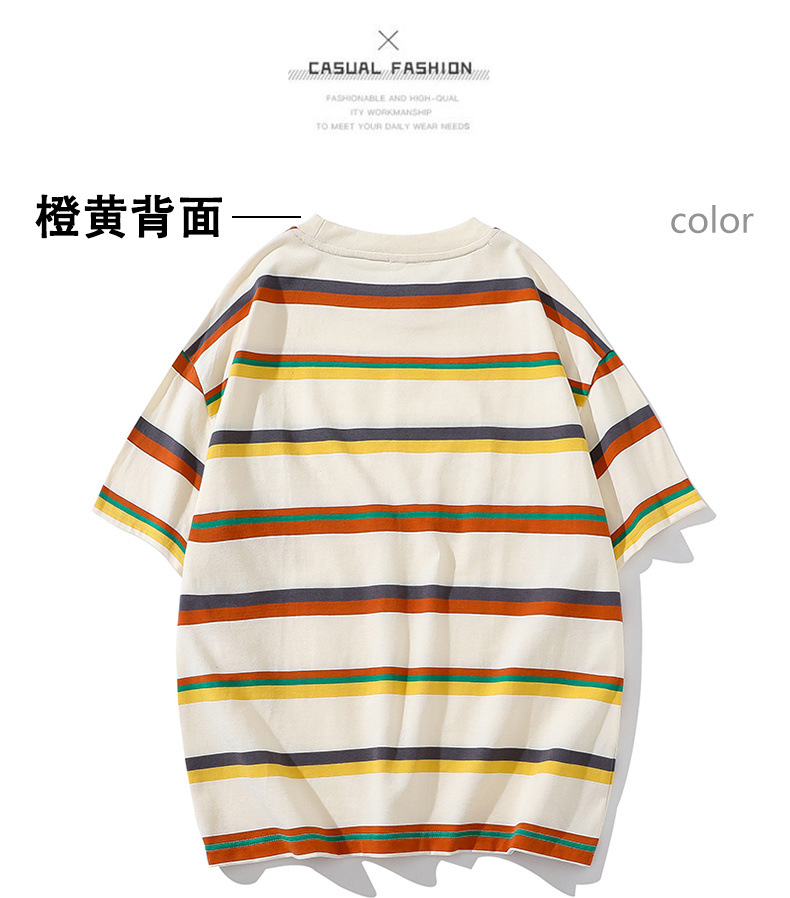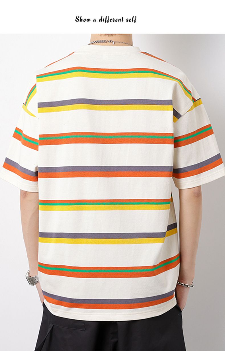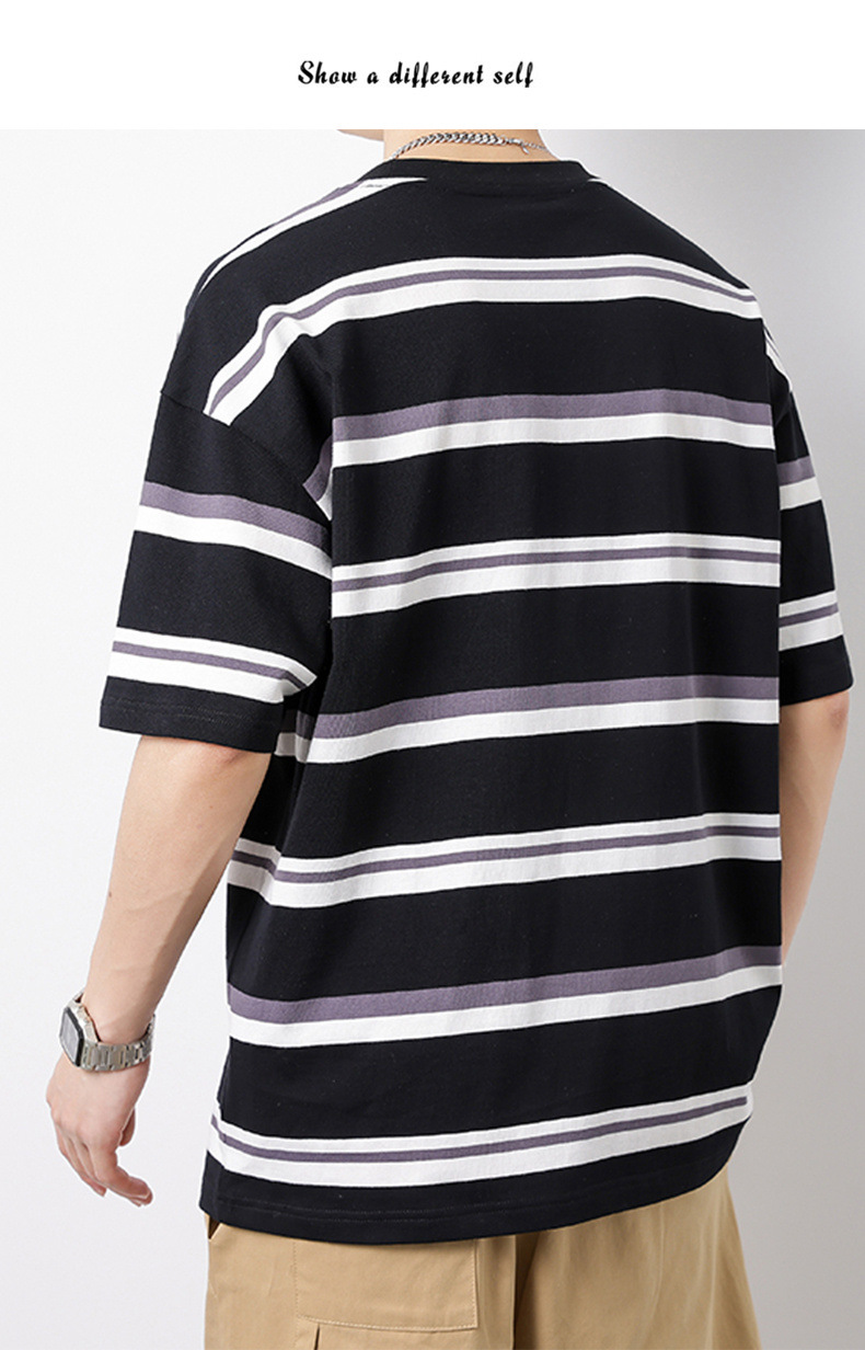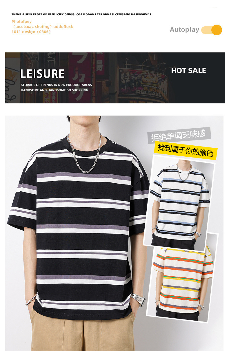 반팔 남성 여름 트렌디 남성 의류 캐주얼 의류 루즈 의류 코튼 스트라이프 티셔츠 다용도 남성 티셔츠스토어 가기