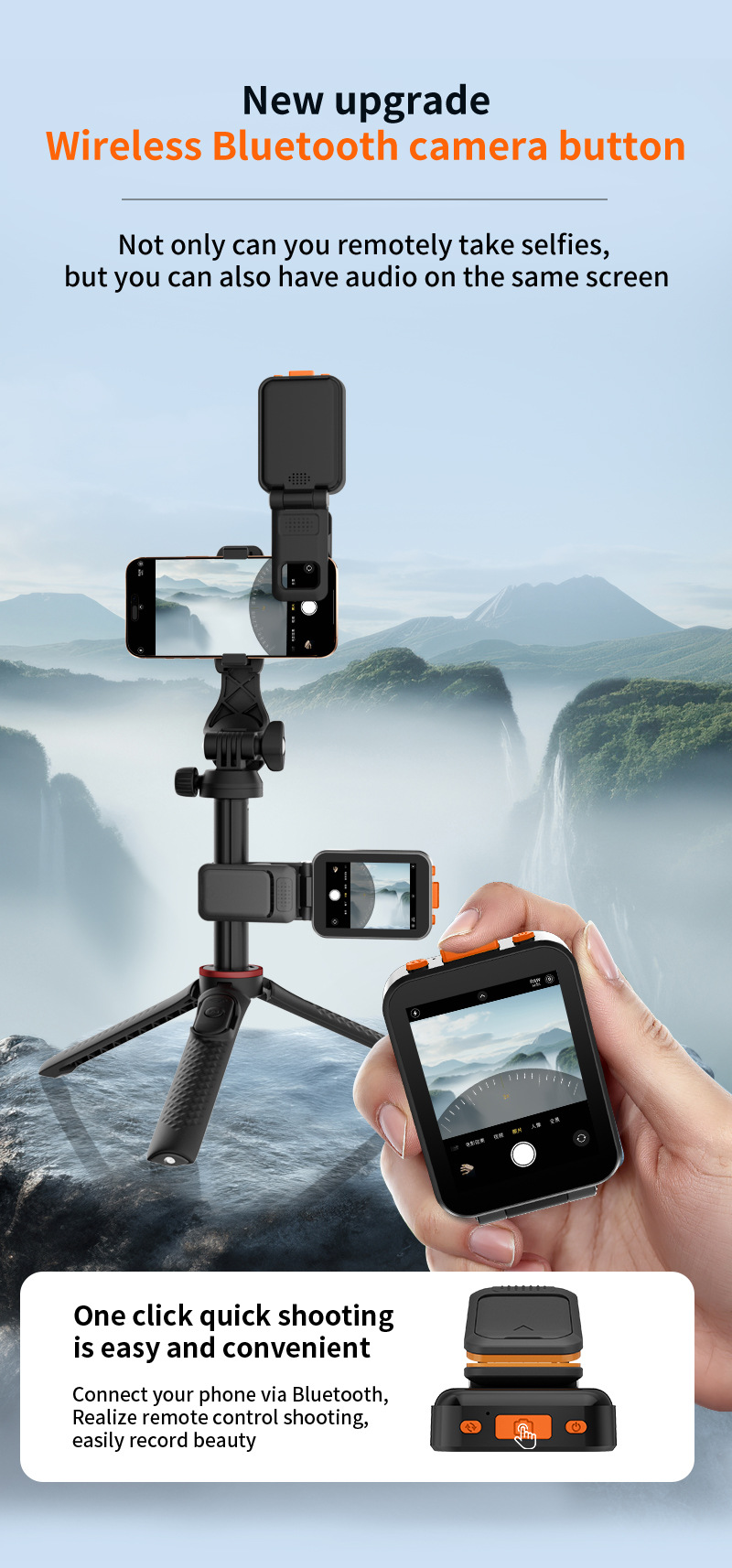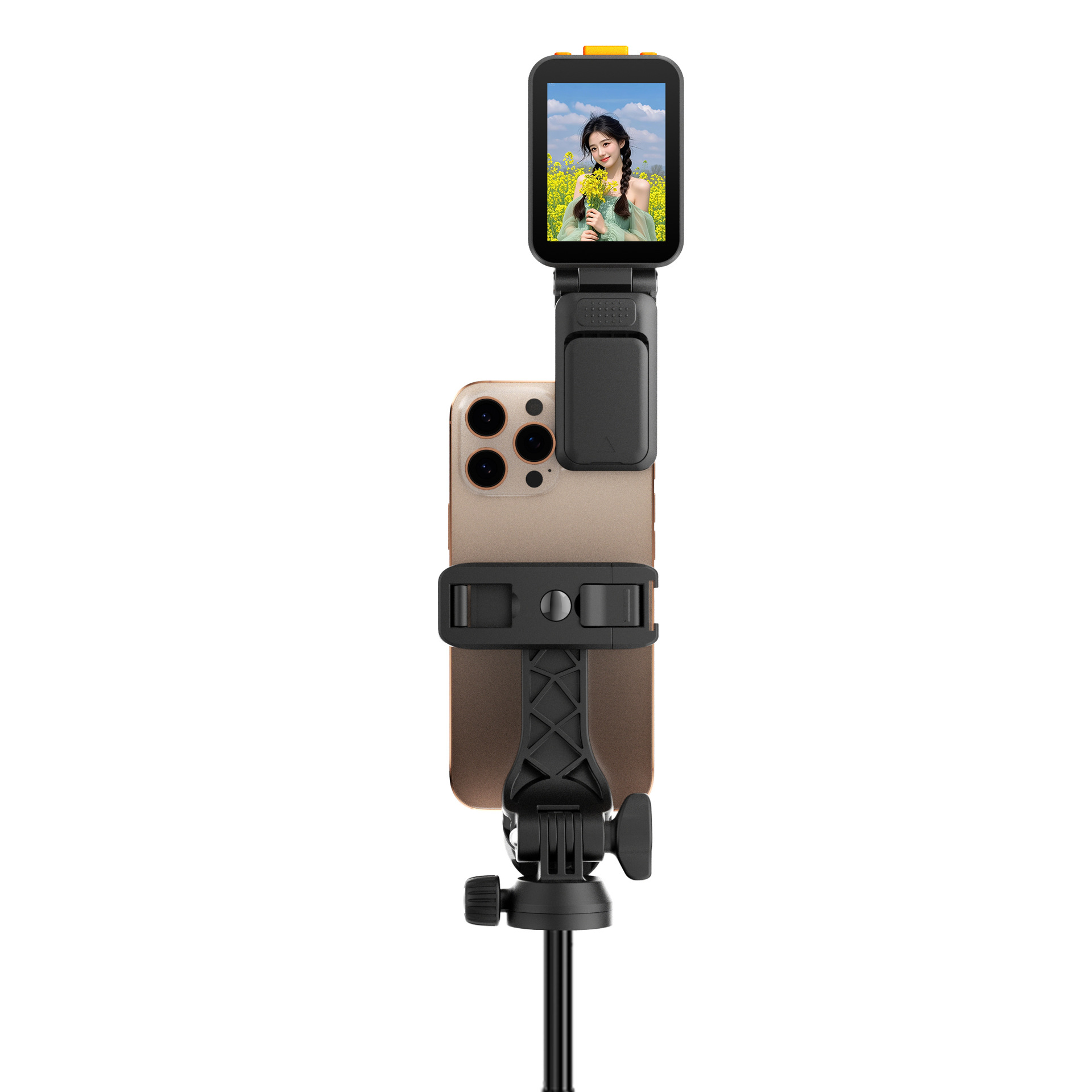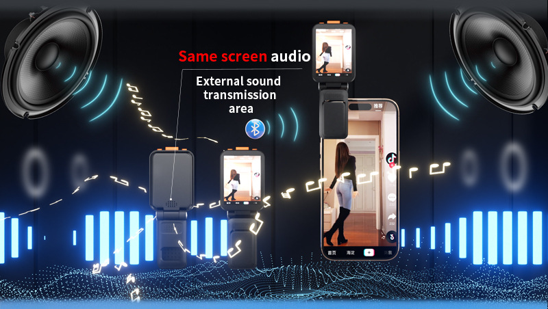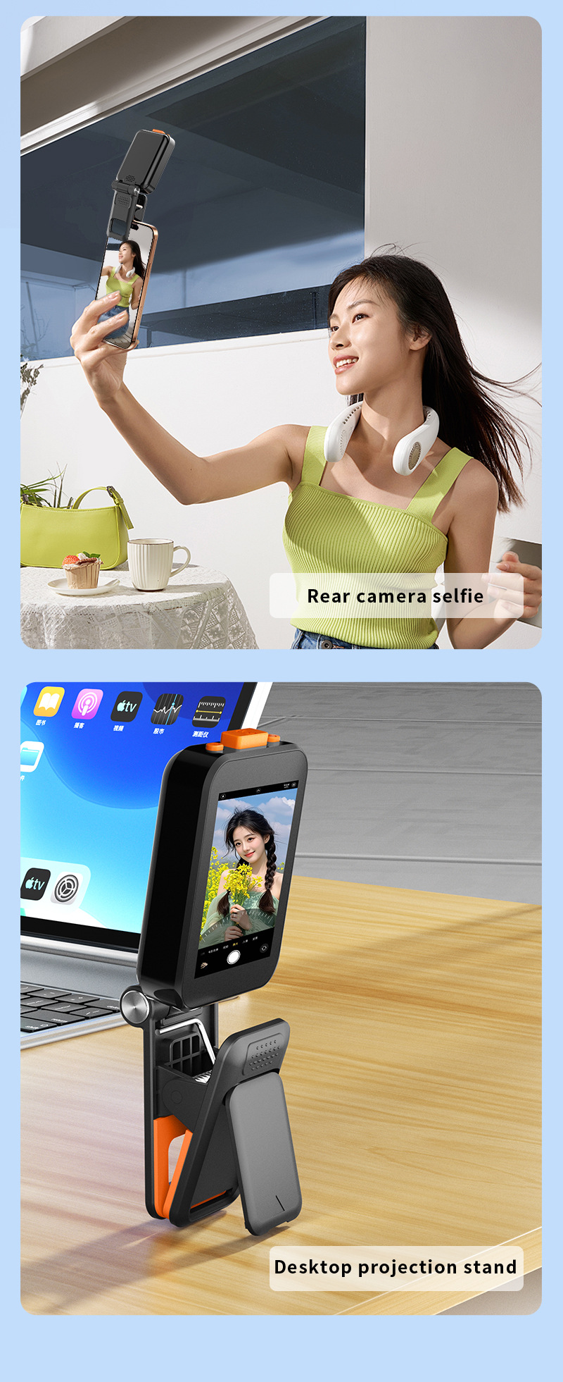 A three-in-one audio selfie screen (audio screen saver + selfie camera + clip)
