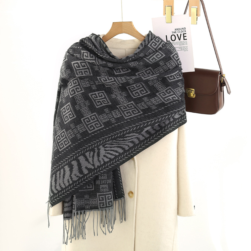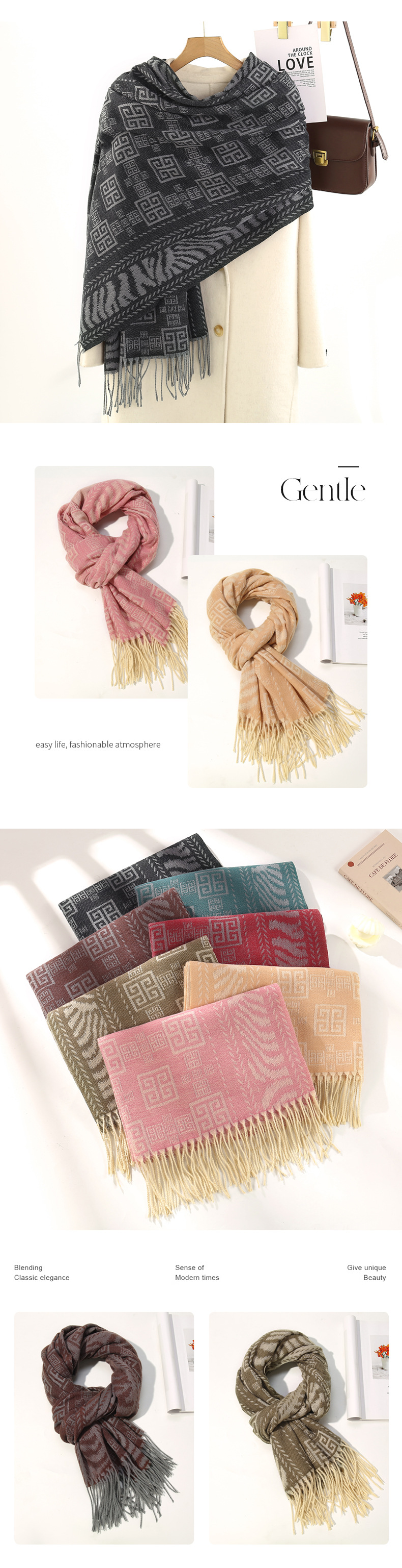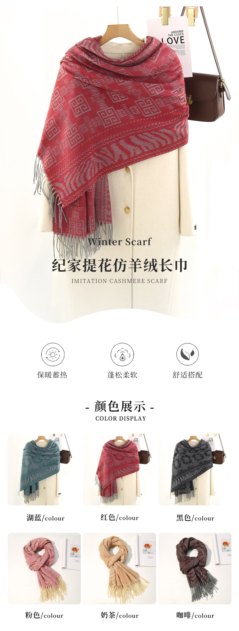 남성과 여성을위한 Ins 디자인 감각 jijia jacquard tassel 모조 캐시미어 스카프 가을과 겨울 새로운 따뜻한 긴 목도리 도매스토어 가기