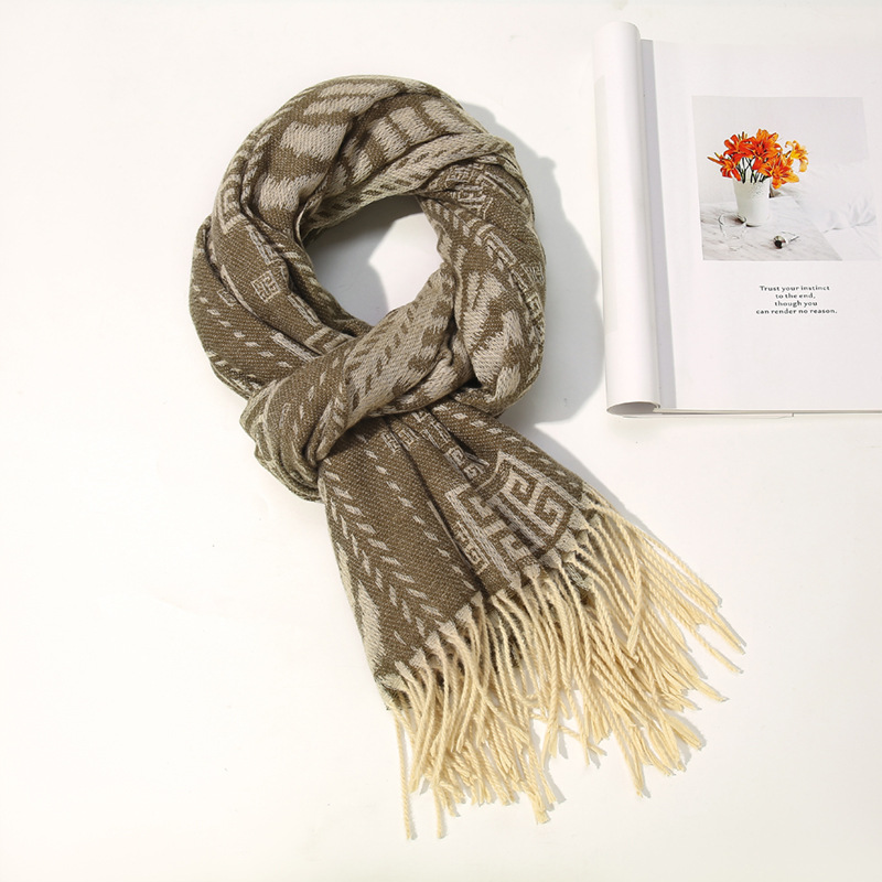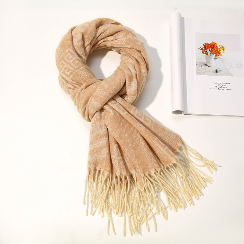 남성과 여성을위한 Ins 디자인 감각 jijia jacquard tassel 모조 캐시미어 스카프 가을과 겨울 새로운 따뜻한 긴 목도리 도매