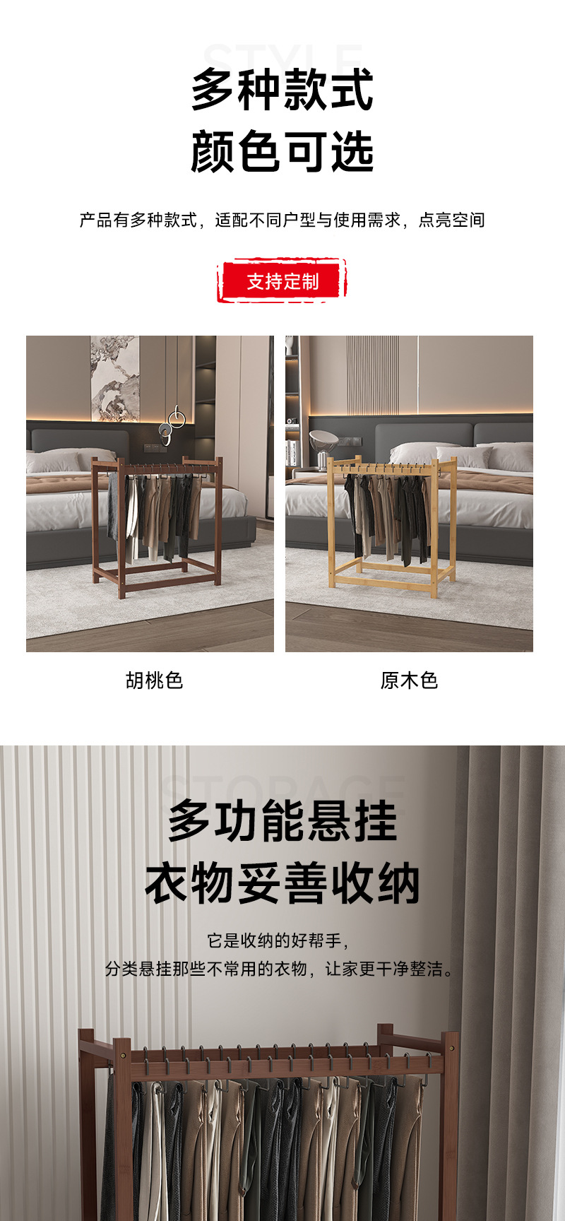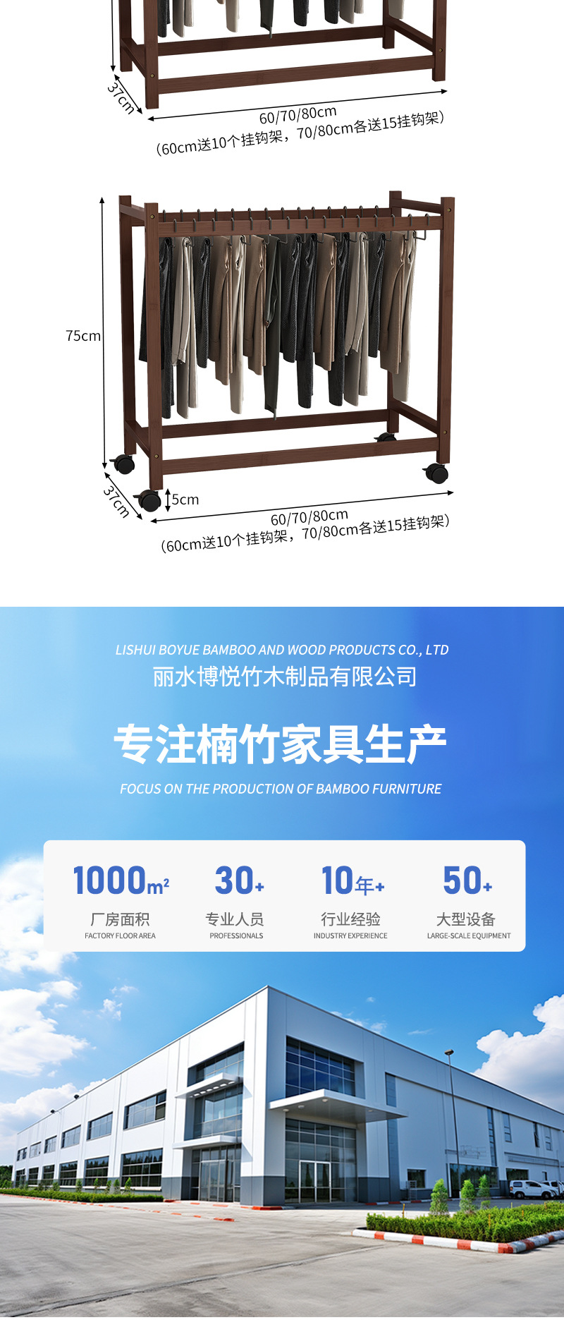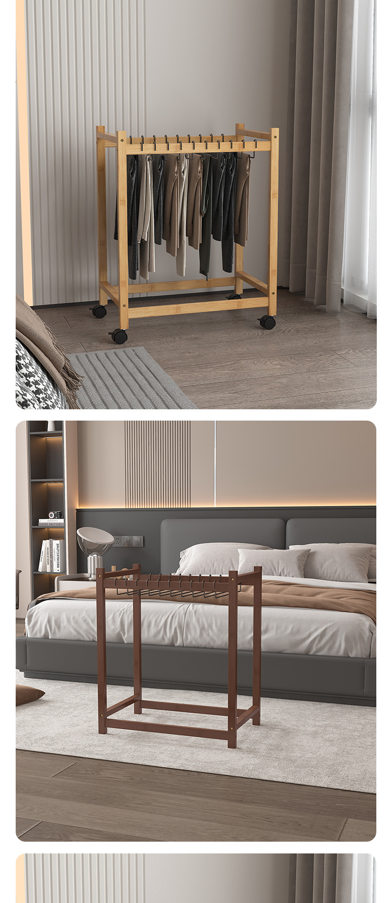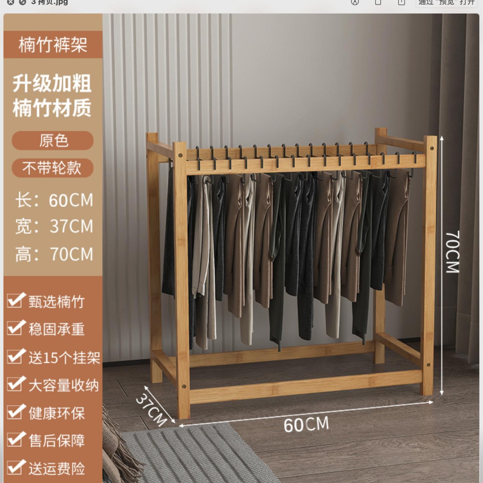 • 호두색 바지걸이(바퀴 포함) 60개(고리 10개 포함)