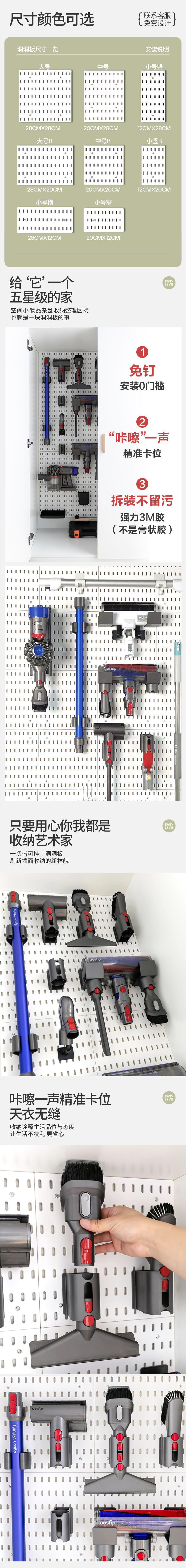 다이슨 진공청소기 보관함에 적합한 벽걸이형 공구 캐비닛, 구멍 없는 보드 액세서리 보관함