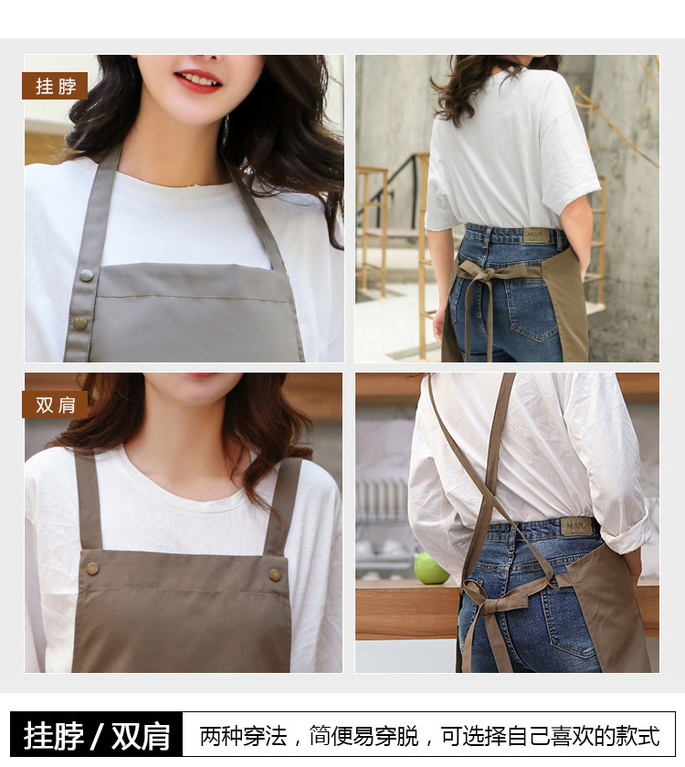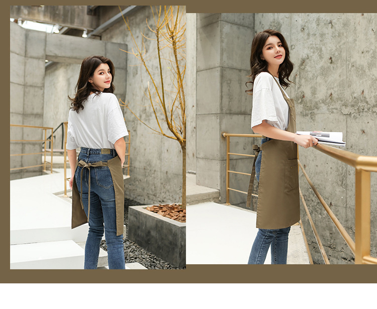 아마존 패션 목면 캔버스 앞치마 우유 차 커피 숍 앞치마 레스토랑 웨이터 작업복 인쇄 로고