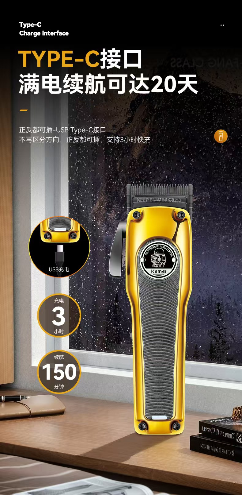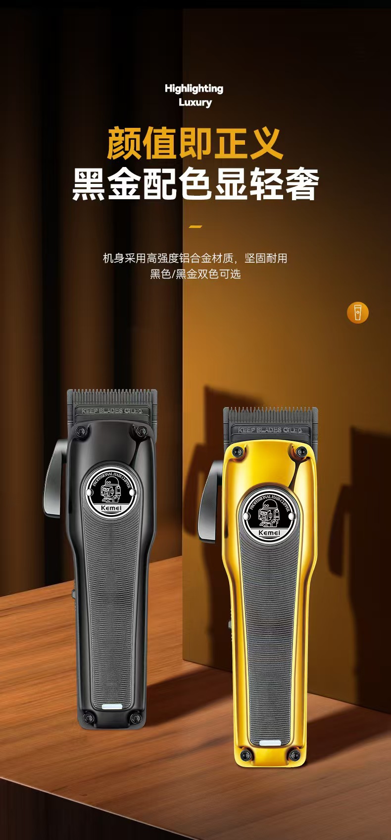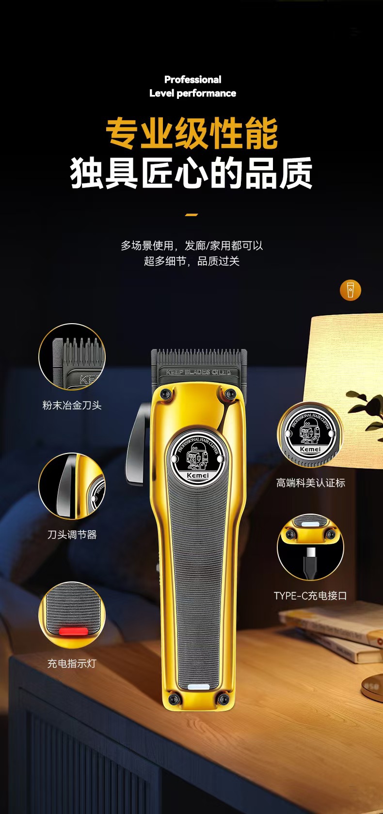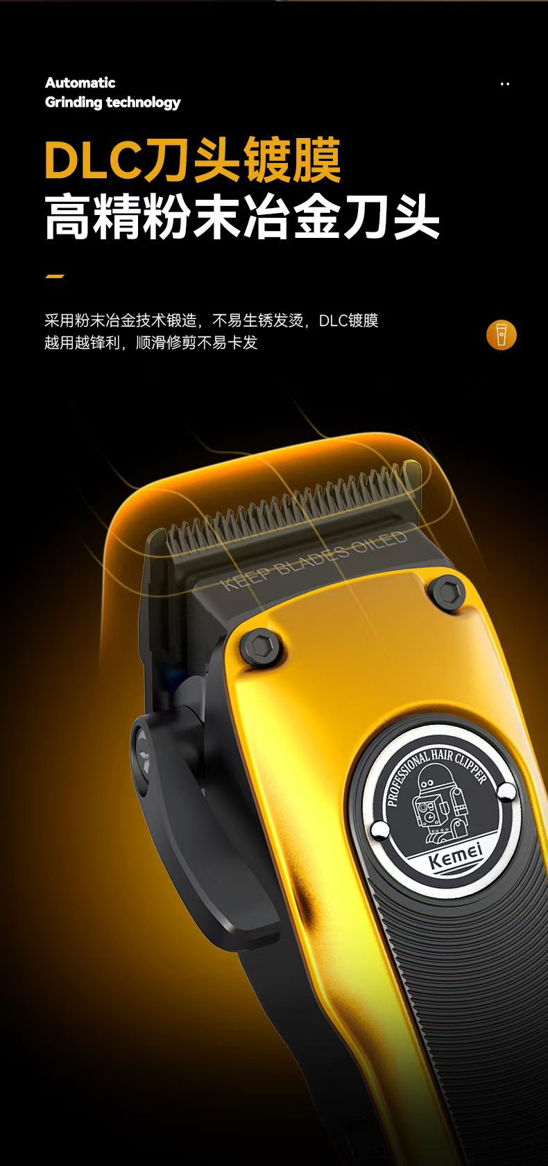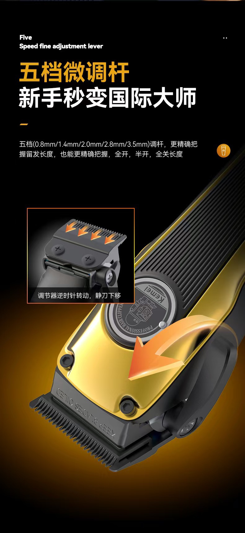 Kemei KM-1826 새로운 분말 야금 커터 헤드 전기 클리퍼 이발사 조정 가능한 전문 전기 클리퍼 이발사