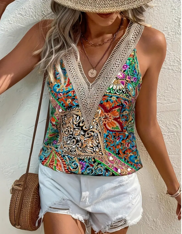 국경 간 유럽과 미국의 새로운 아마존 테무 여성의 보헤미안 캐주얼 휴가 페이즐리 인쇄 카미 솔스토어 가기