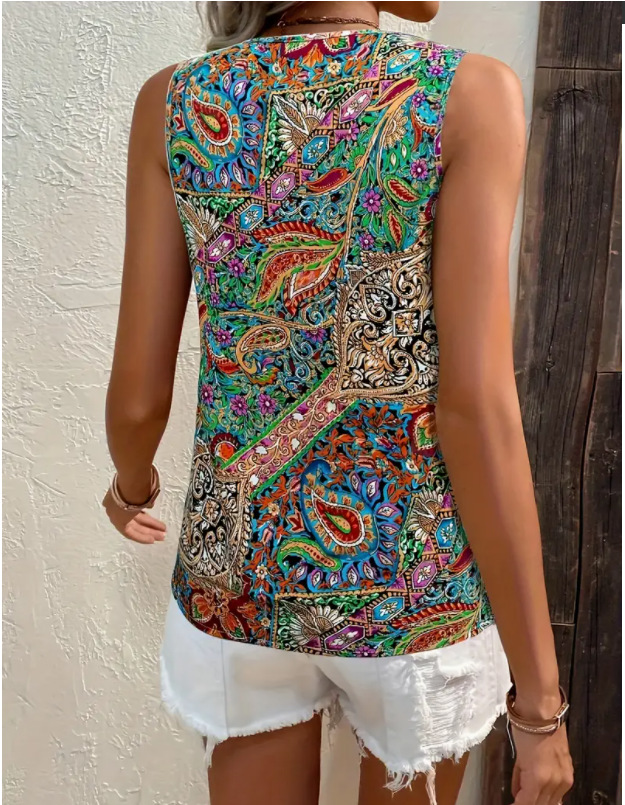 국경 간 유럽과 미국의 새로운 아마존 테무 여성의 보헤미안 캐주얼 휴가 페이즐리 인쇄 카미 솔