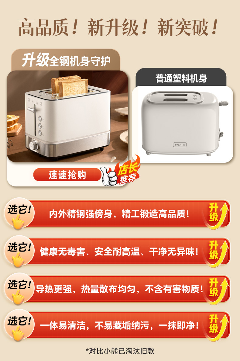 곰 아침 식사 기계 토스터 가정용 샌드위치 토스터 소형 완전 자동 토스트 토스터스토어 가기