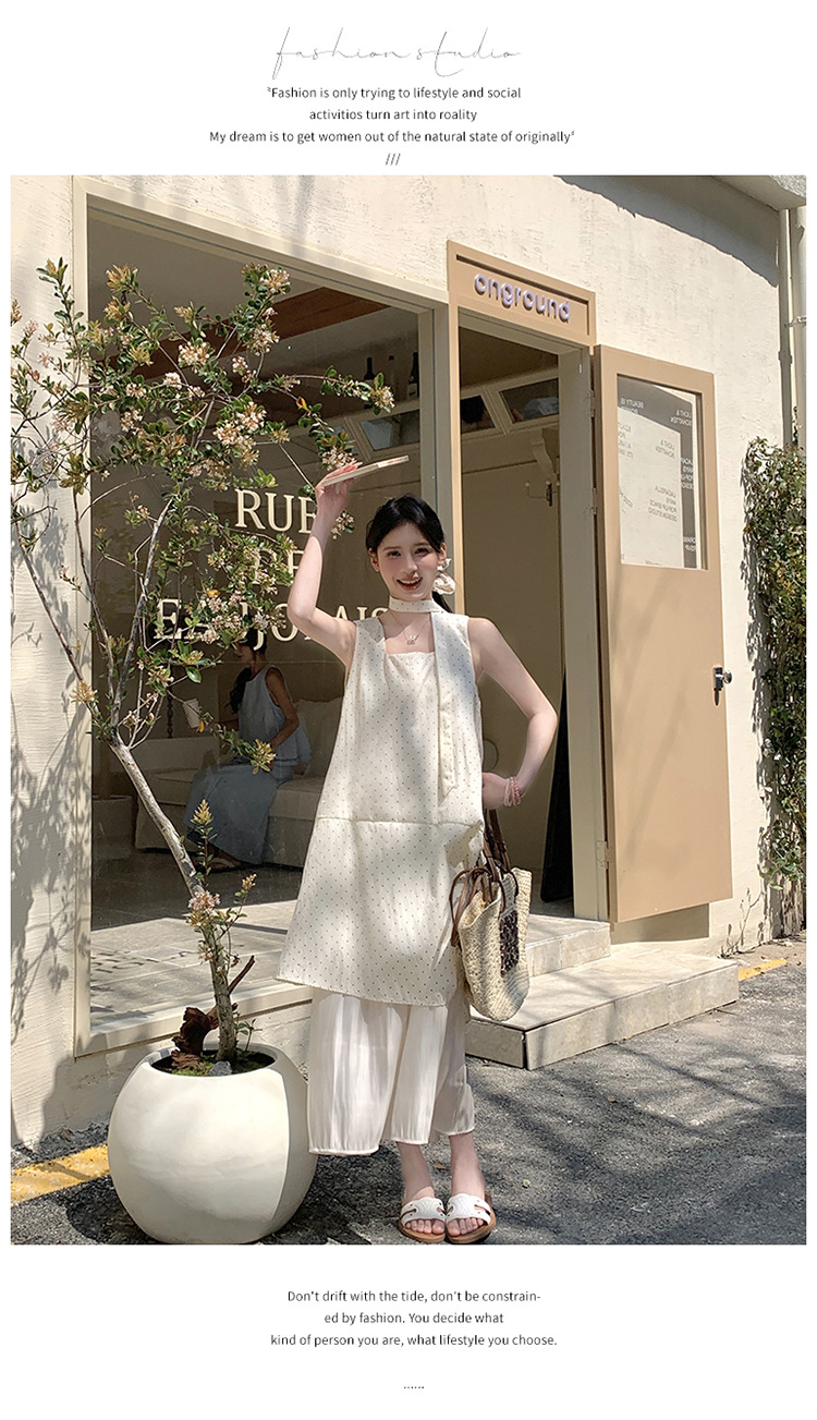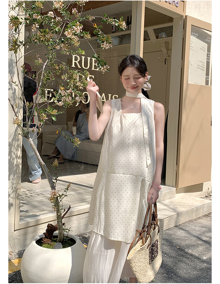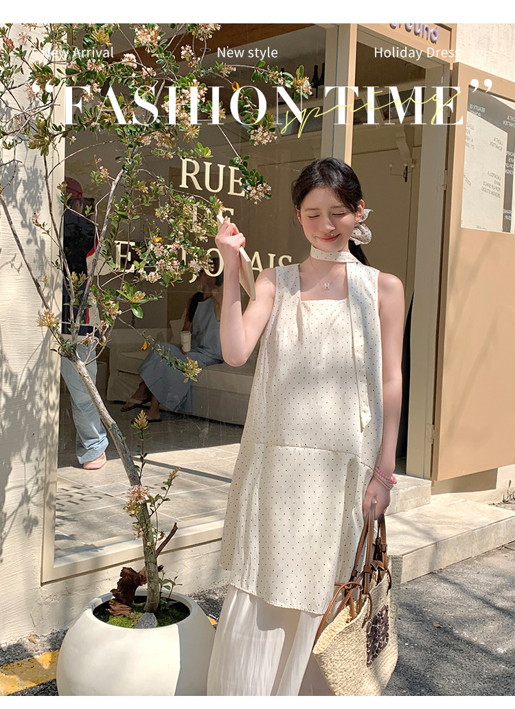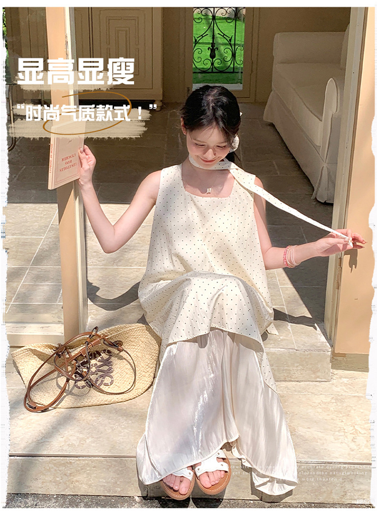 리얼 샷 가짜 2 피스 웨이브 도트 스티칭 원피스 여성 2025 년 여름 새로운 프랑스 디자인 타이트 허리 슬리밍 조끼 스커트스토어 가기