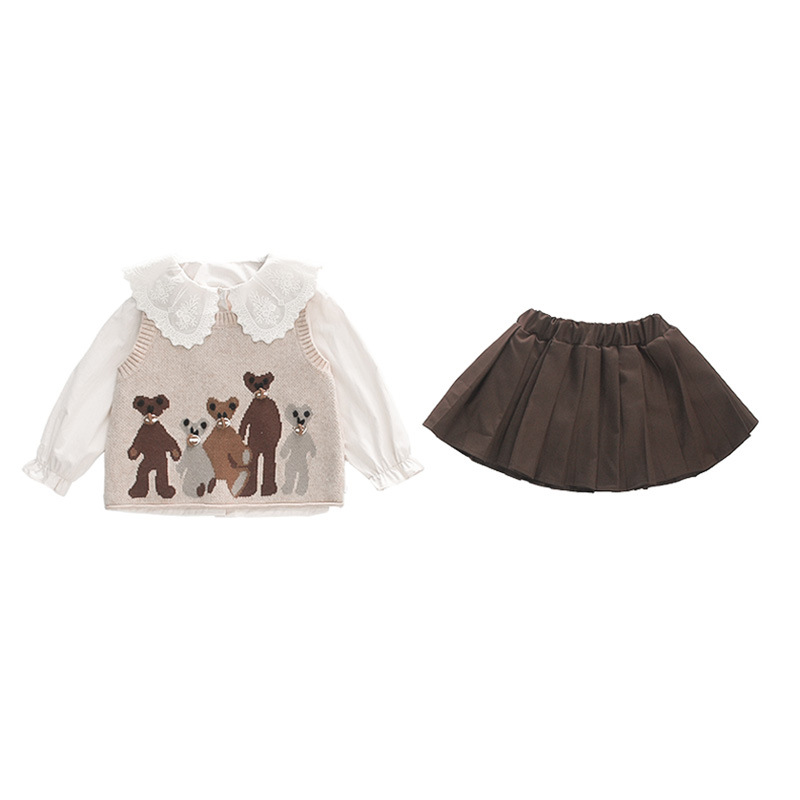 여자 가을 세트 2024 새로운 가을 어린이 만화 여성의 아기 그물 빨간 스웨터 조끼 셔츠 3 피스 세트스토어 가기