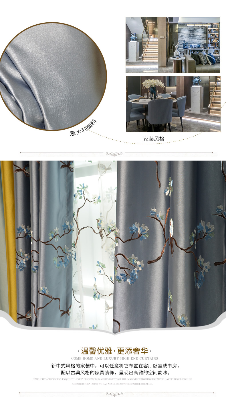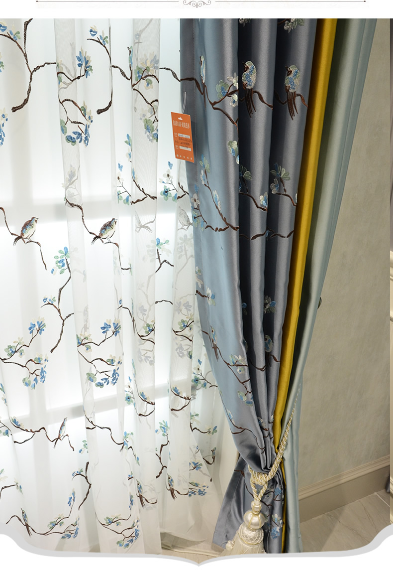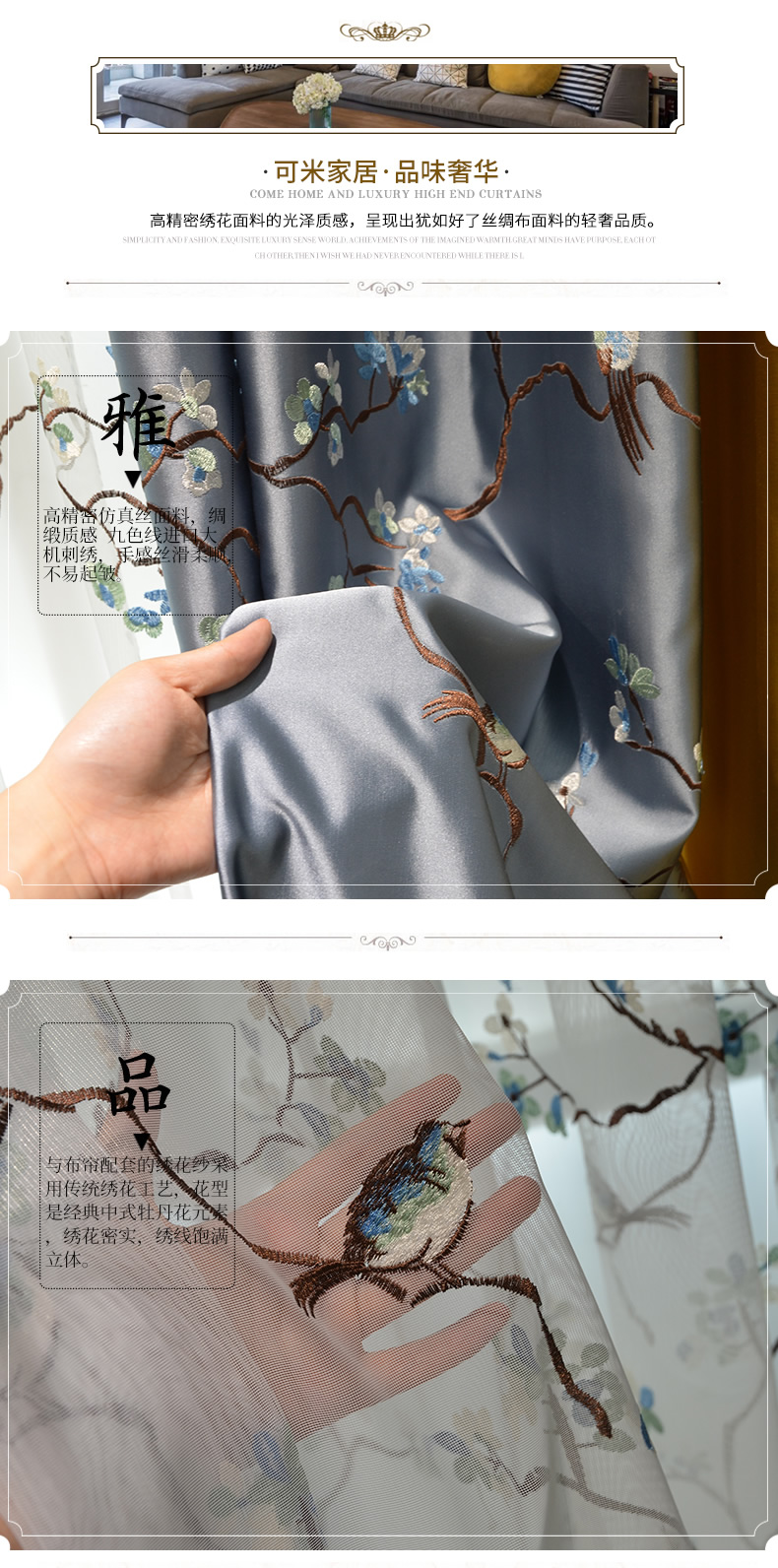 공장 가격 현대 새로운 중국 스타일 중국 스타일 접합 커튼 새로운 스타일 대기 수 놓은 접합 거실 침실 거즈 커튼 완제품스토어 가기