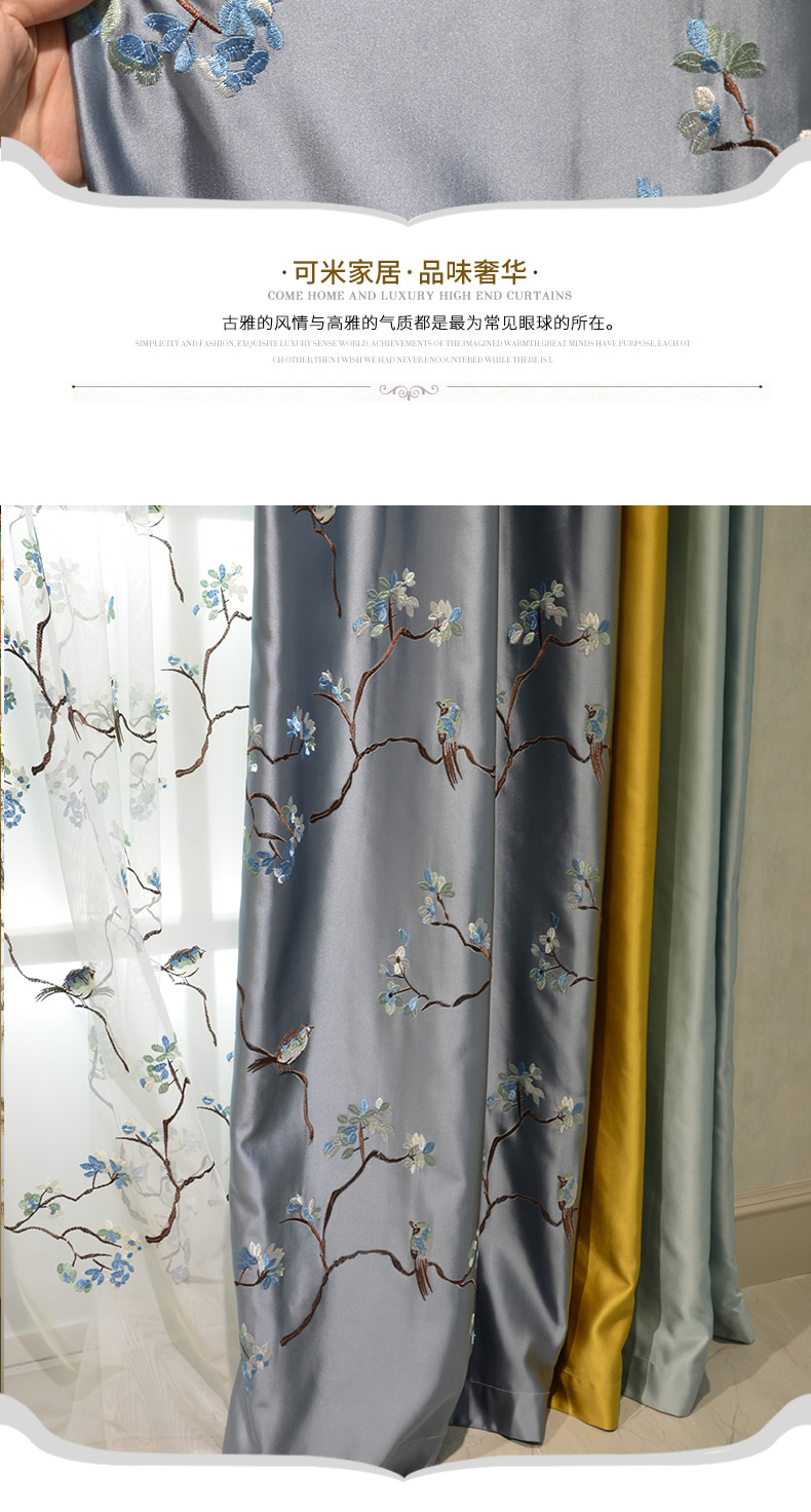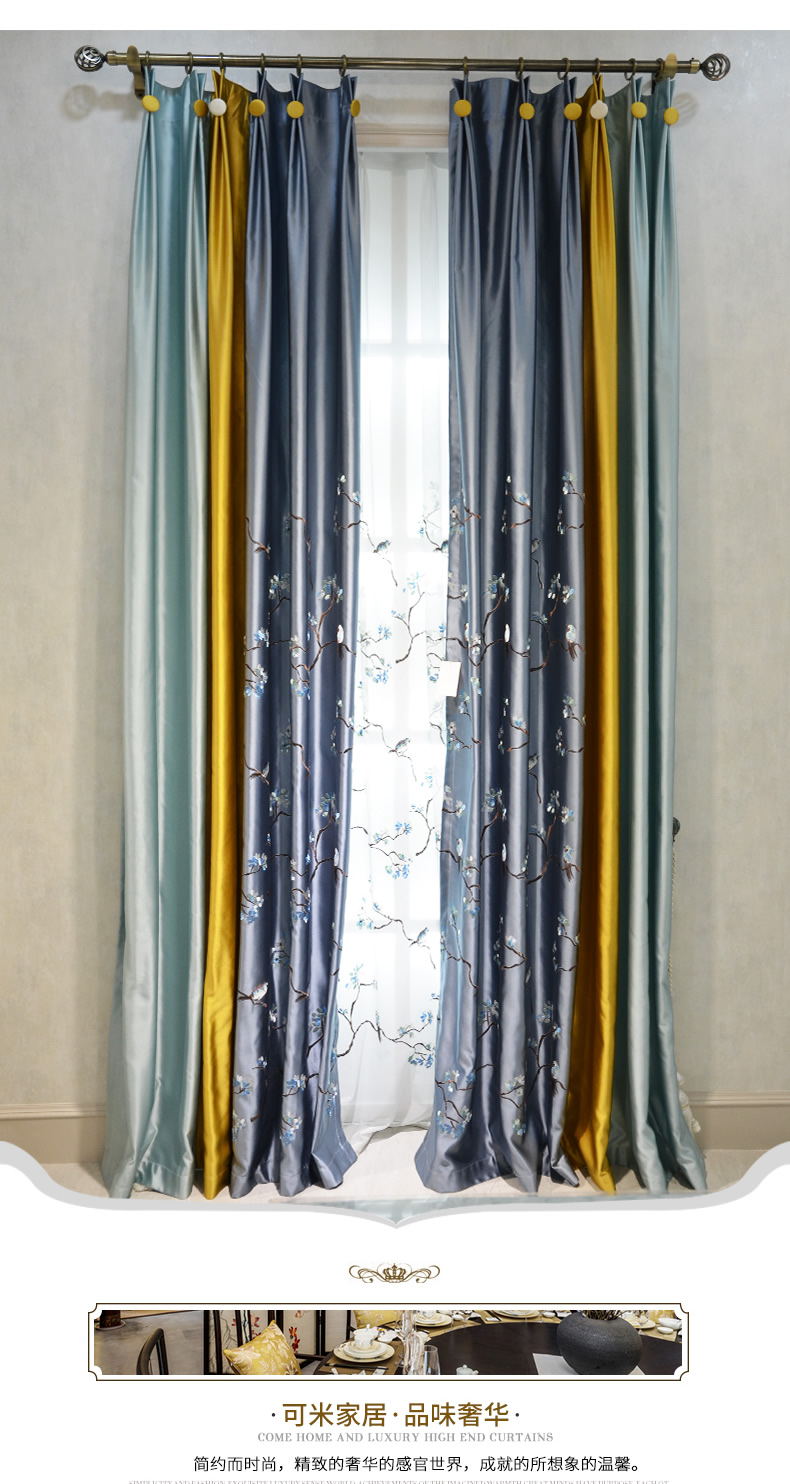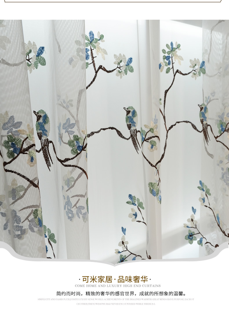 공장 가격 현대 새로운 중국 스타일 중국 스타일 접합 커튼 새로운 스타일 대기 수 놓은 접합 거실 침실 거즈 커튼 완제품스토어 가기