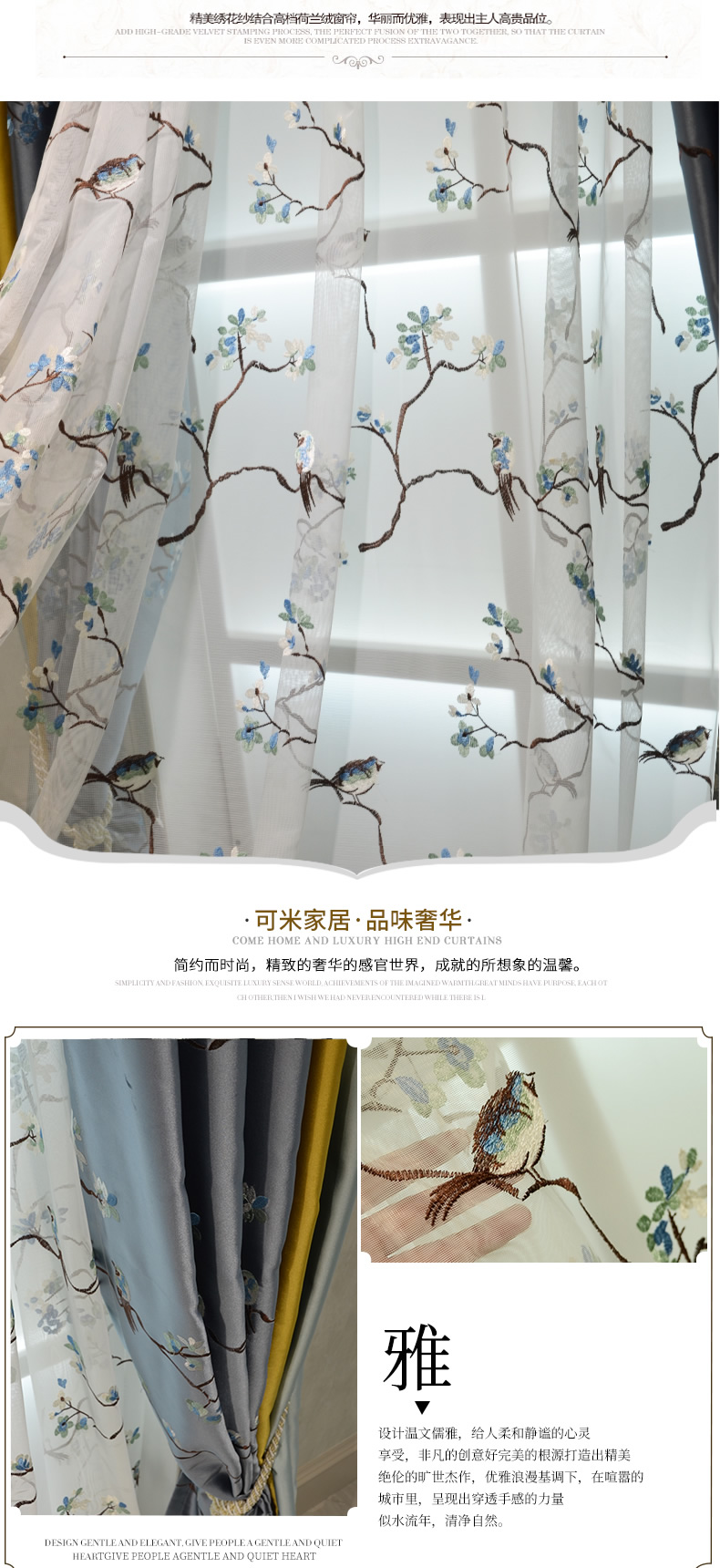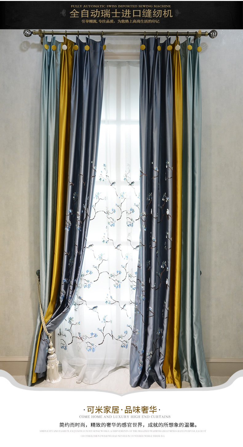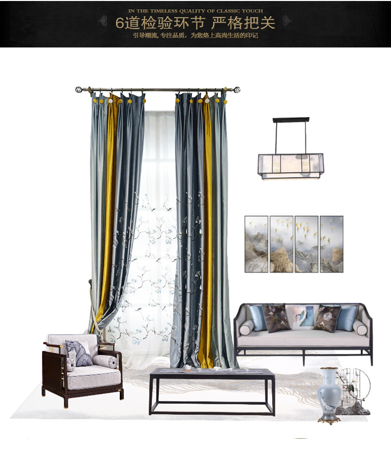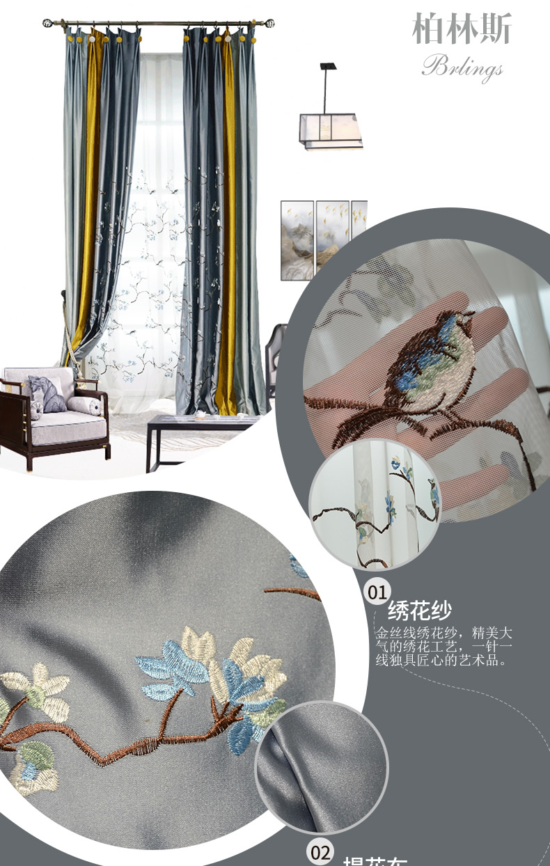 공장 가격 현대 새로운 중국 스타일 중국 스타일 접합 커튼 새로운 스타일 대기 수 놓은 접합 거실 침실 거즈 커튼 완제품