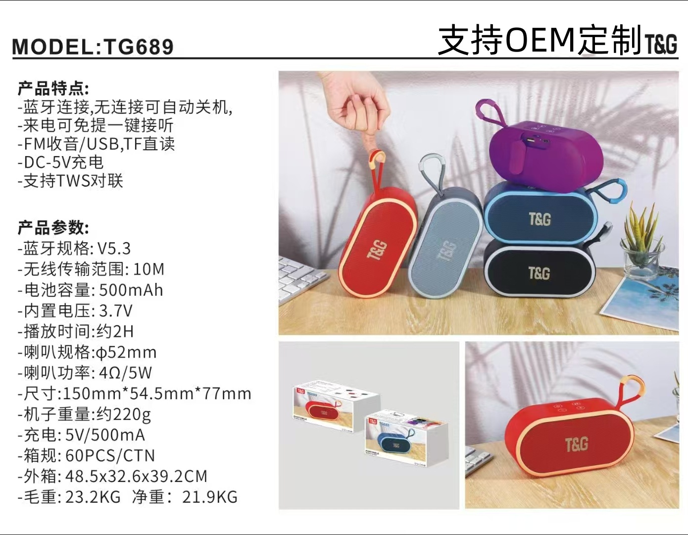 새로운 TG689 야외 승마 블루투스 스피커 무선 캠핑 하이킹 휴대용 대용량 오디오 무거운 서브 우퍼스토어 가기