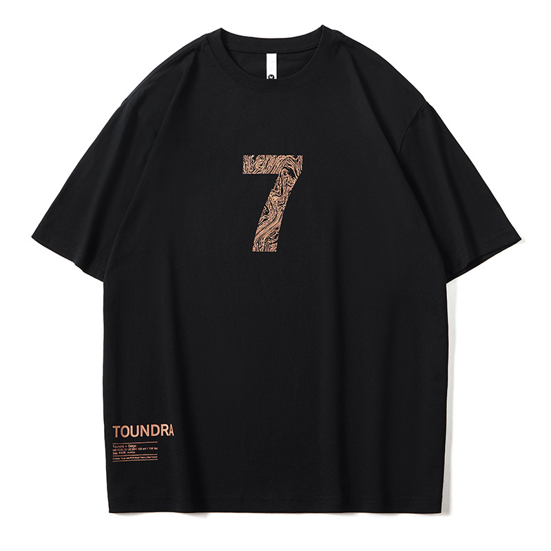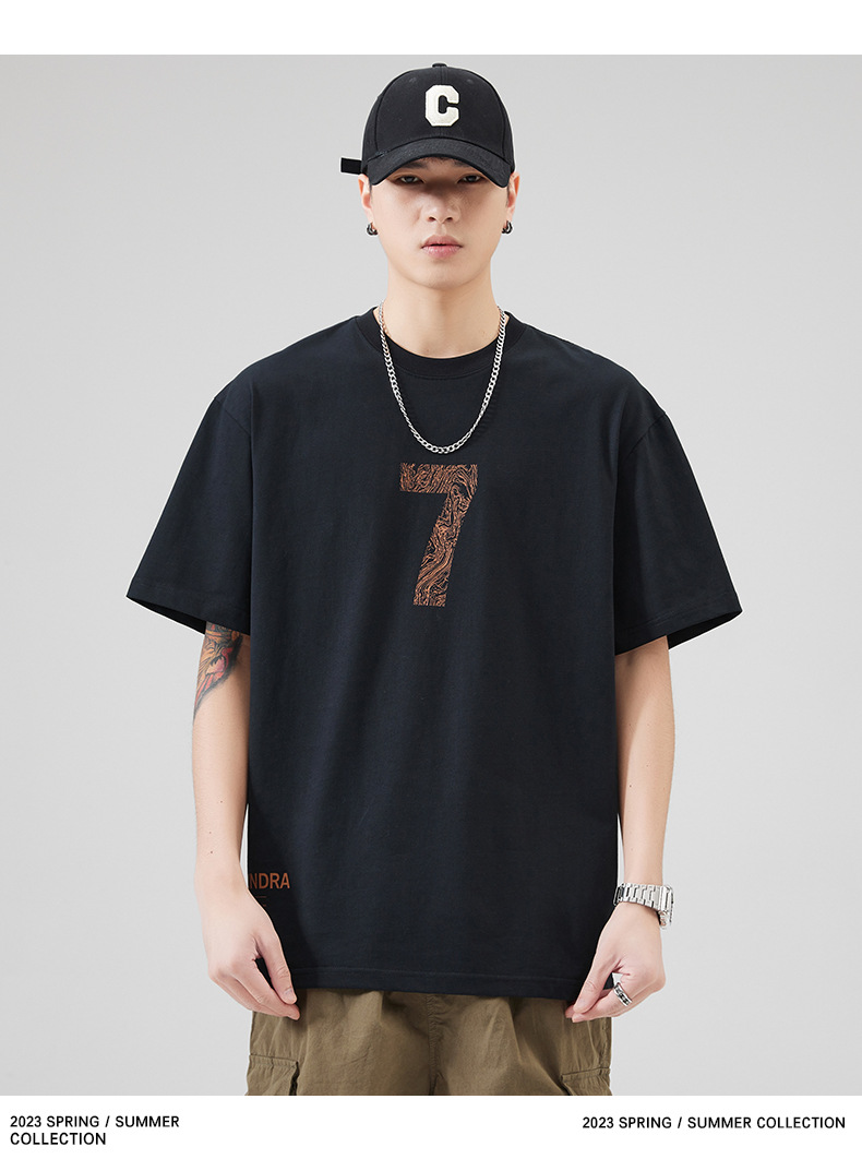 블랙 반팔 티셔츠 소년 여름 코튼 헤비 느슨한 크루 넥 탑 트렌디 프린트 남성용 캐주얼 티셔츠