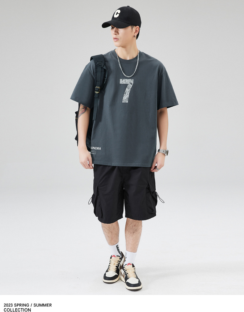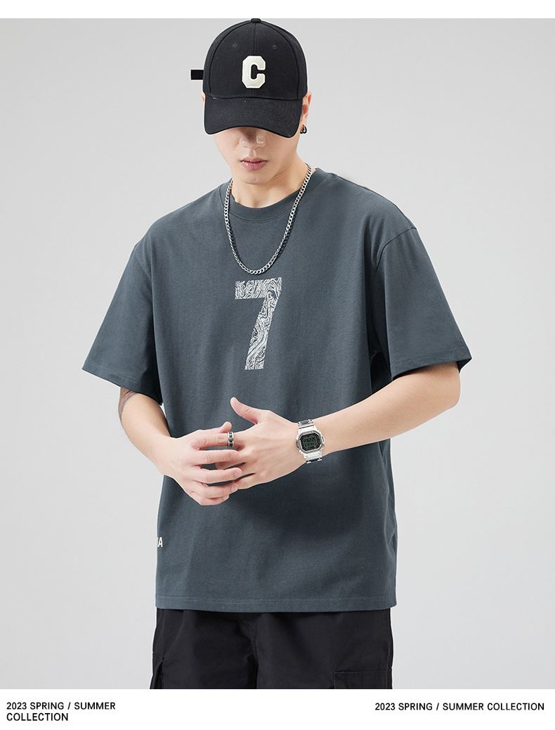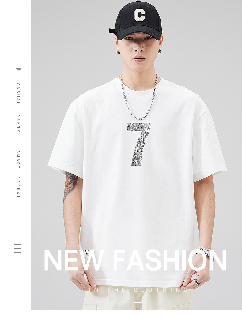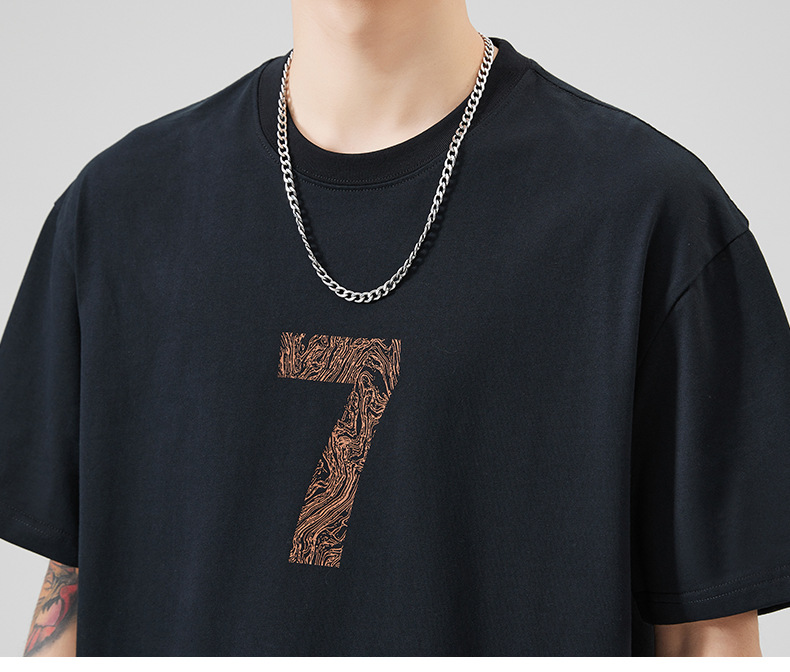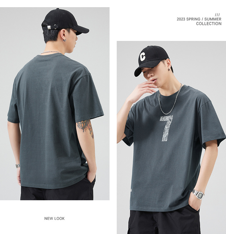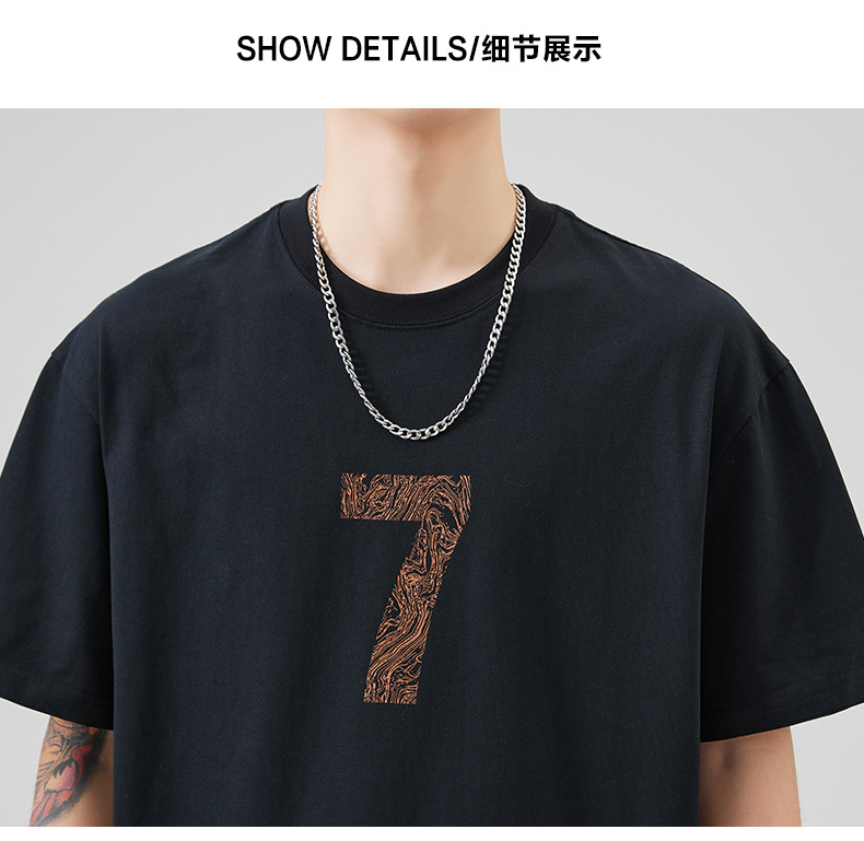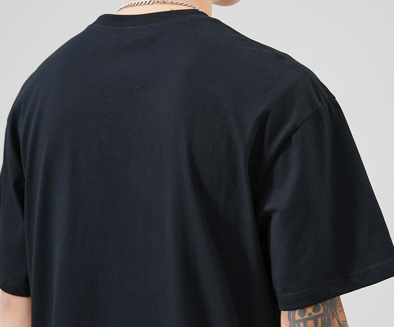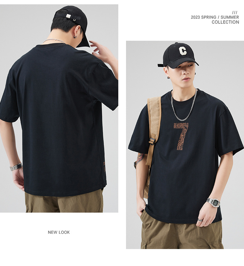 블랙 반팔 티셔츠 소년 여름 코튼 헤비 느슨한 크루 넥 탑 트렌디 프린트 남성용 캐주얼 티셔츠스토어 가기