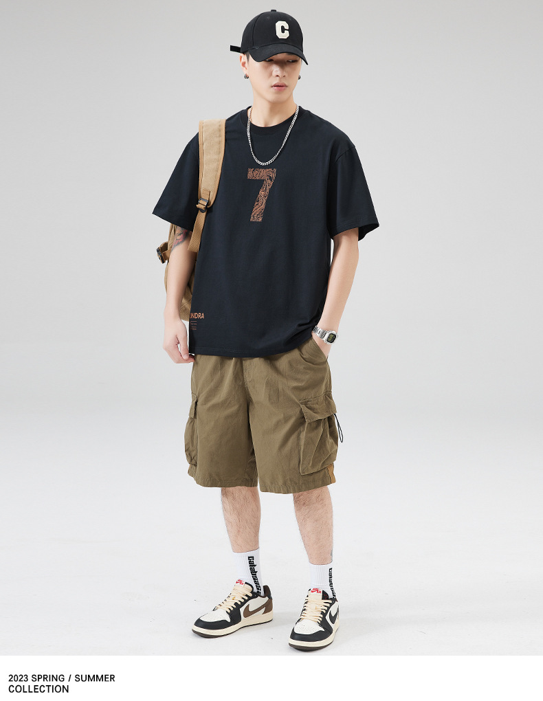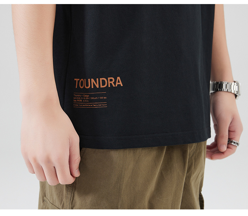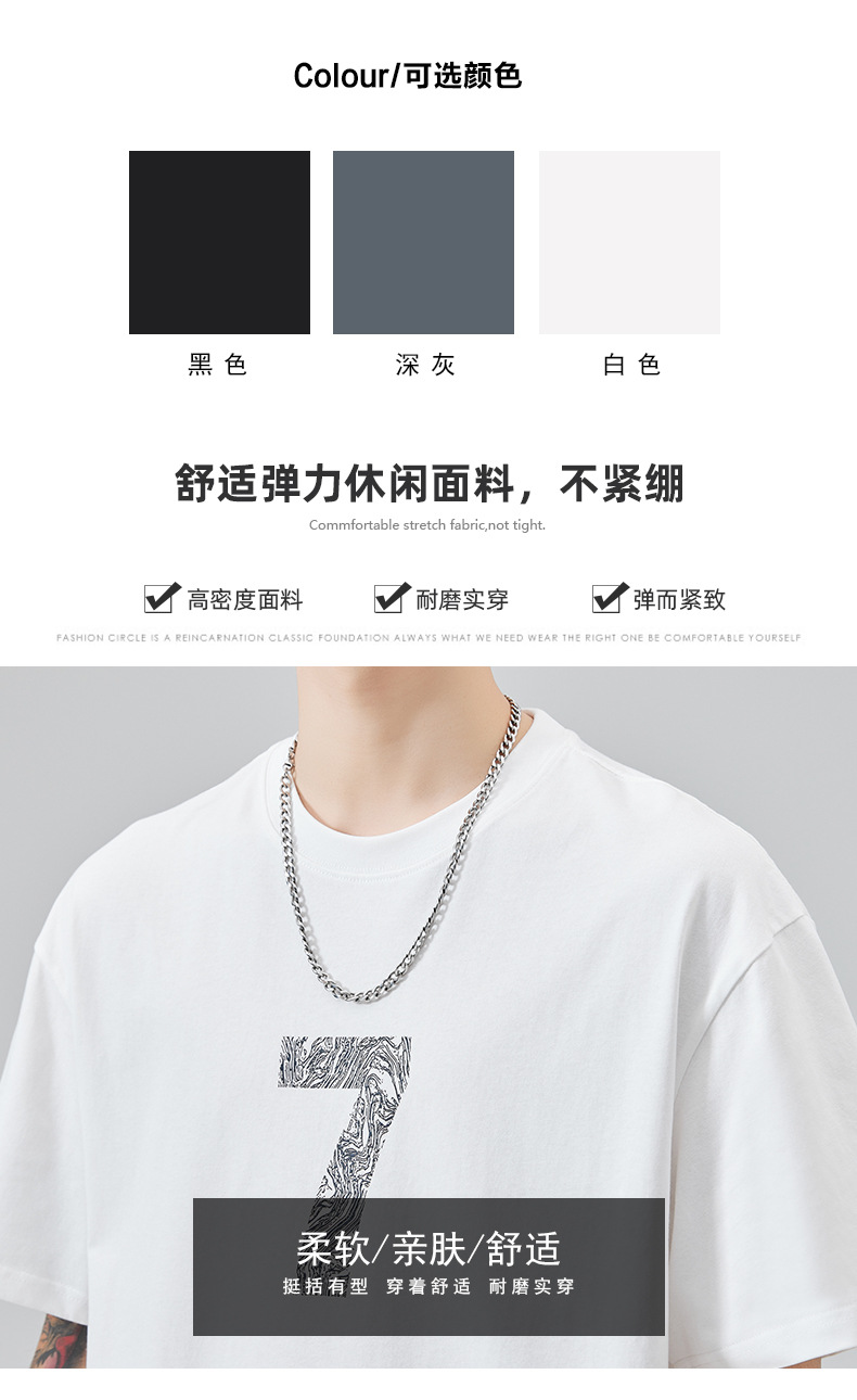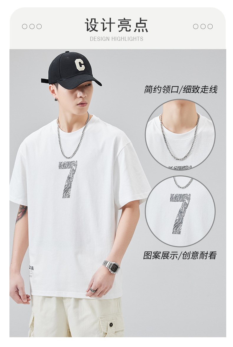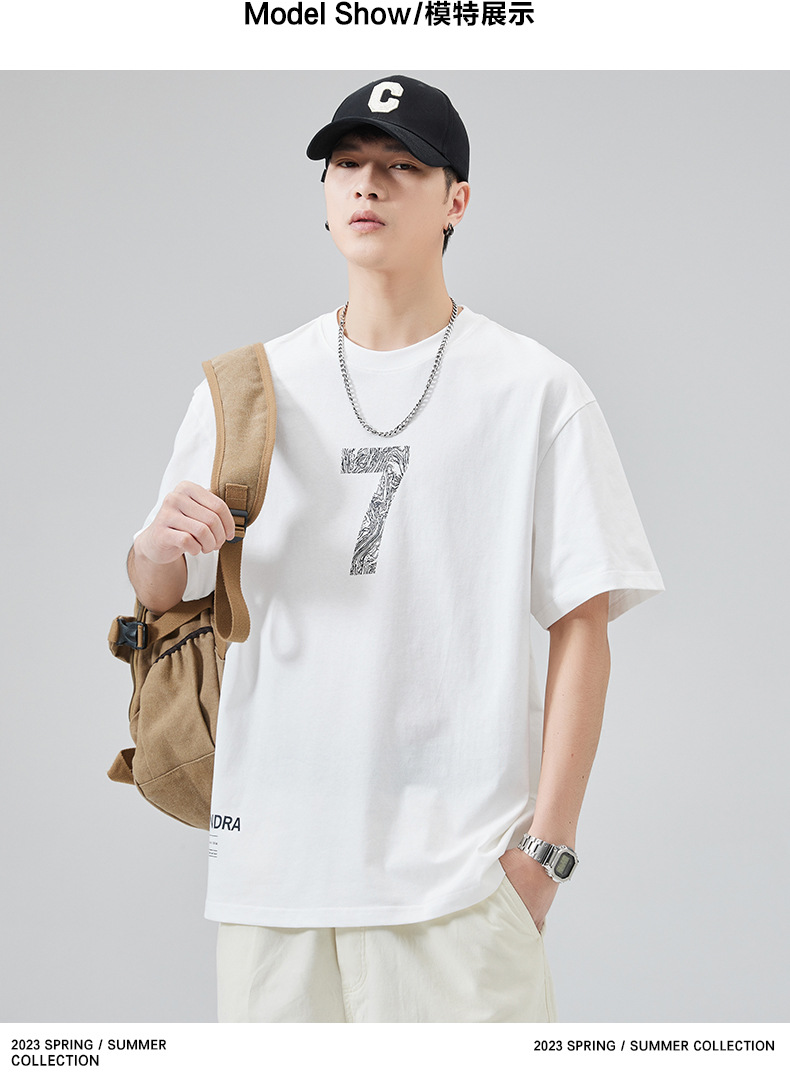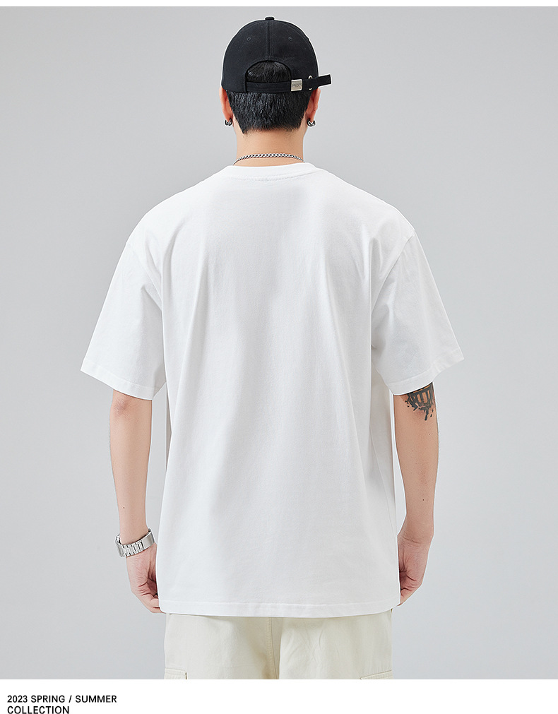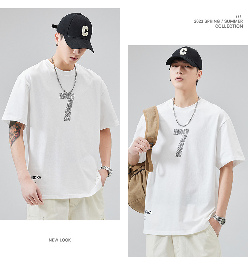 블랙 반팔 티셔츠 소년 여름 코튼 헤비 느슨한 크루 넥 탑 트렌디 프린트 남성용 캐주얼 티셔츠스토어 가기