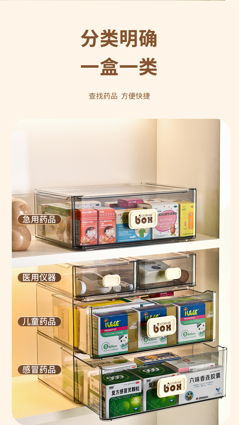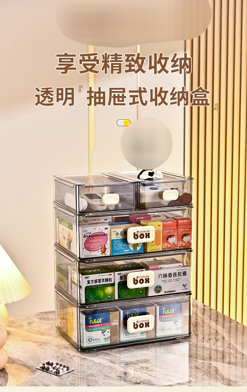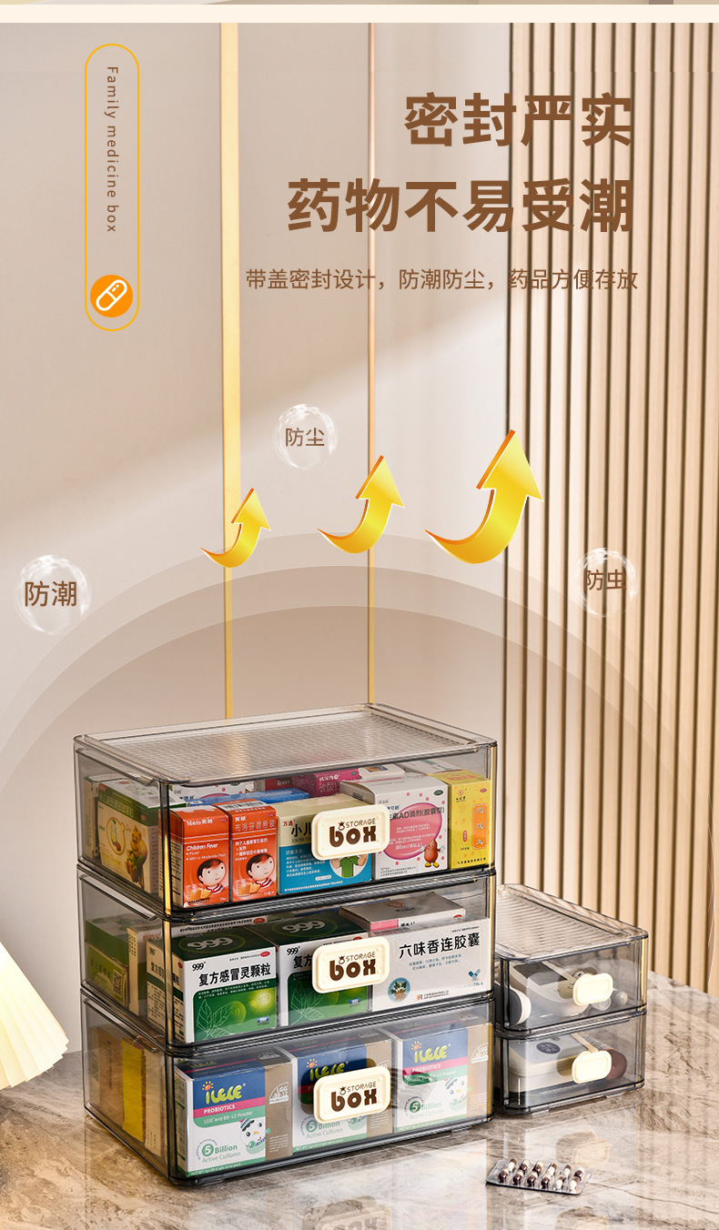 휴대용 서랍 유형 약 상자 방진 약 상자 저장 상자 가정용 다기능 투명한 대형 저장 상자 조합