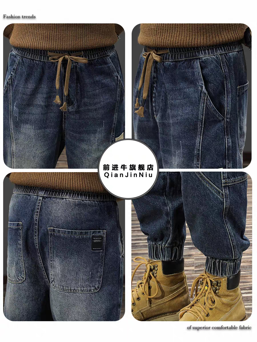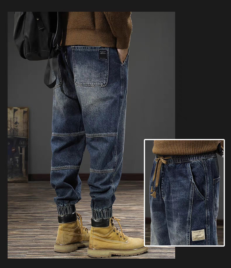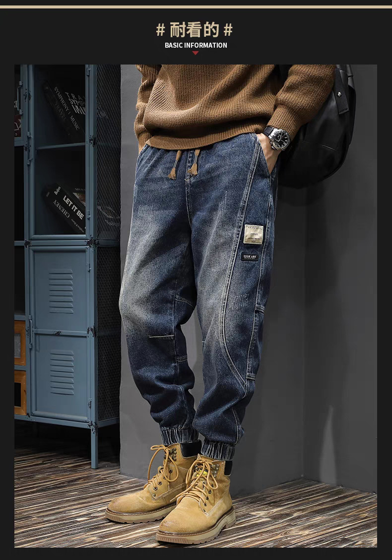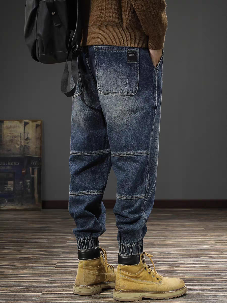 남성용 레트로 하이 스트리트 작업복 바지 2024 가을, 겨울 새로운 느슨한 대형 청바지 남성용 레깅스 캐주얼 패션스토어 가기