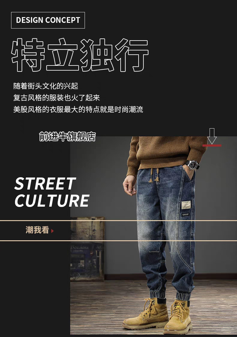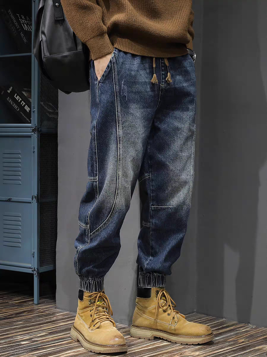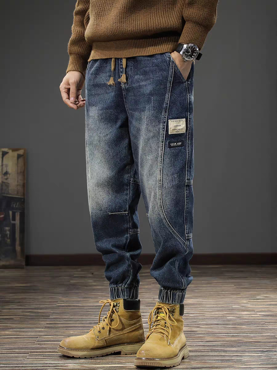 남성용 레트로 하이 스트리트 작업복 바지 2024 가을, 겨울 새로운 느슨한 대형 청바지 남성용 레깅스 캐주얼 패션스토어 가기