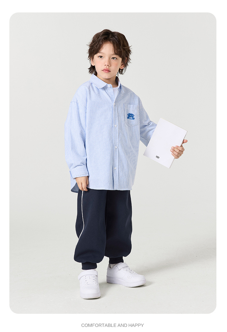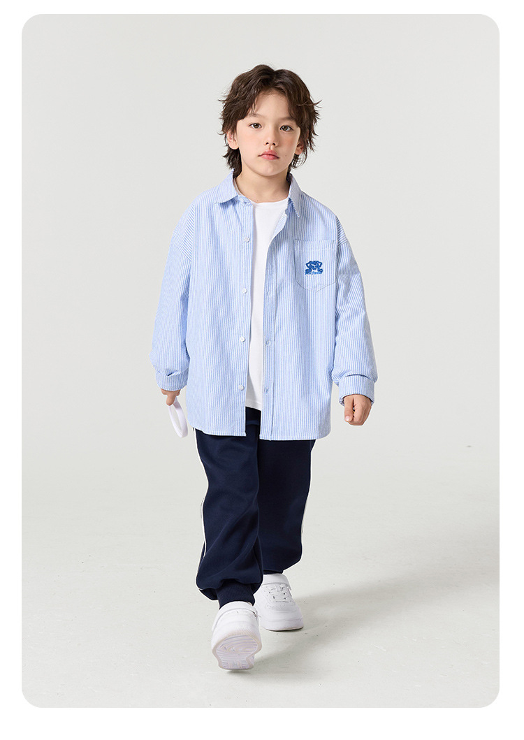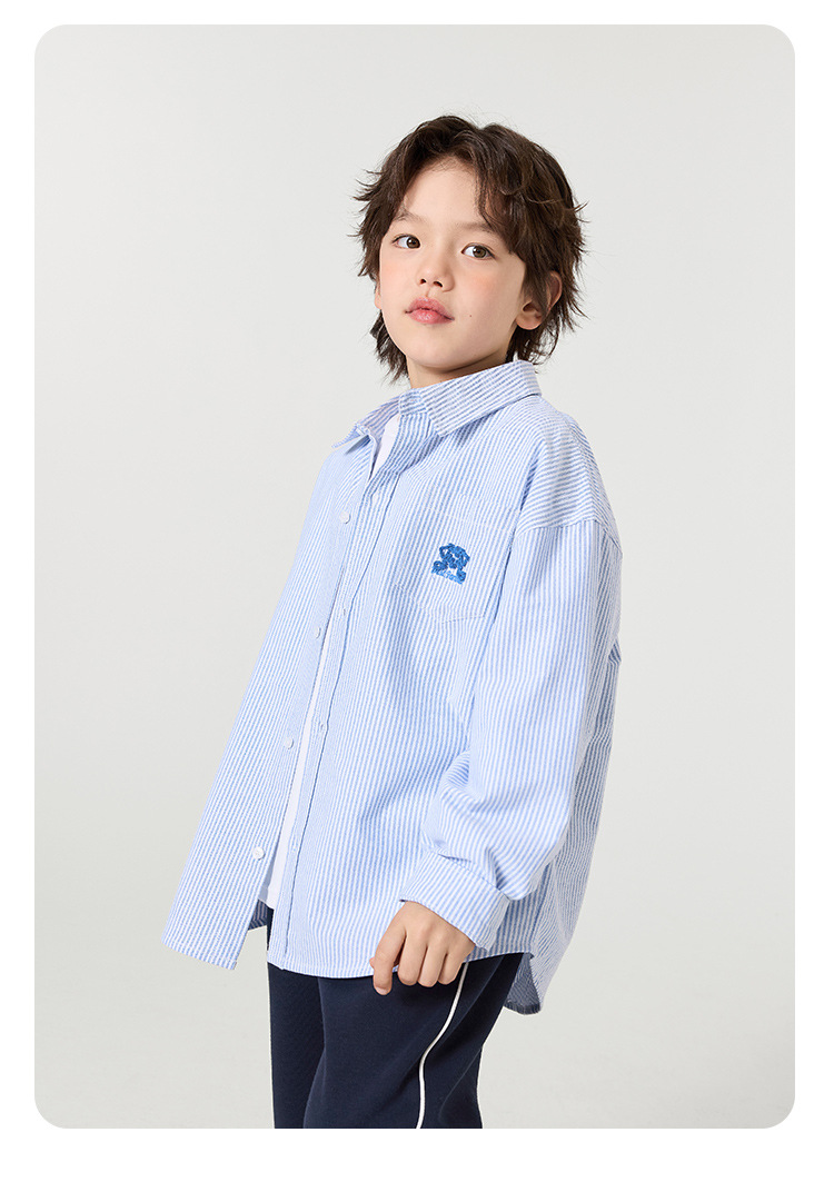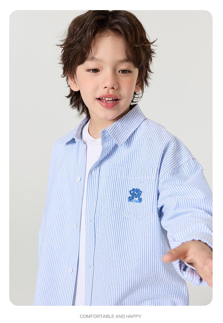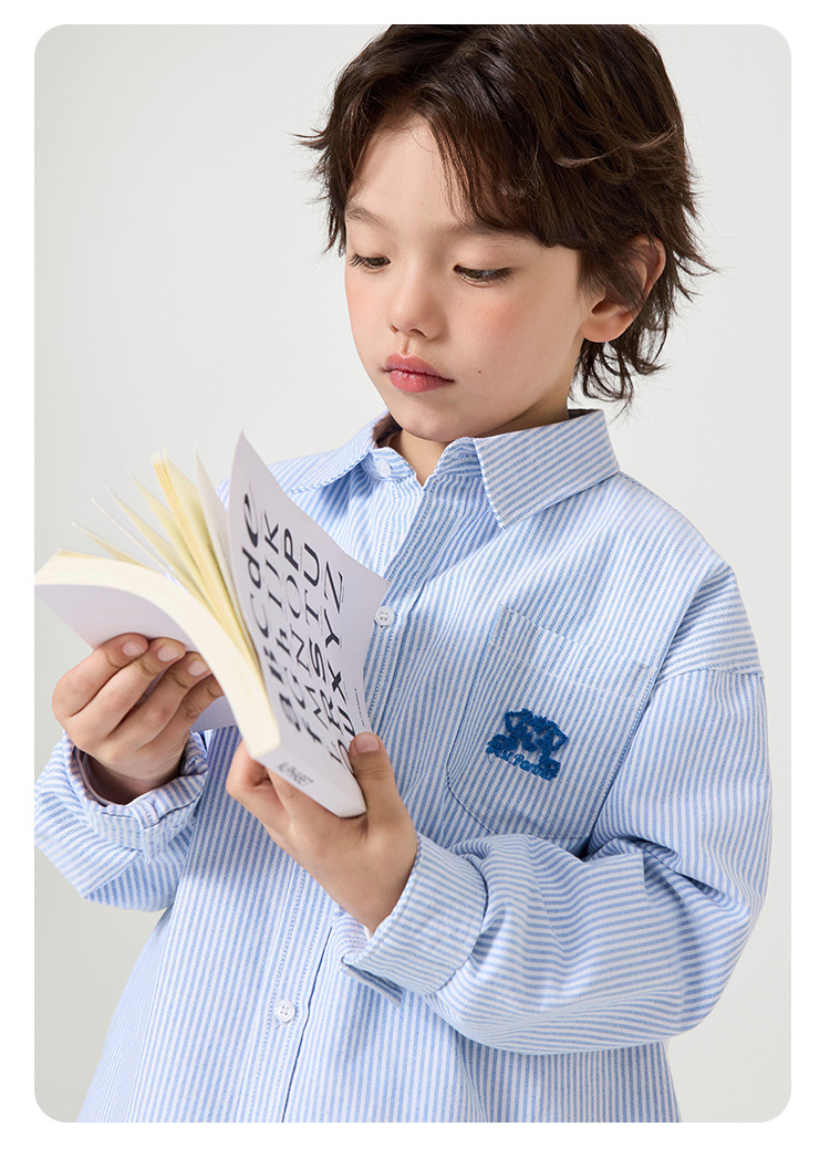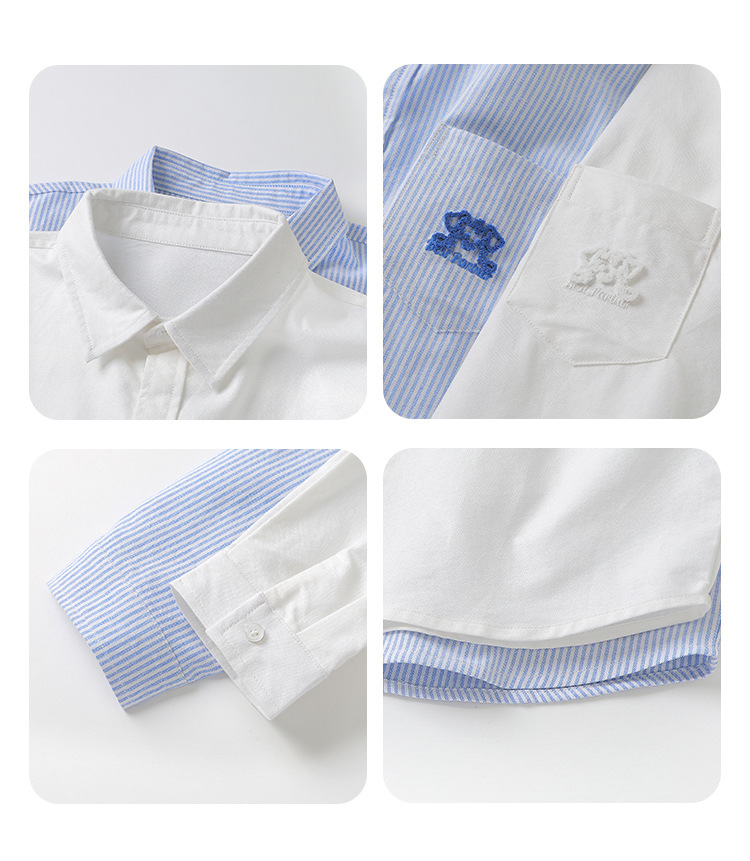 오른쪽 유럽 소년 면 옥스포드 셔츠 재킷 봄 봄 가을 새로운 어린이 셔츠 아기 유행 옷스토어 가기