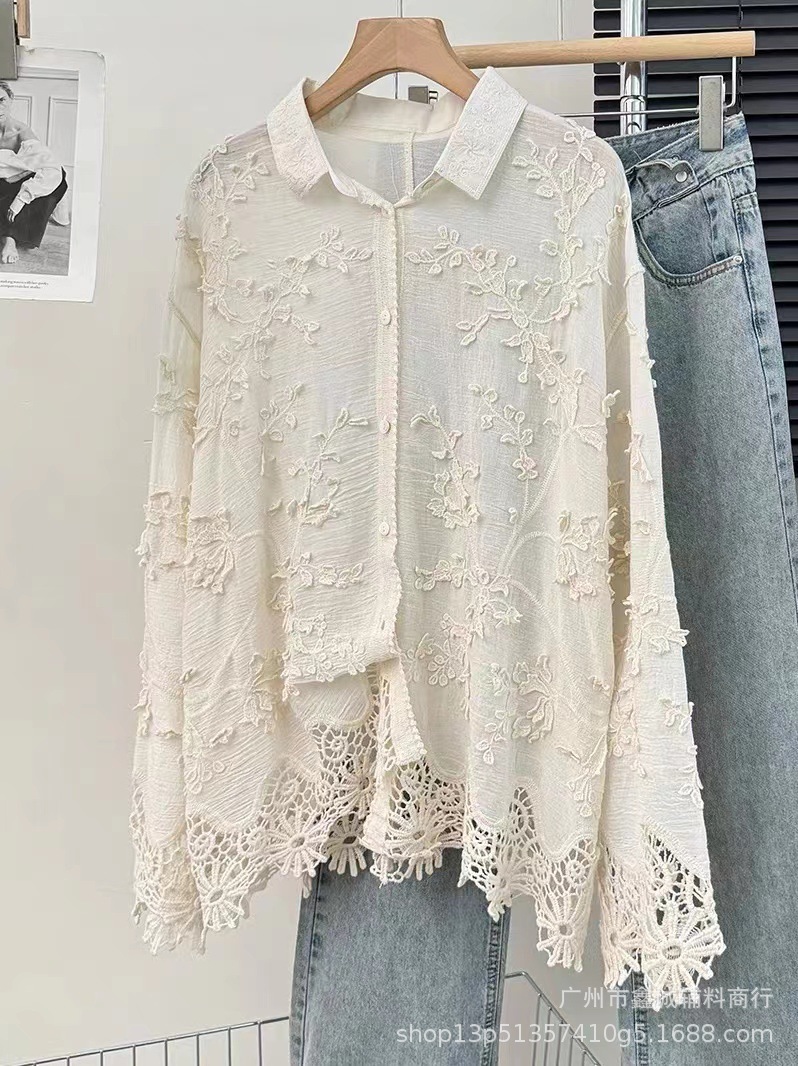 프랑스 로맨틱 셔츠 할로우 레이스 바느질 셔츠 여성용 여름 새 옷깃 탑 자수 셔츠 트렌디