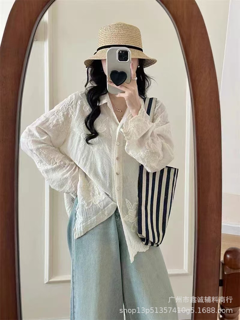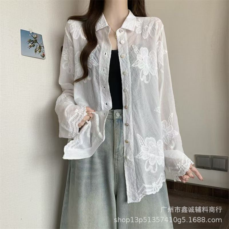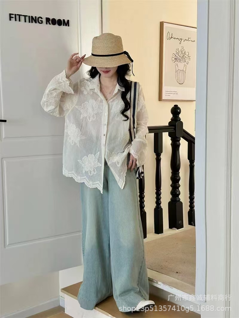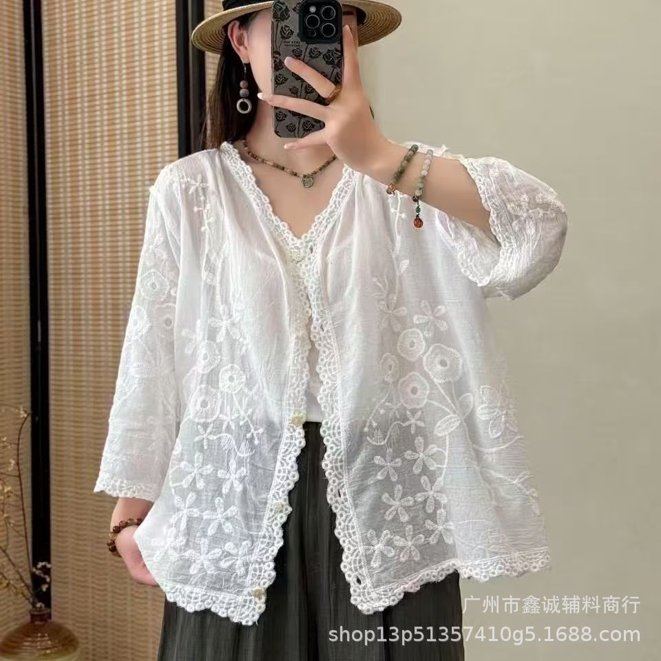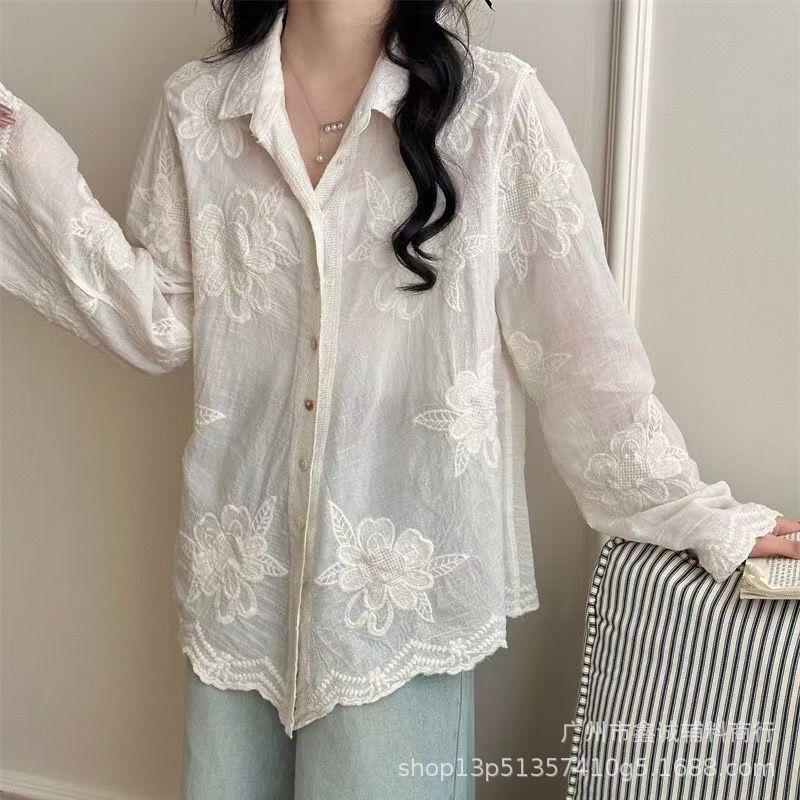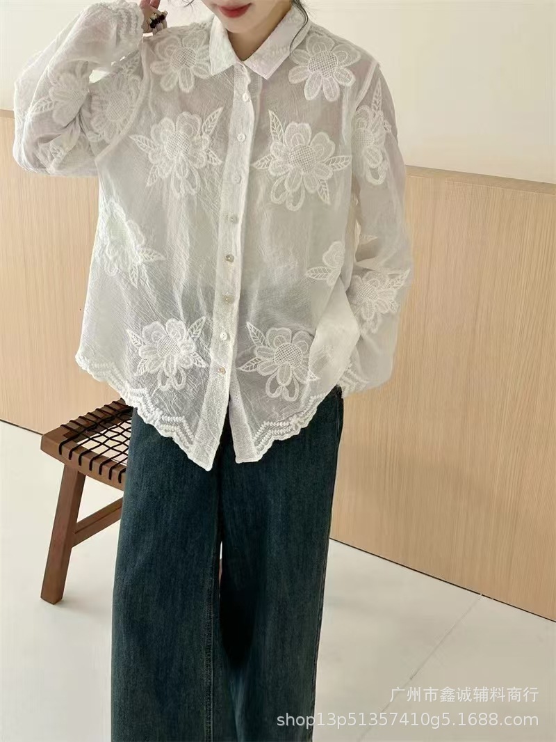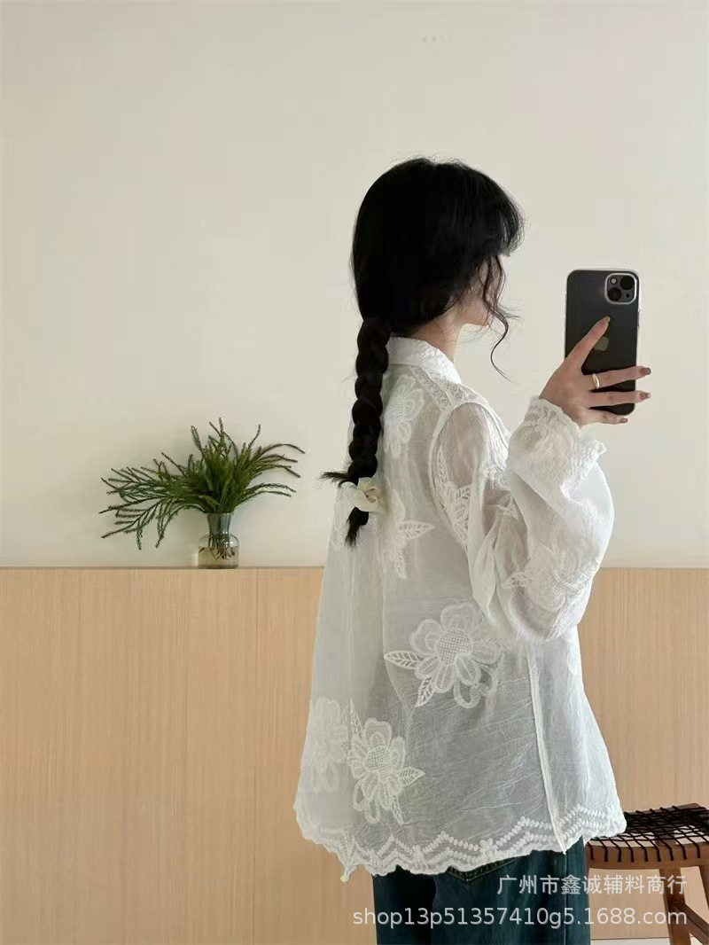 프랑스 로맨틱 셔츠 할로우 레이스 바느질 셔츠 여성용 여름 새 옷깃 탑 자수 셔츠 트렌디스토어 가기