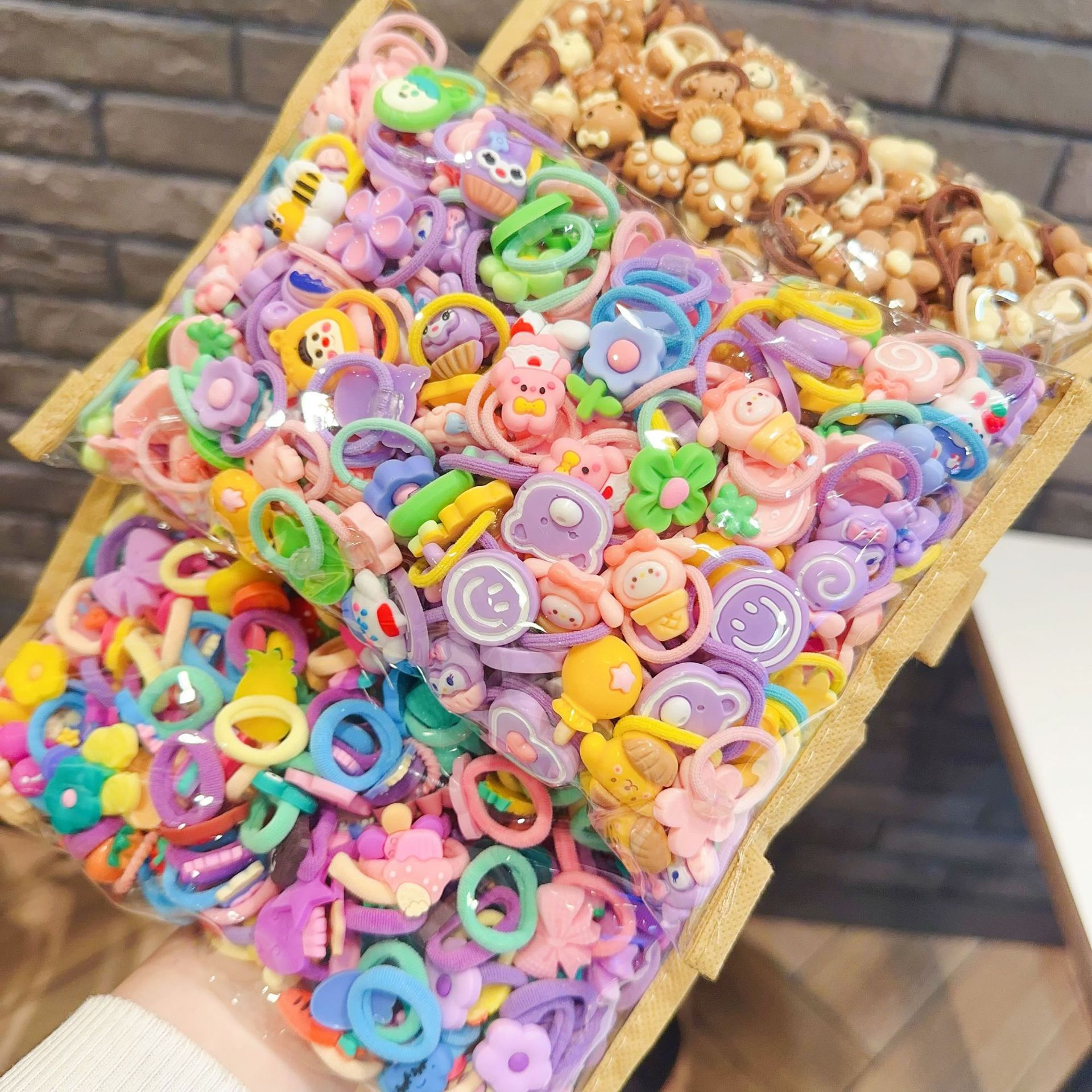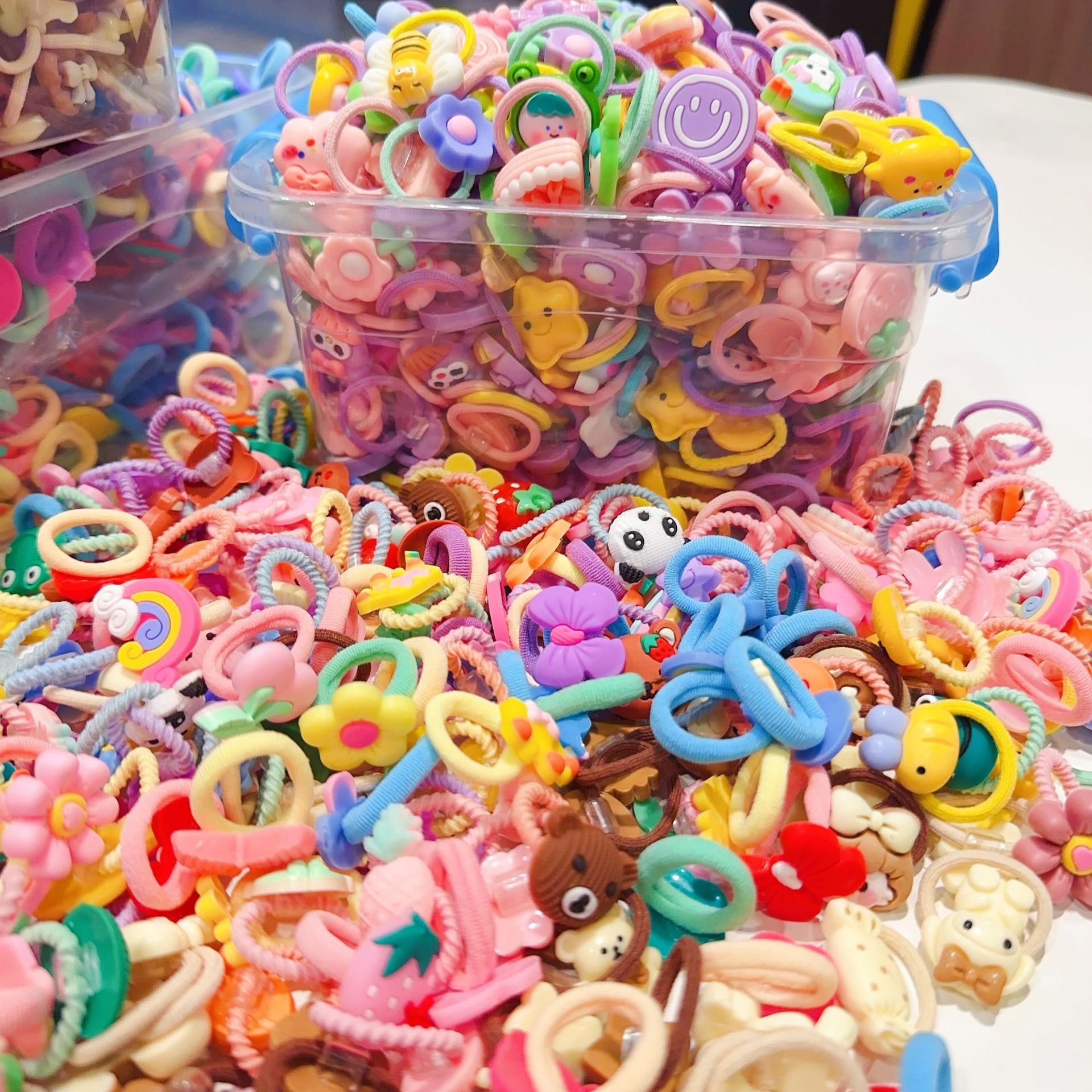 아기 스몰 사이즈 반지 보석 어린이 작은 고무 밴드 높은 탄성 머리 반지 아기 엄지 반지 만화 머리 로프 도매스토어 가기
