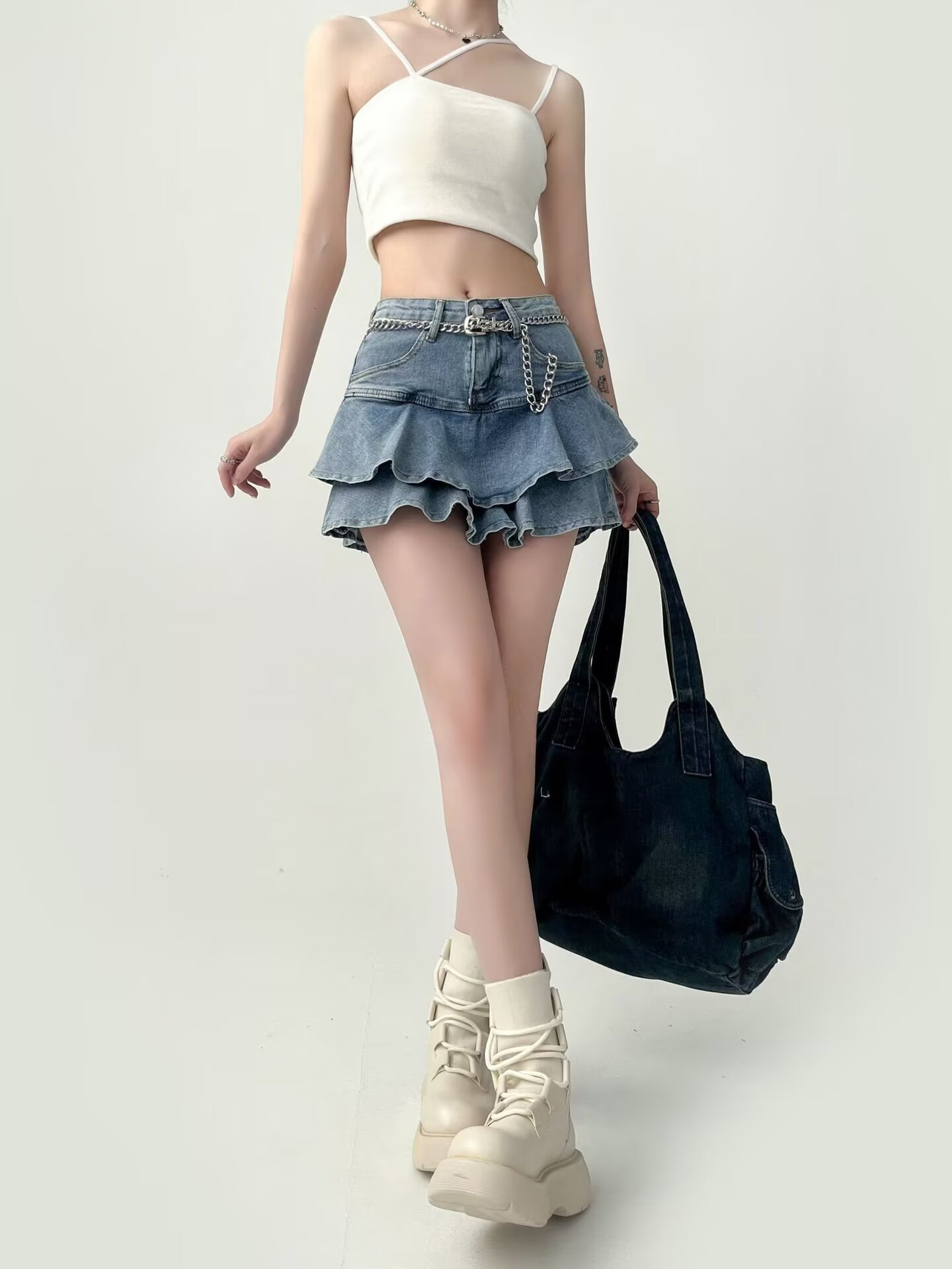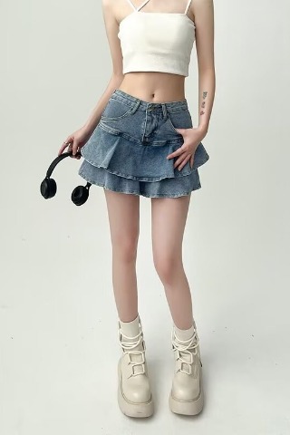 여성용 러플 데님 스커트, 여름 하이웨이스트 케이크 스커트, 슬리밍 힙 커버, A라인, 몸집이 작은 핫걸, 초짧은 피쉬테일 스커트스토어 가기