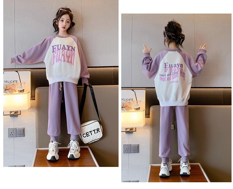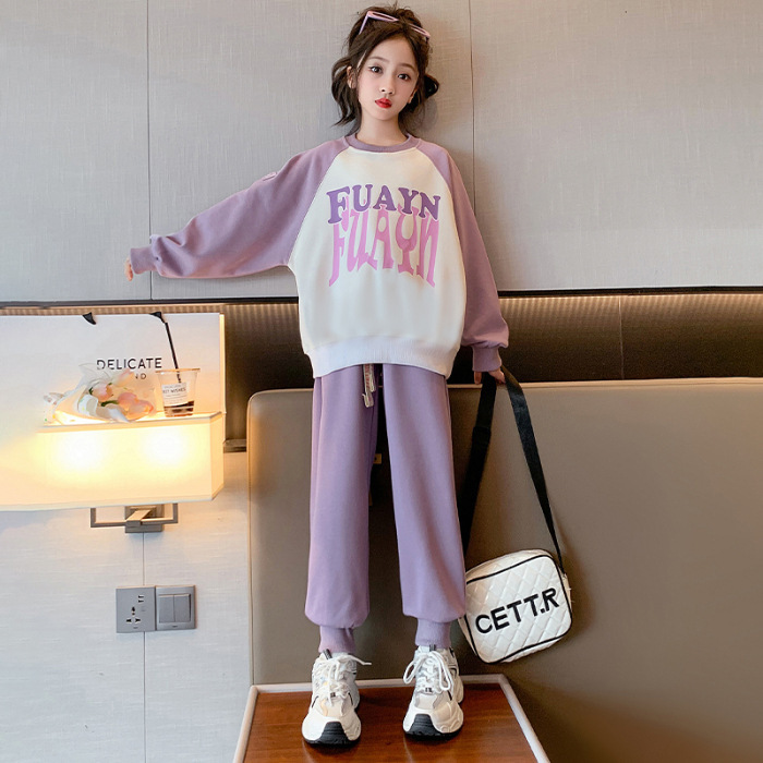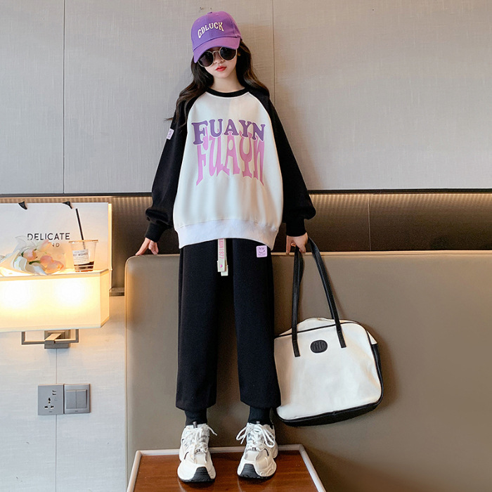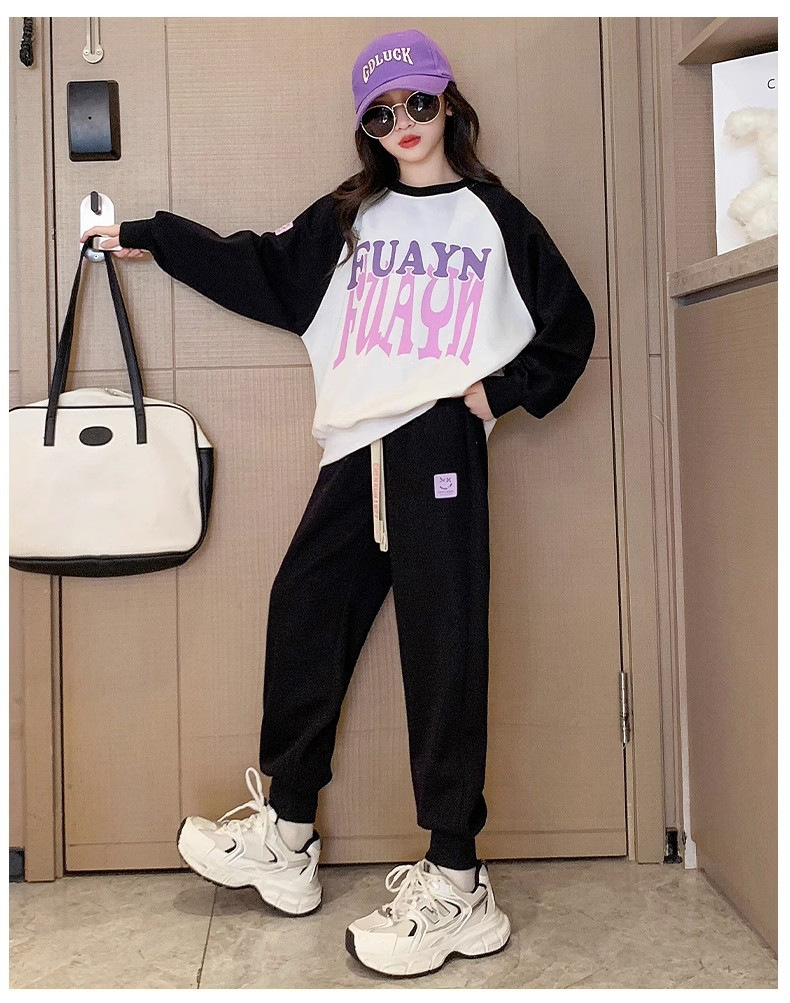 소녀 가을 패션 세트 어린이 무거운 외국 스타일 봄과 가을 2024 새로운 중 큰 어린이 캐주얼 스포츠 가을 착용