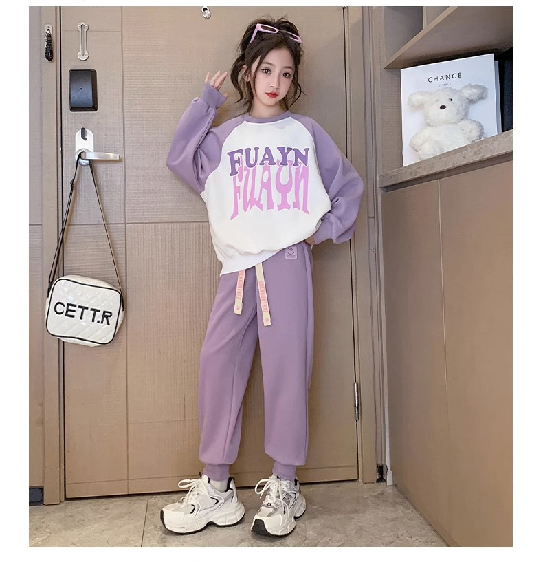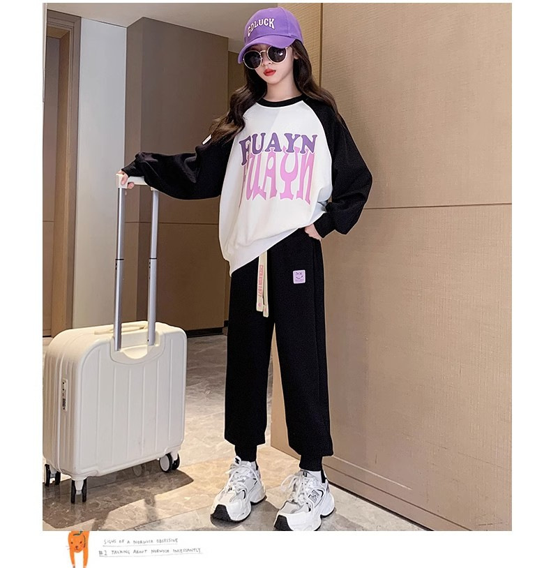 소녀 가을 패션 세트 어린이 무거운 외국 스타일 봄과 가을 2024 새로운 중 큰 어린이 캐주얼 스포츠 가을 착용스토어 가기