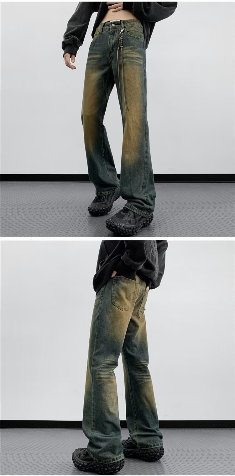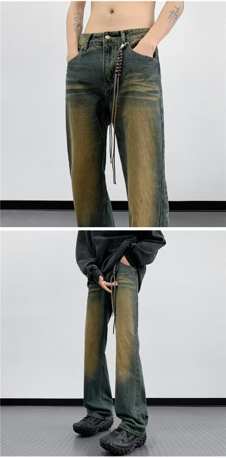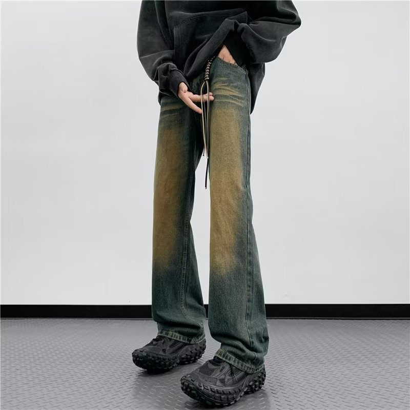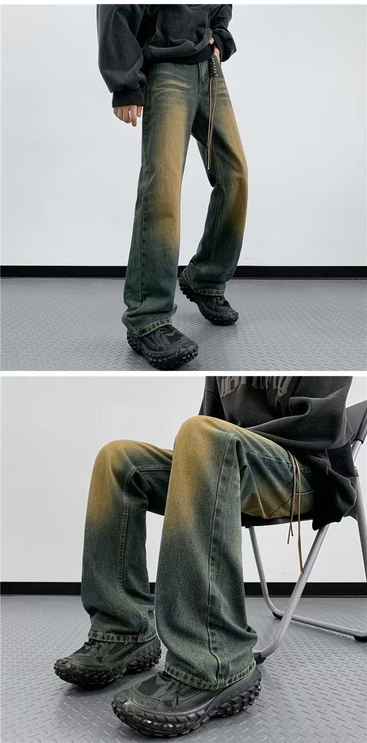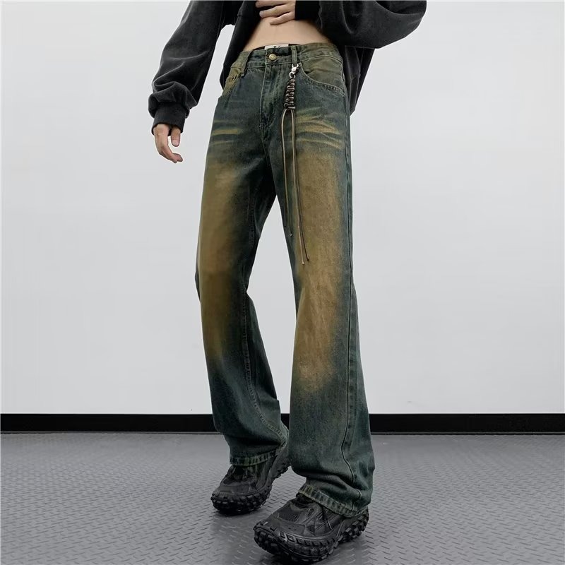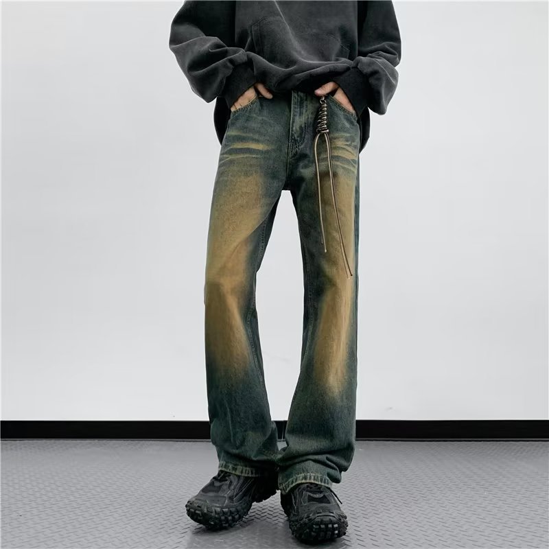 미국 하이 스트리트 청바지 남자의 봄과 가을 새로운 느슨한 스트레이트 바지는 오래된 빈티지 레트로 팬츠를 씻었습니다.