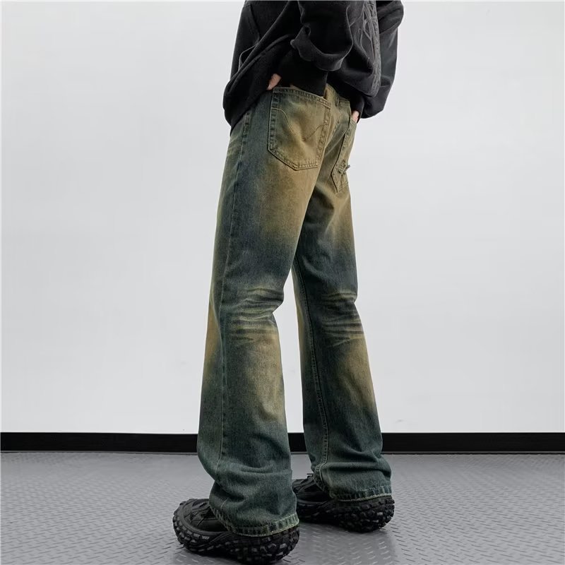 미국 하이 스트리트 청바지 남자의 봄과 가을 새로운 느슨한 스트레이트 바지는 오래된 빈티지 레트로 팬츠를 씻었습니다.스토어 가기