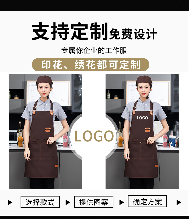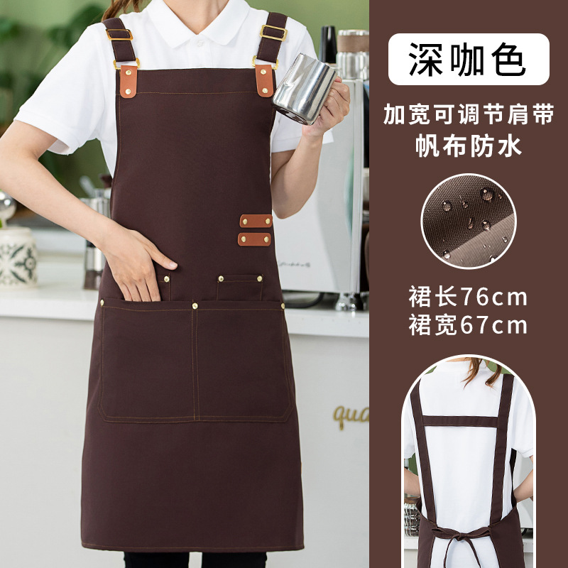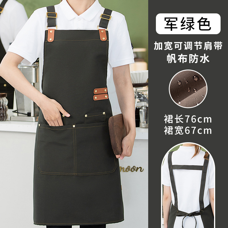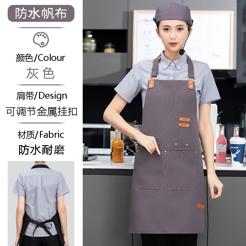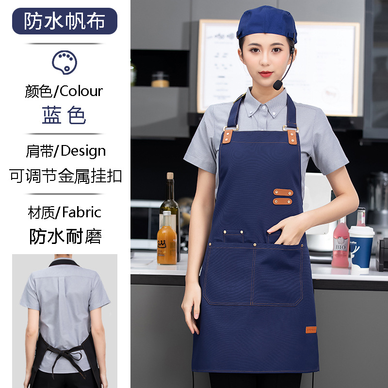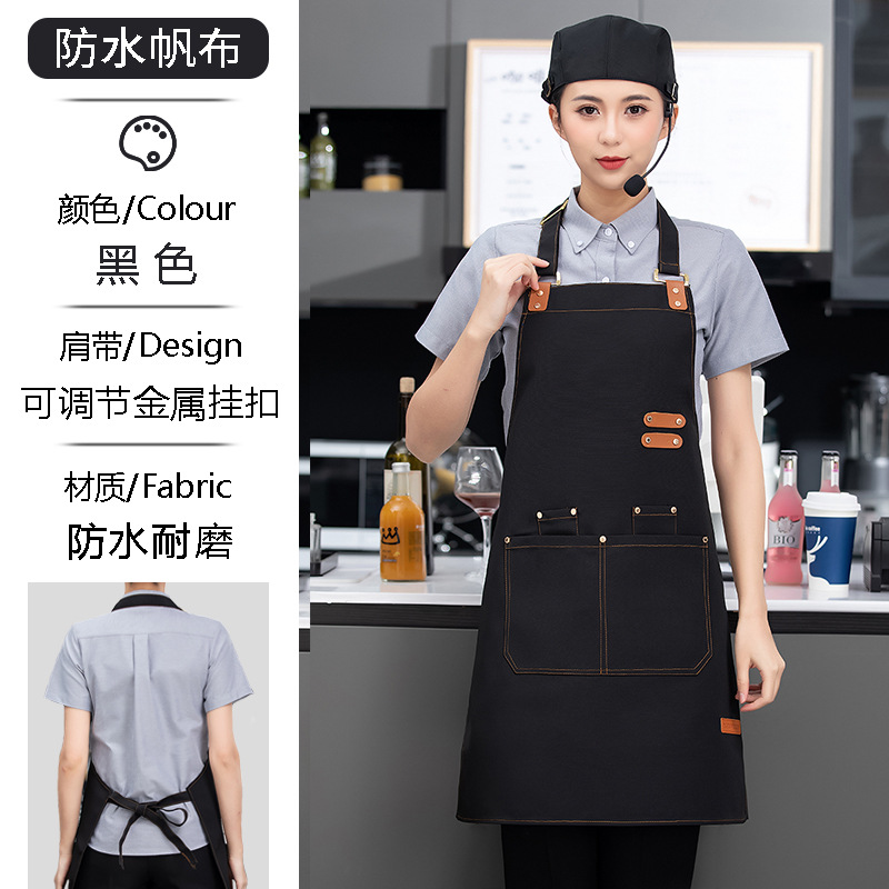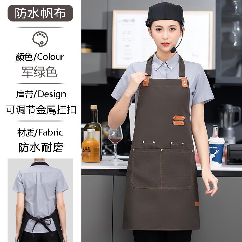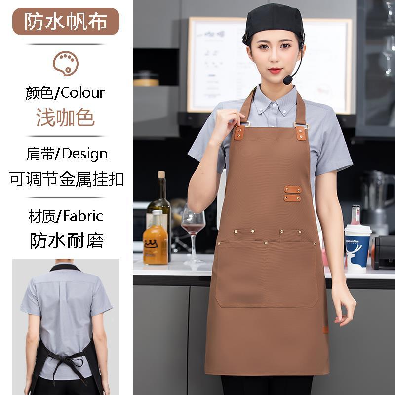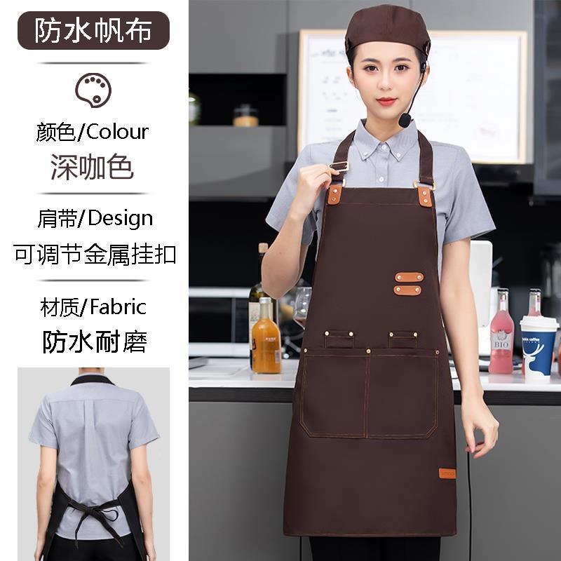 로고가 인쇄된 케이터링 및 작업용 인터넷 연예인 캔버스 앞치마, 여성용 네일 아티스트 커피숍 방수 작업복스토어 가기