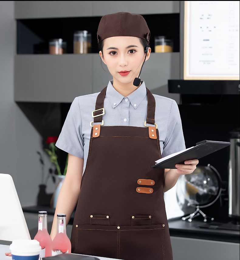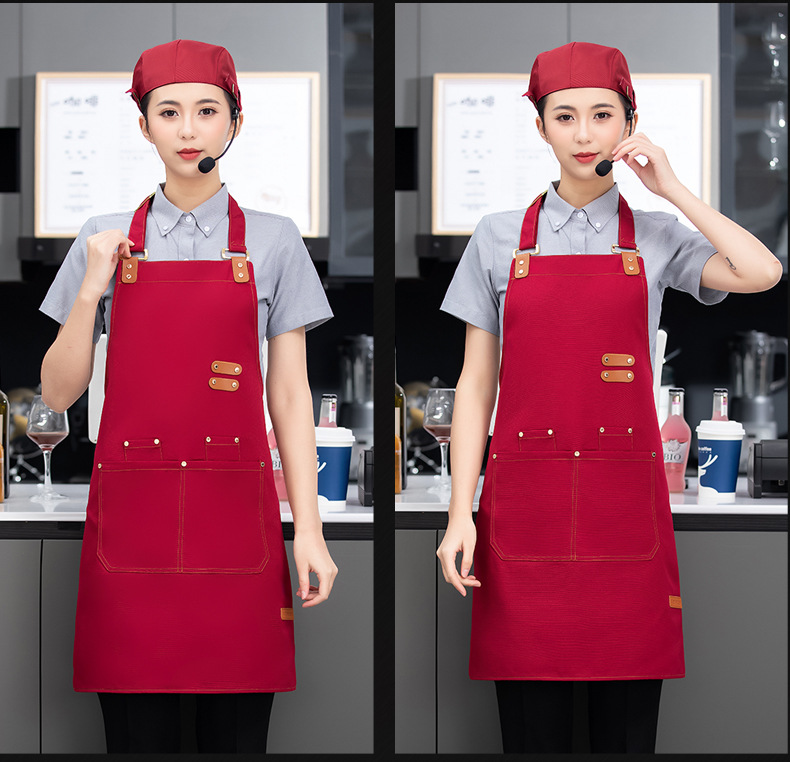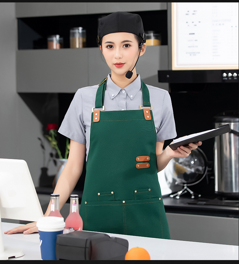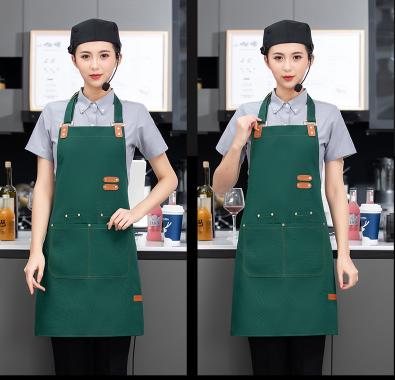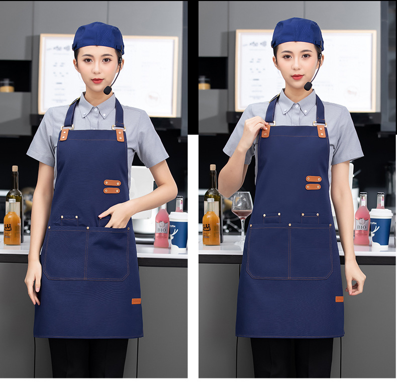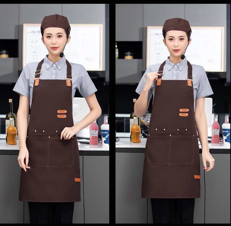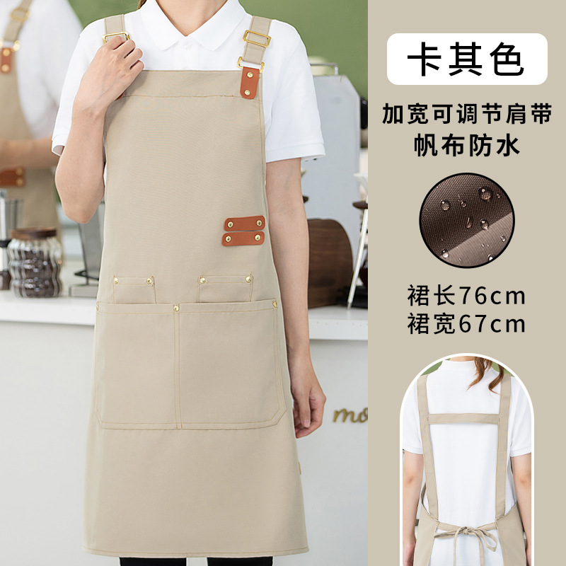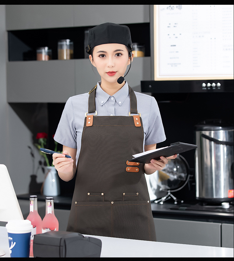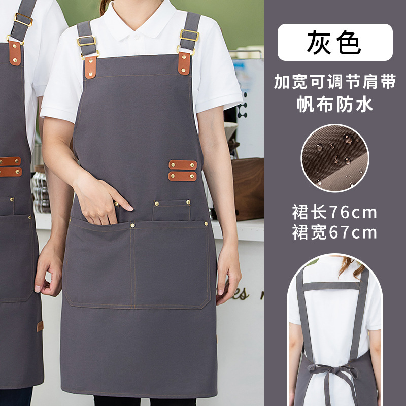 로고가 인쇄된 케이터링 및 작업용 인터넷 연예인 캔버스 앞치마, 여성용 네일 아티스트 커피숍 방수 작업복스토어 가기
