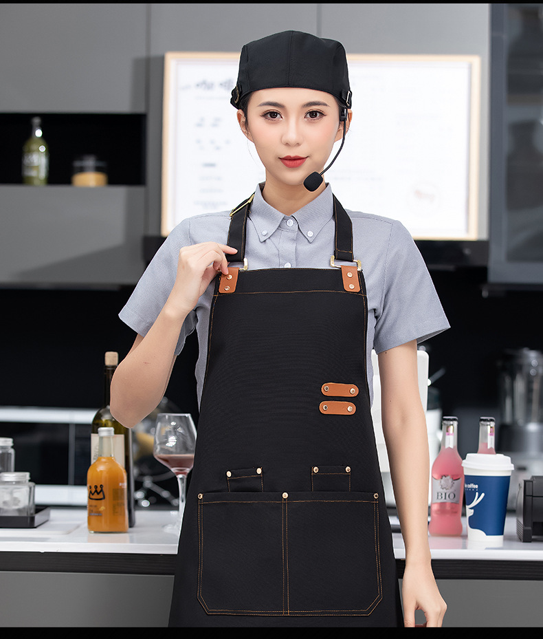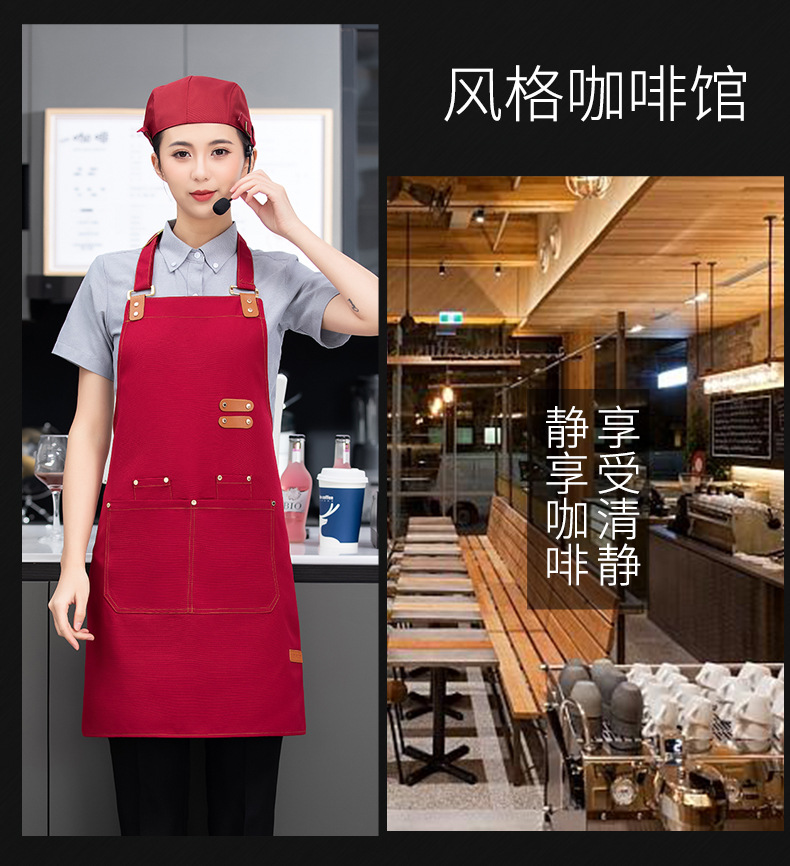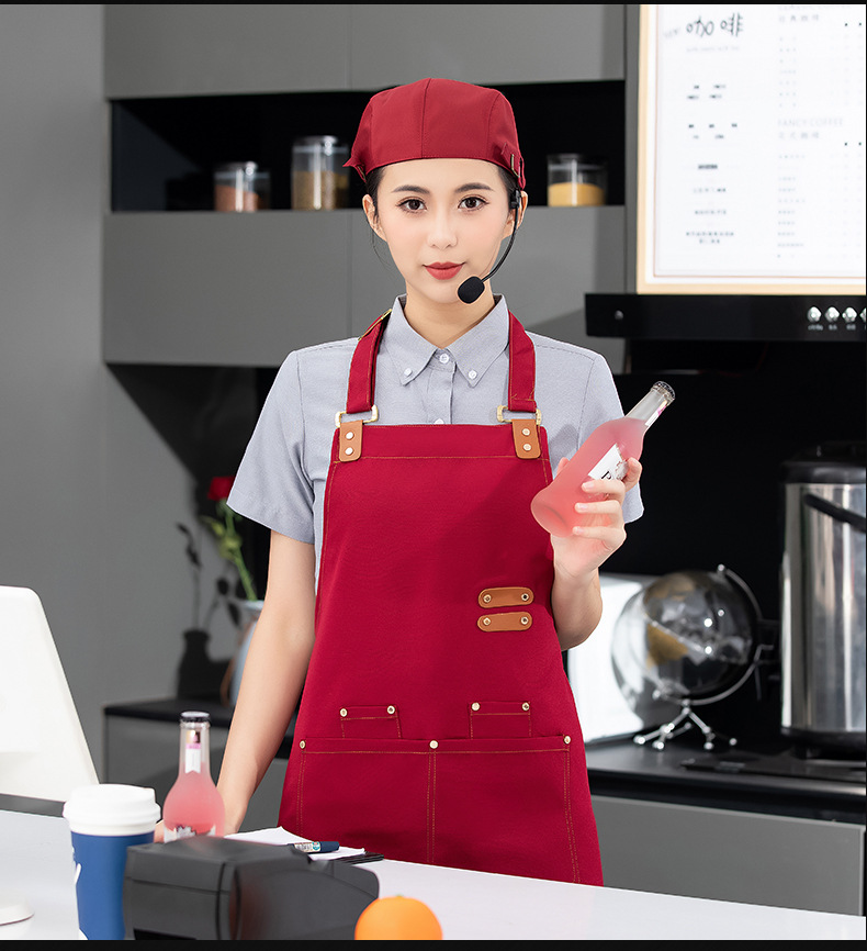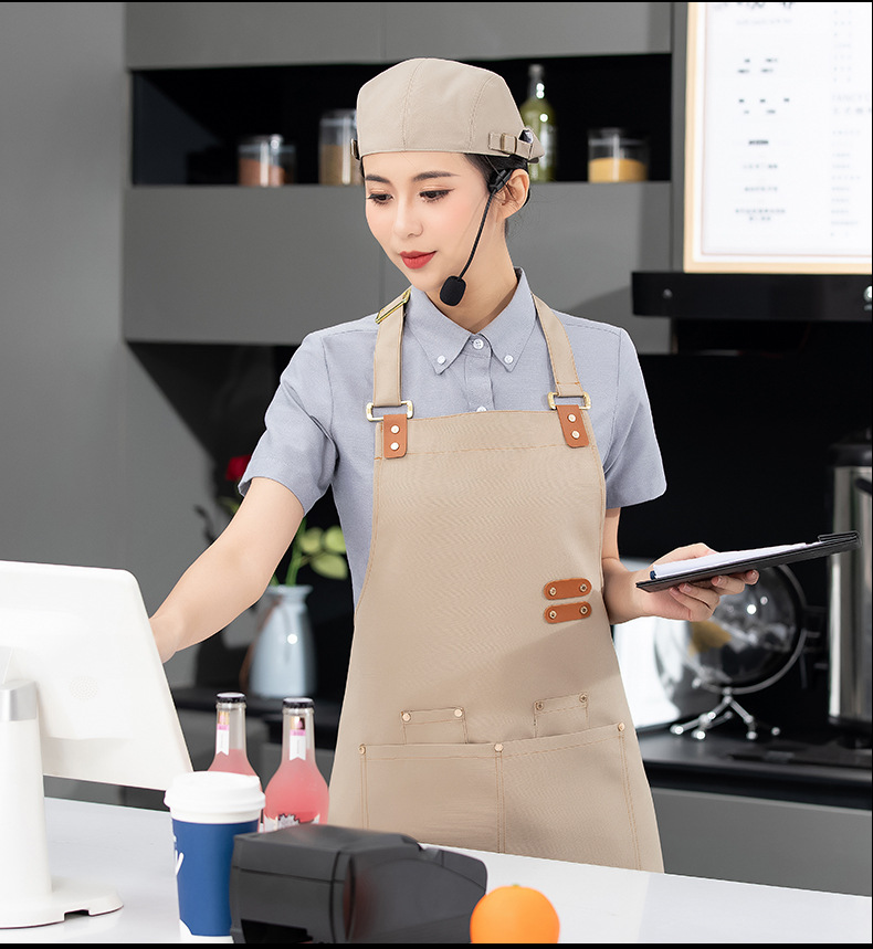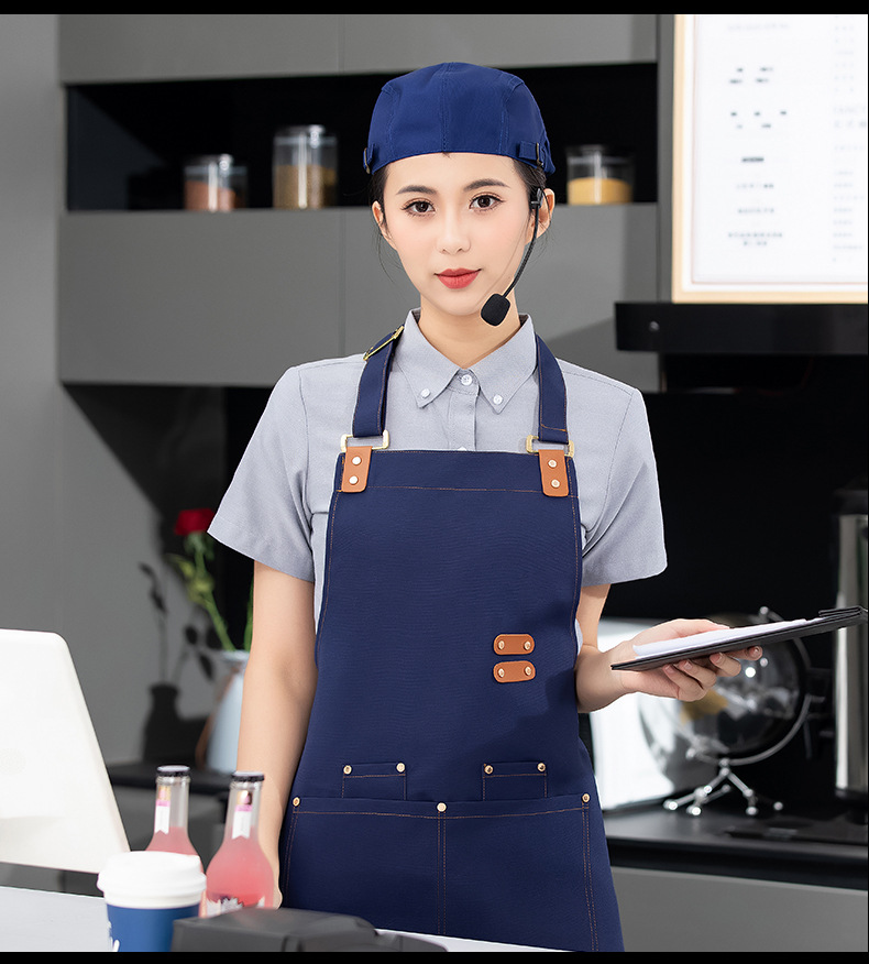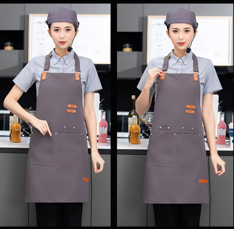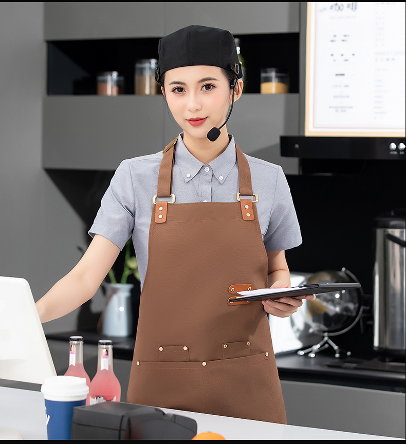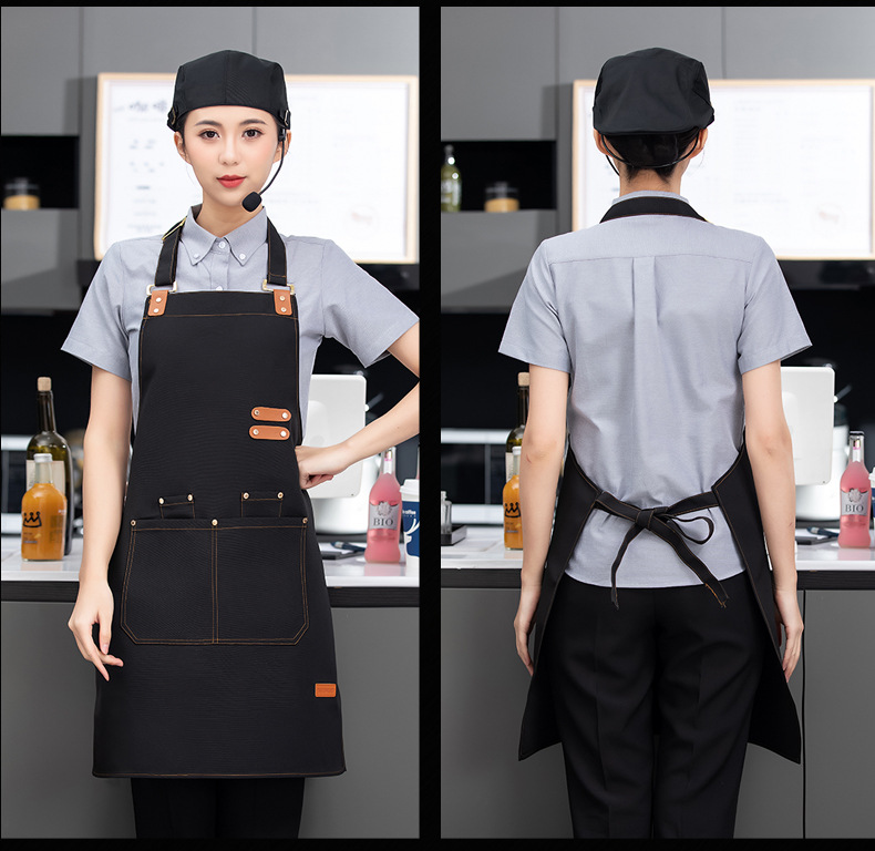 로고가 인쇄된 케이터링 및 작업용 인터넷 연예인 캔버스 앞치마, 여성용 네일 아티스트 커피숍 방수 작업복스토어 가기