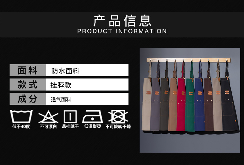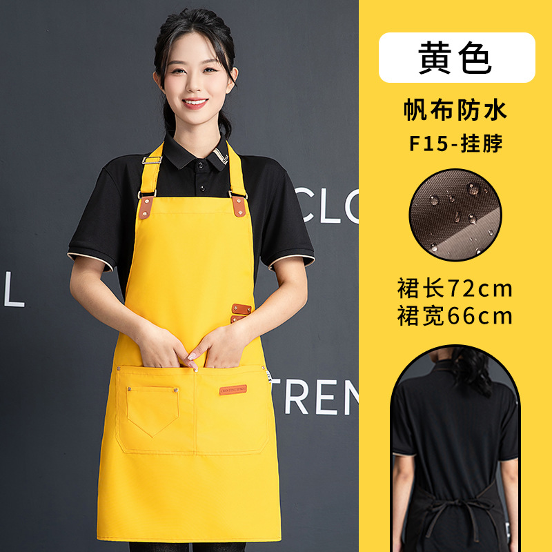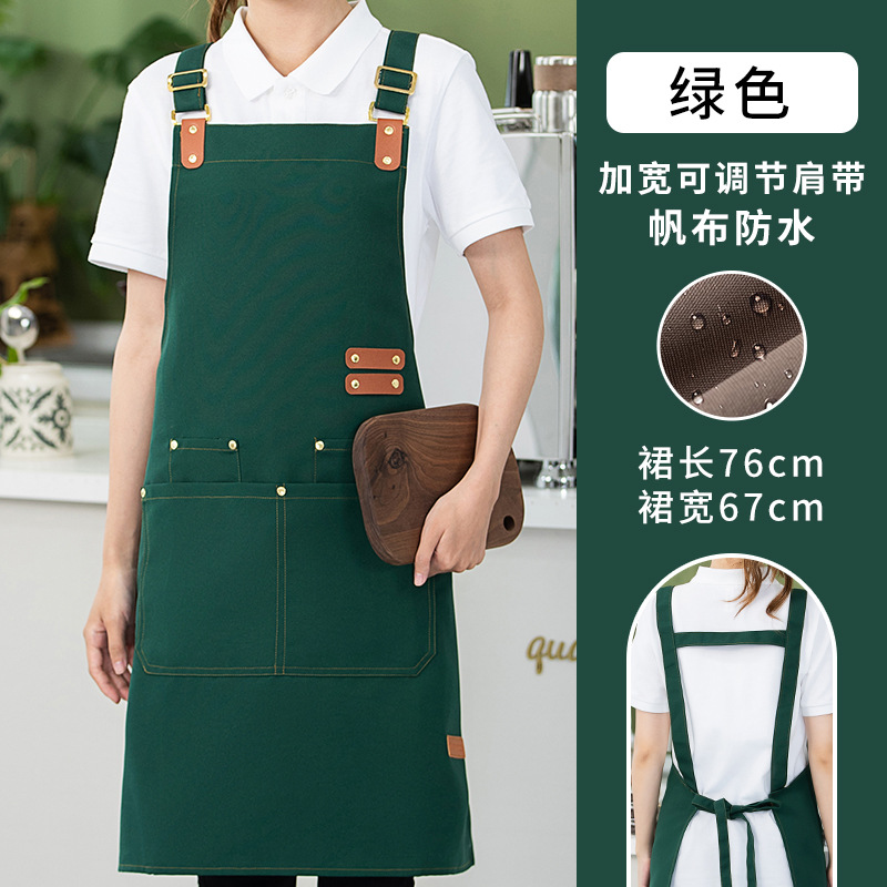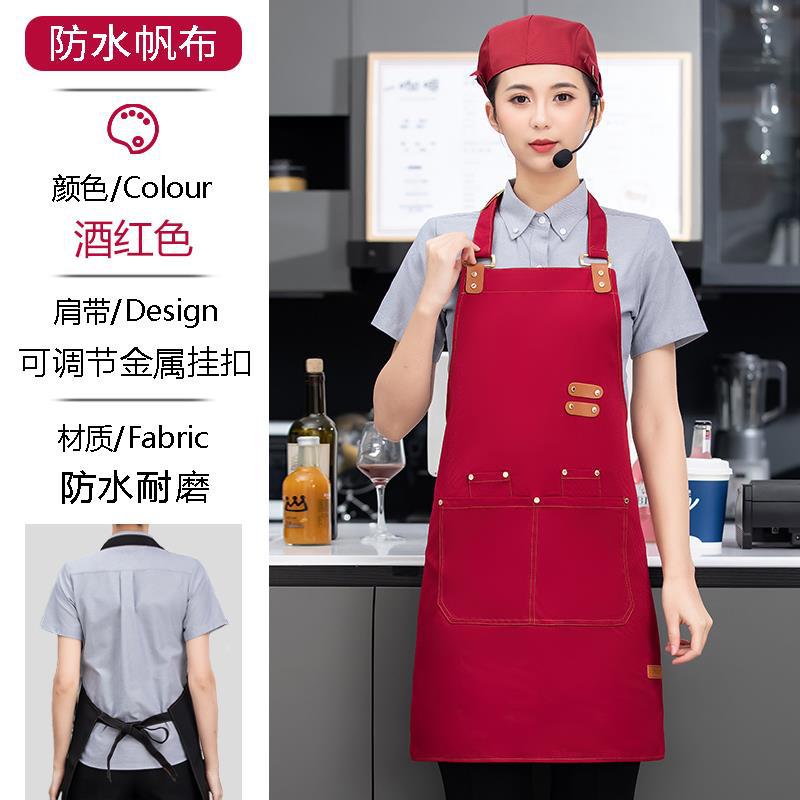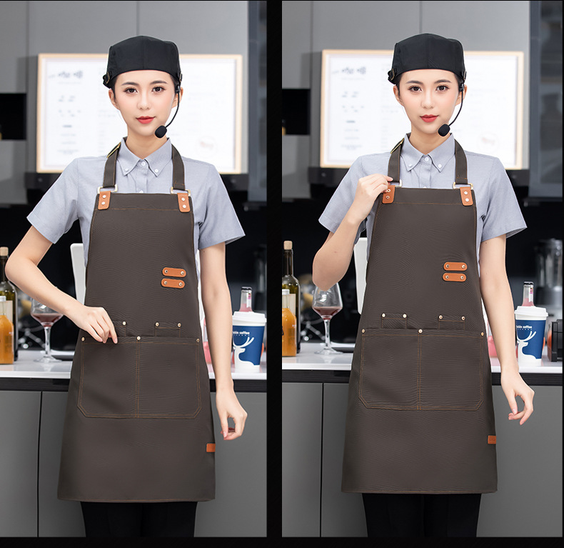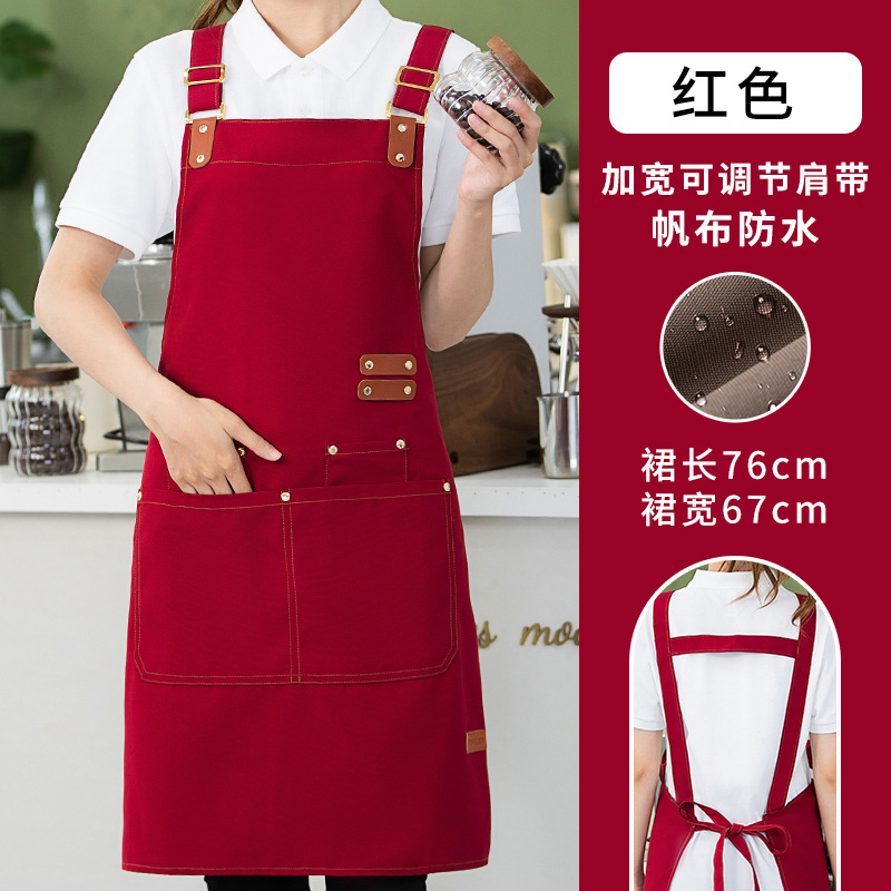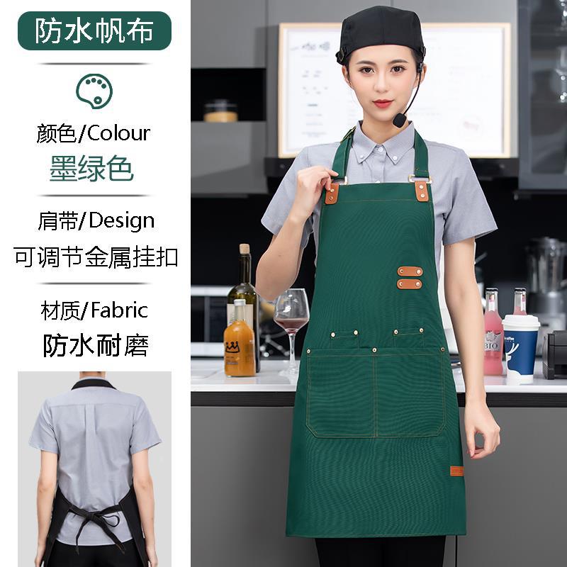 로고가 인쇄된 케이터링 및 작업용 인터넷 연예인 캔버스 앞치마, 여성용 네일 아티스트 커피숍 방수 작업복