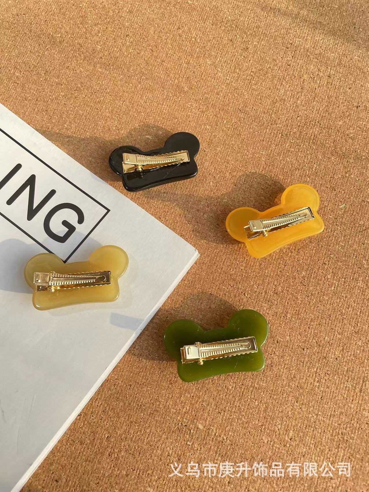 골드 라벨 아세테이트 곰 머리핀 사이드 클립 사이드 인터넷 연예인 기질 귀여운 앞머리 클립 이마 머리핀 여성용 머리 장식