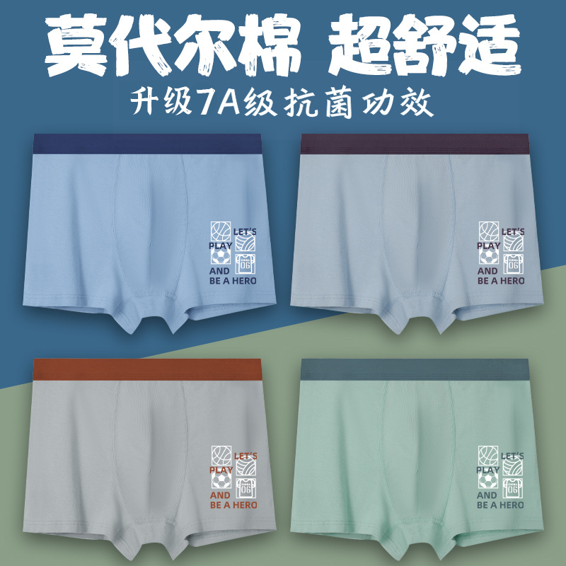 발달기 소년을 위한 청소년 속옷 4팩, 가을, 겨울, 여름 중학생 소년 반바지